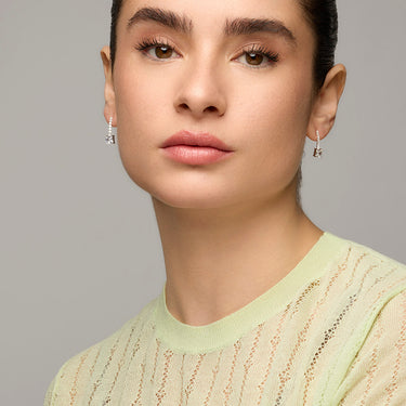 Boucles d'oreilles Leinor avec zircon brillant finition argent. Essential incarne la simplicité raffinée, des pièces intemporelles aux lignes douces et à l'éclat supplémentaire des zircons. Bijoux basiques sans prétention parfaits pour un usage quotidien, mais qui peuvent aussi convenir pour des occasions spéciales.