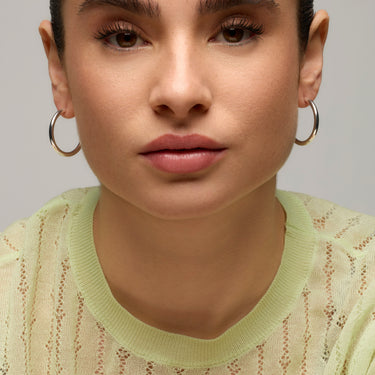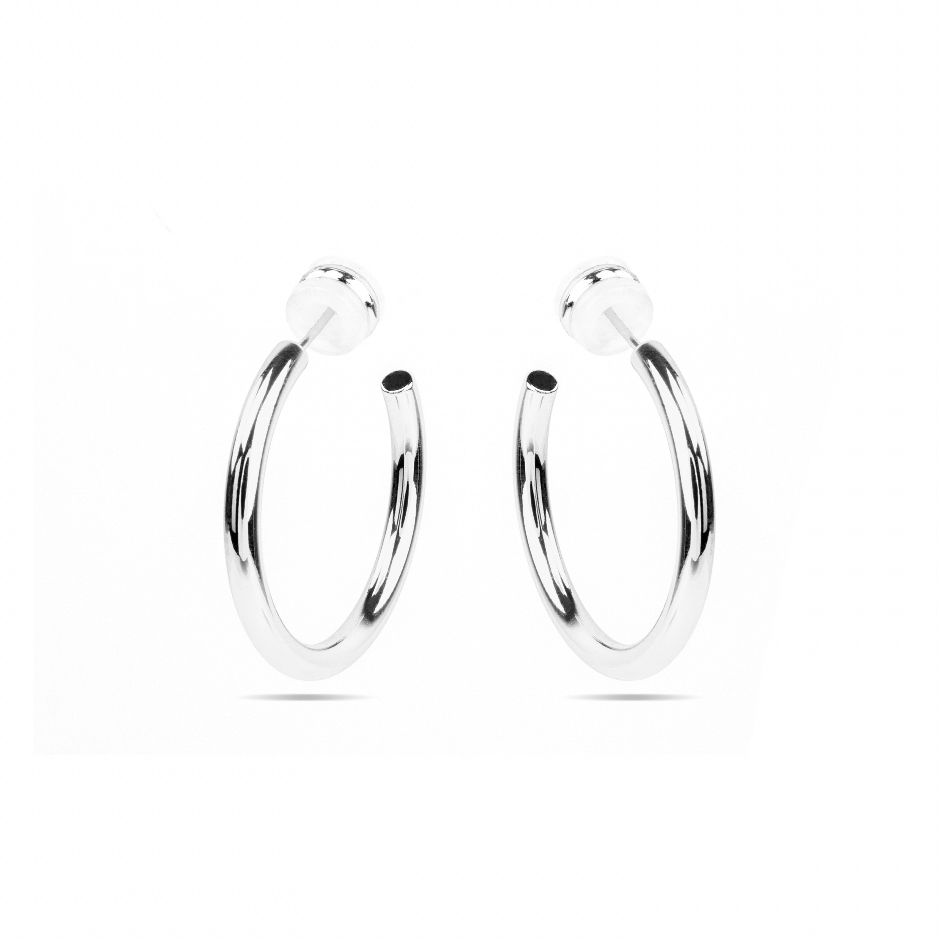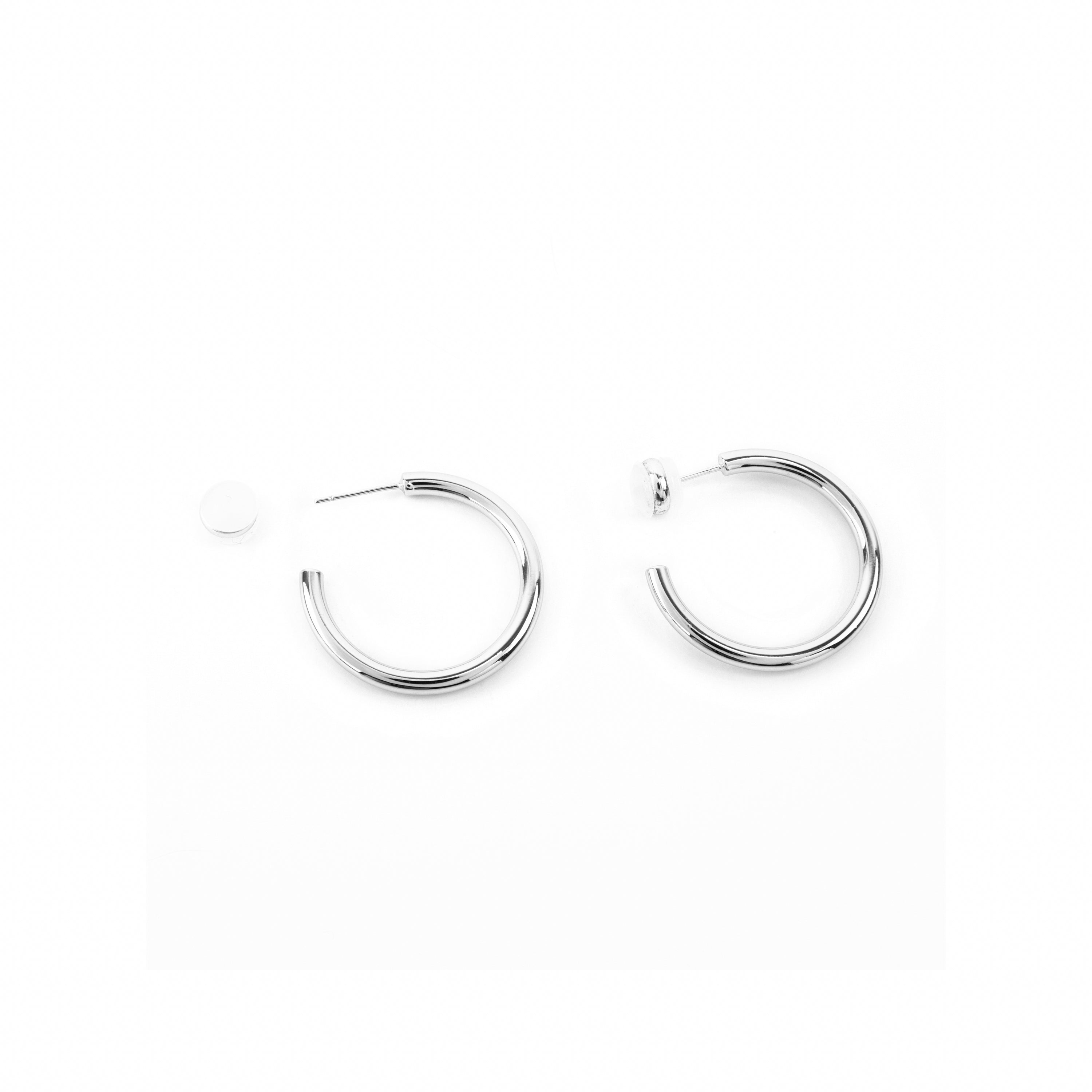 Boucles d'oreilles Hudak finition argent. Essential incarne la simplicité raffinée, des pièces intemporelles aux lignes douces et à l'éclat supplémentaire des zircones. Bijoux basiques sans prétention parfaits pour un usage quotidien, mais qui peuvent aussi convenir pour des occasions spéciales.