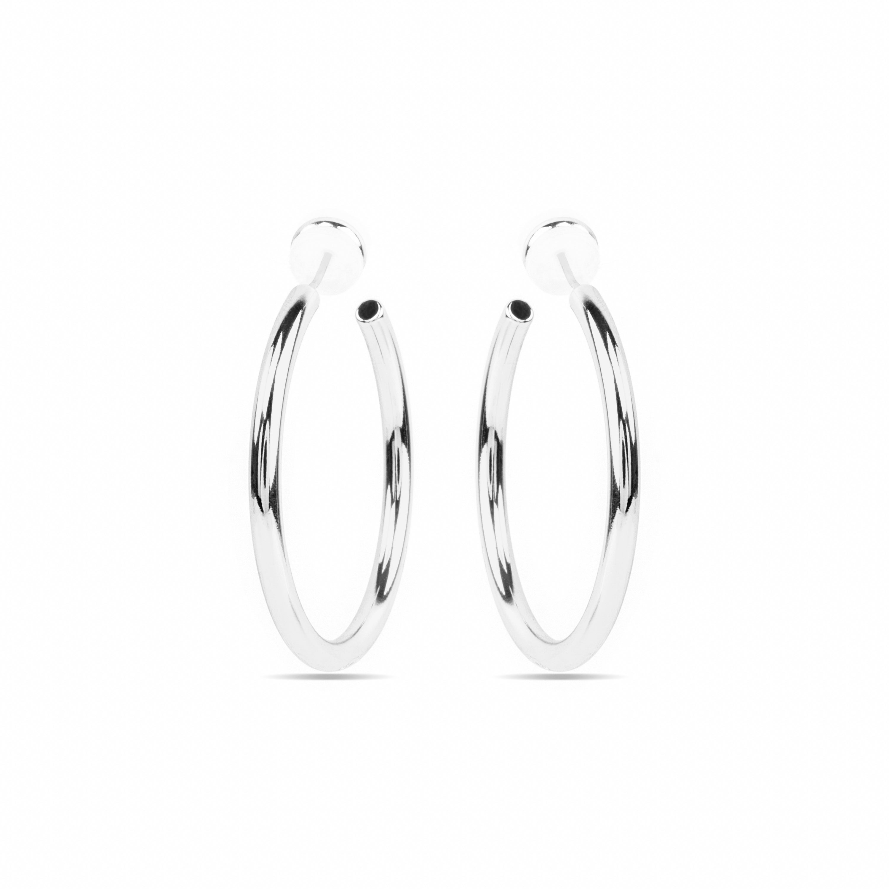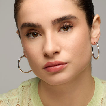 Boucles d'oreilles Polur finition argent. Essential incarne la simplicité raffinée, des pièces intemporelles aux lignes douces et à l'éclat supplémentaire des zircones. Bijoux basiques sans prétention parfaits pour un usage quotidien, mais qui peuvent aussi convenir pour des occasions spéciales.