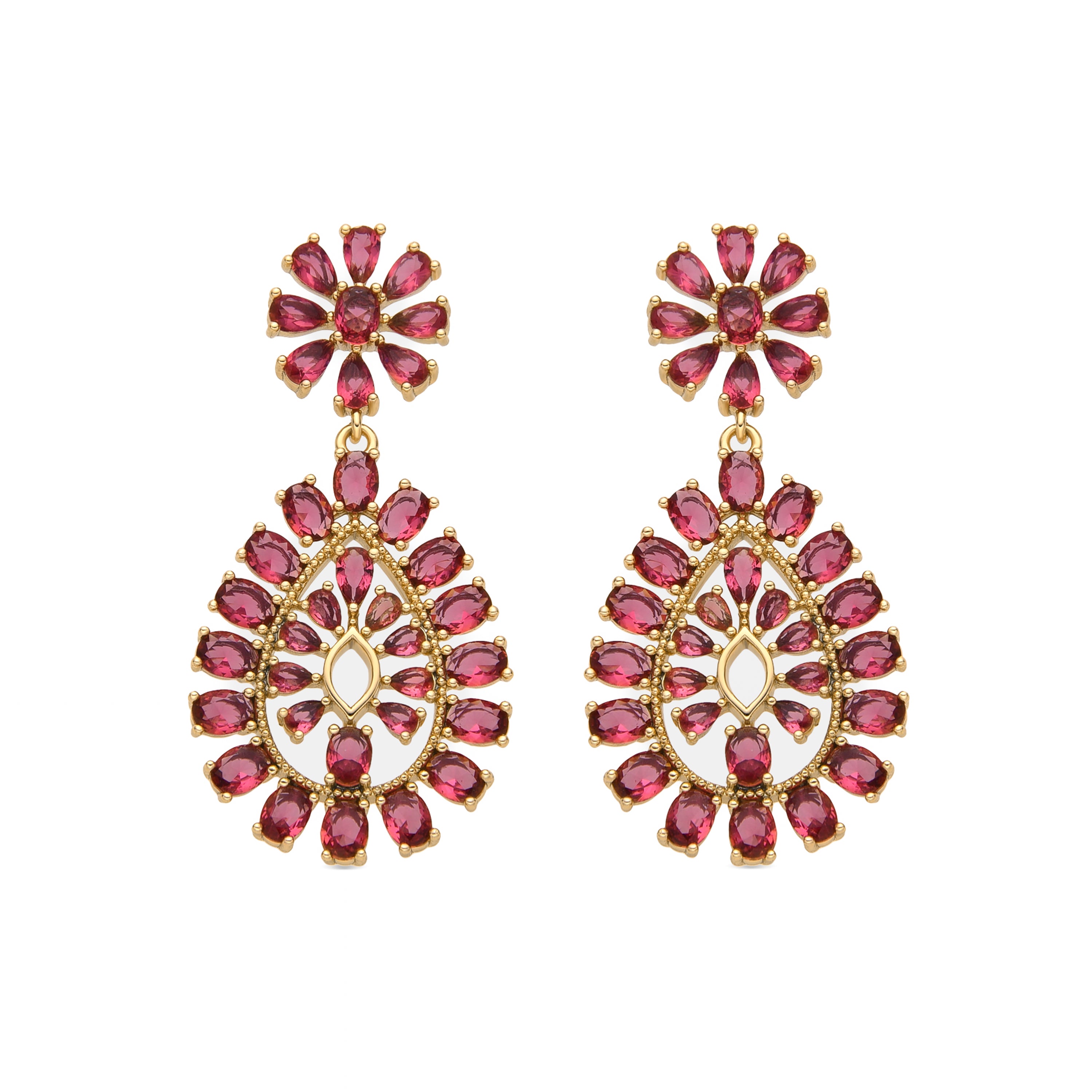 Boucles d'oreilles Sharam avec Zircone Rubis finition or 18k. Afrique devient la ligne parfaite pour les femmes avec personnalité, qui n'ont pas peur de prendre des risques et de porter des pièces avec un caractère propre.