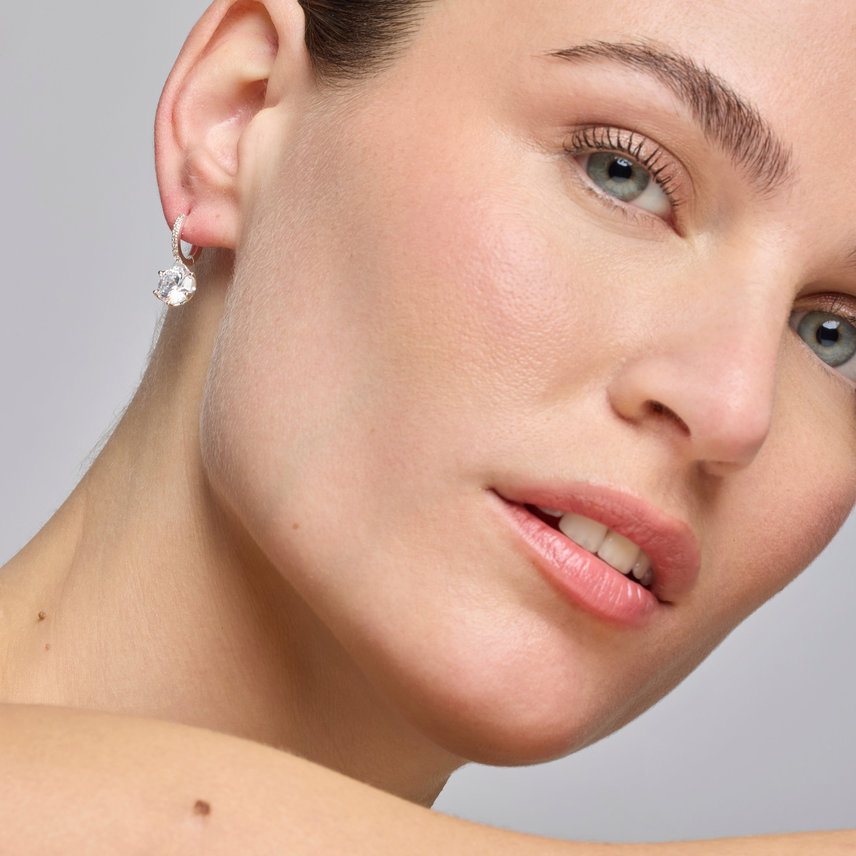 Boucles d'oreilles Musban avec zircon brillant finition argent. Essential incarne la simplicité raffinée, des pièces intemporelles aux lignes douces et à l'éclat supplémentaire des zircons. Bijoux basiques sans prétention parfaits pour un usage quotidien, mais qui peuvent aussi convenir pour des occasions spéciales.
