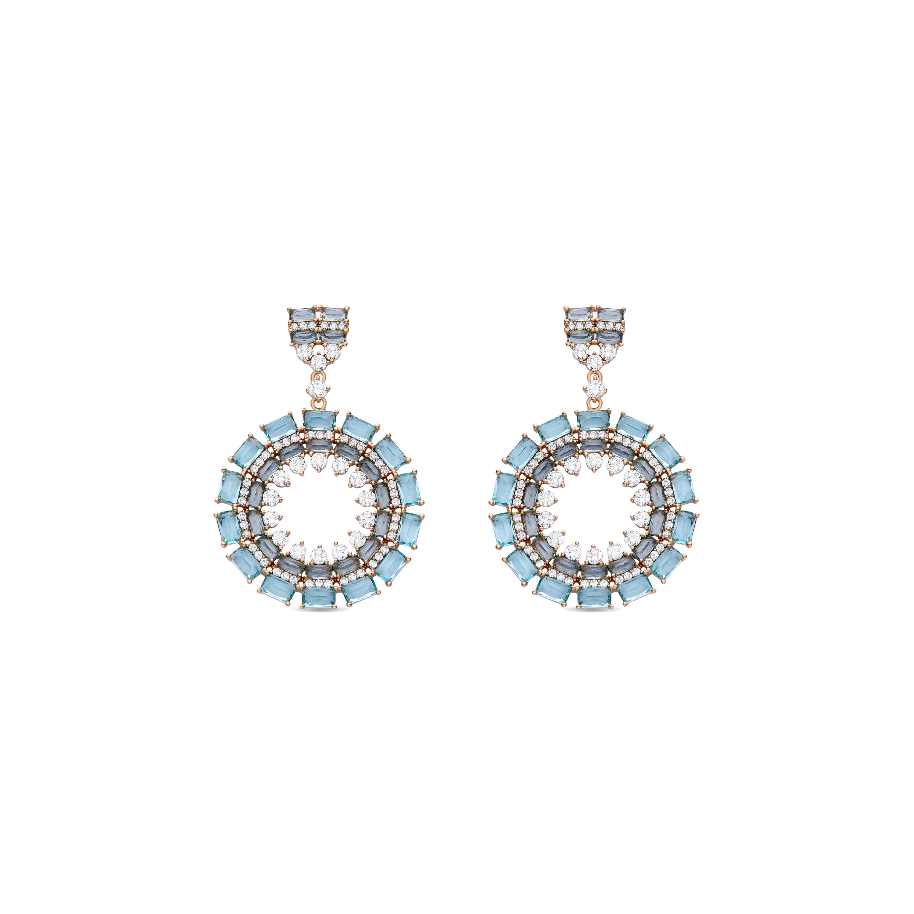Boucles d'oreilles Rax en cristal bleu finition or jaune 18K. Afrique devient la ligne parfaite pour les femmes avec de la personnalité, qui n'ont pas peur de prendre des risques et de porter des pièces avec un caractère propre.