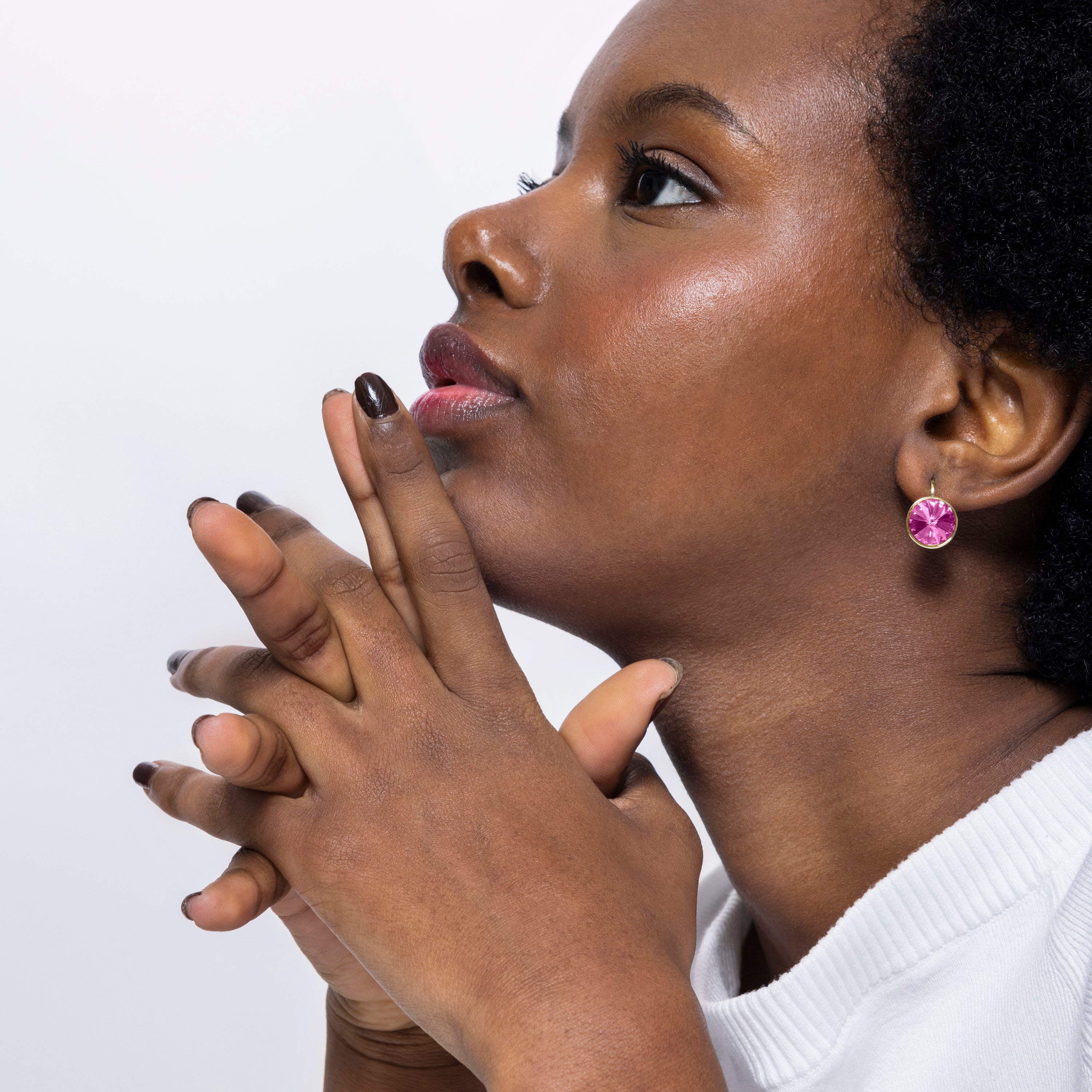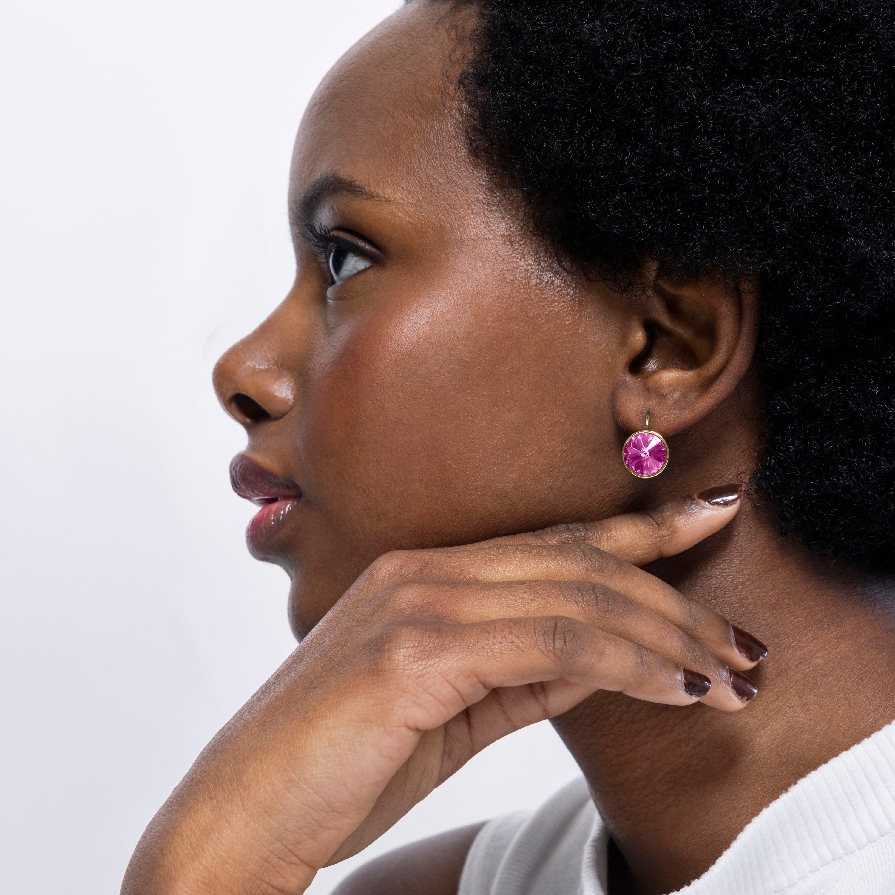 Boucles d'oreilles Rusira en cristal rose avec finition en or jaune 18 carats.