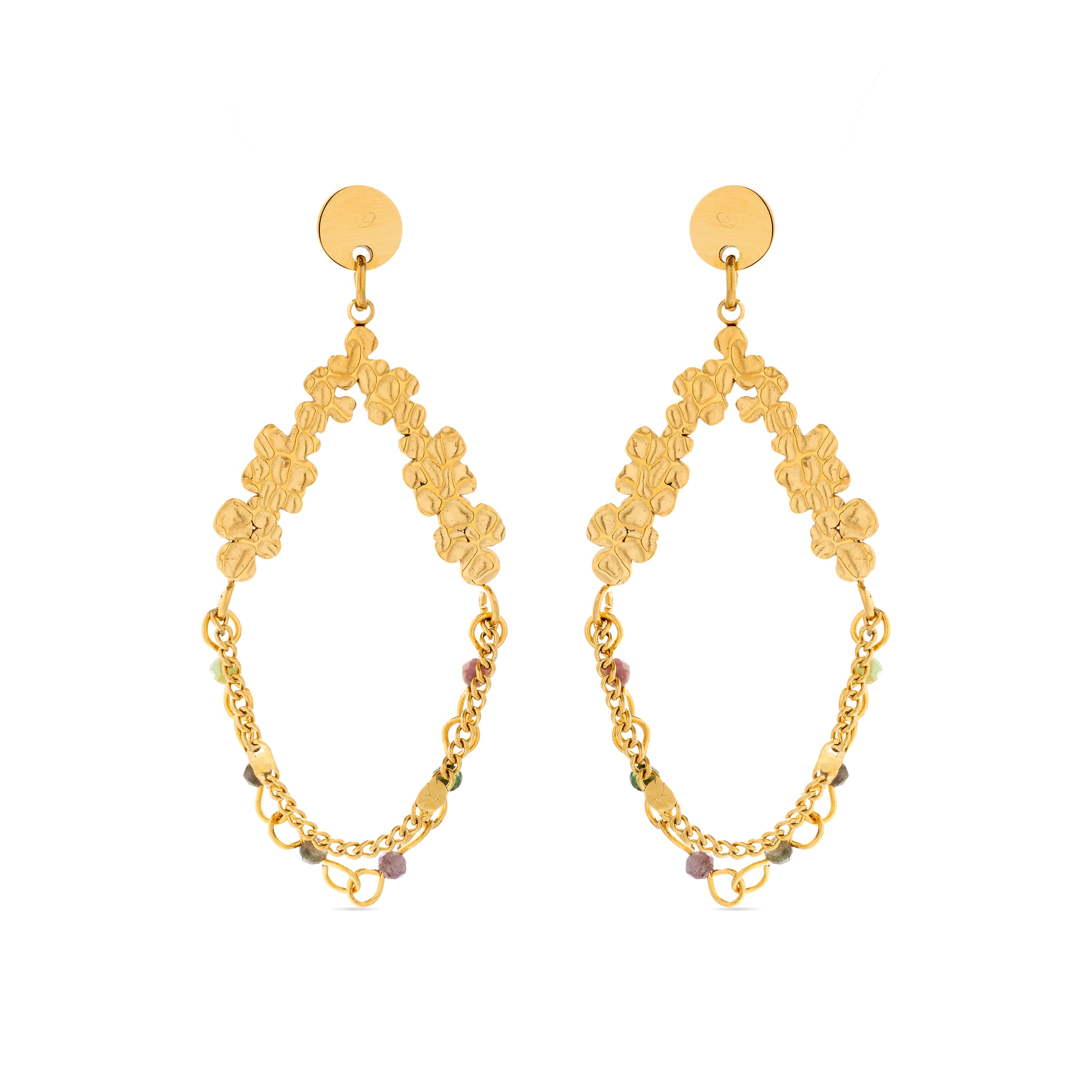 Boucles d'oreilles en acier Ukdra finies en or jaune 18 carats. Le style Boho est une esthétique d'esprit libre qui mélange différentes cultures et expressions artistiques dans un style éclectique mettant l'accent sur les éléments organiques et la nature.