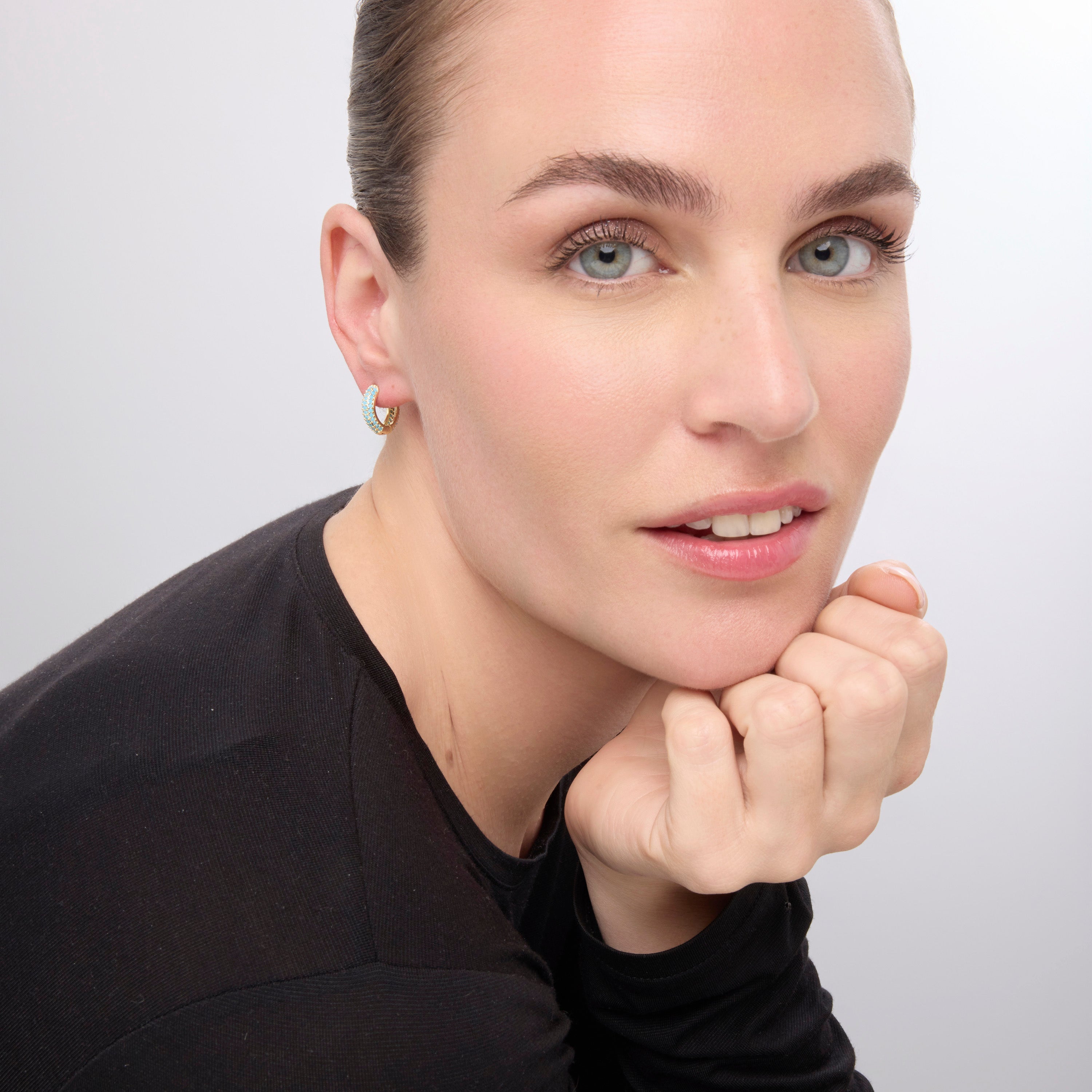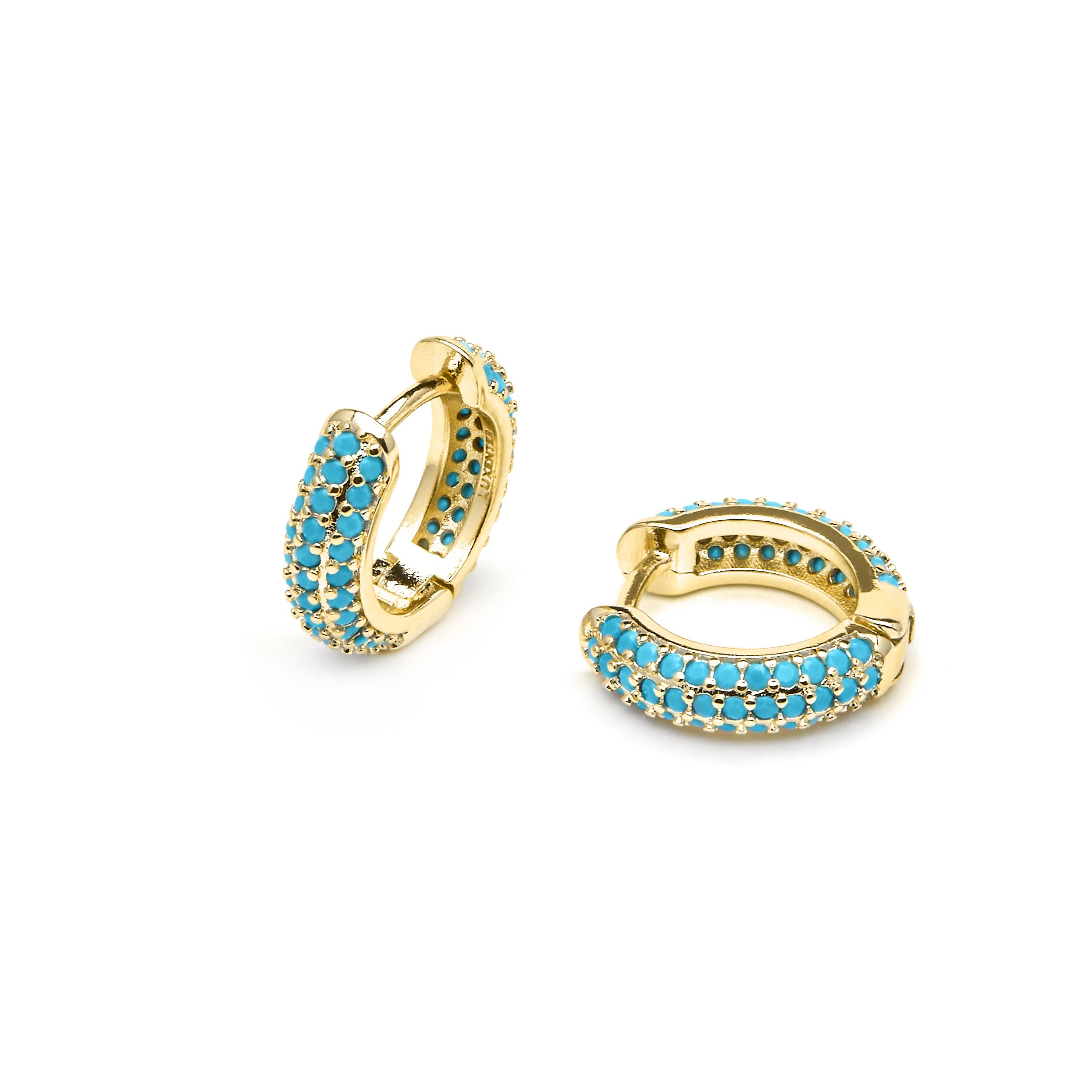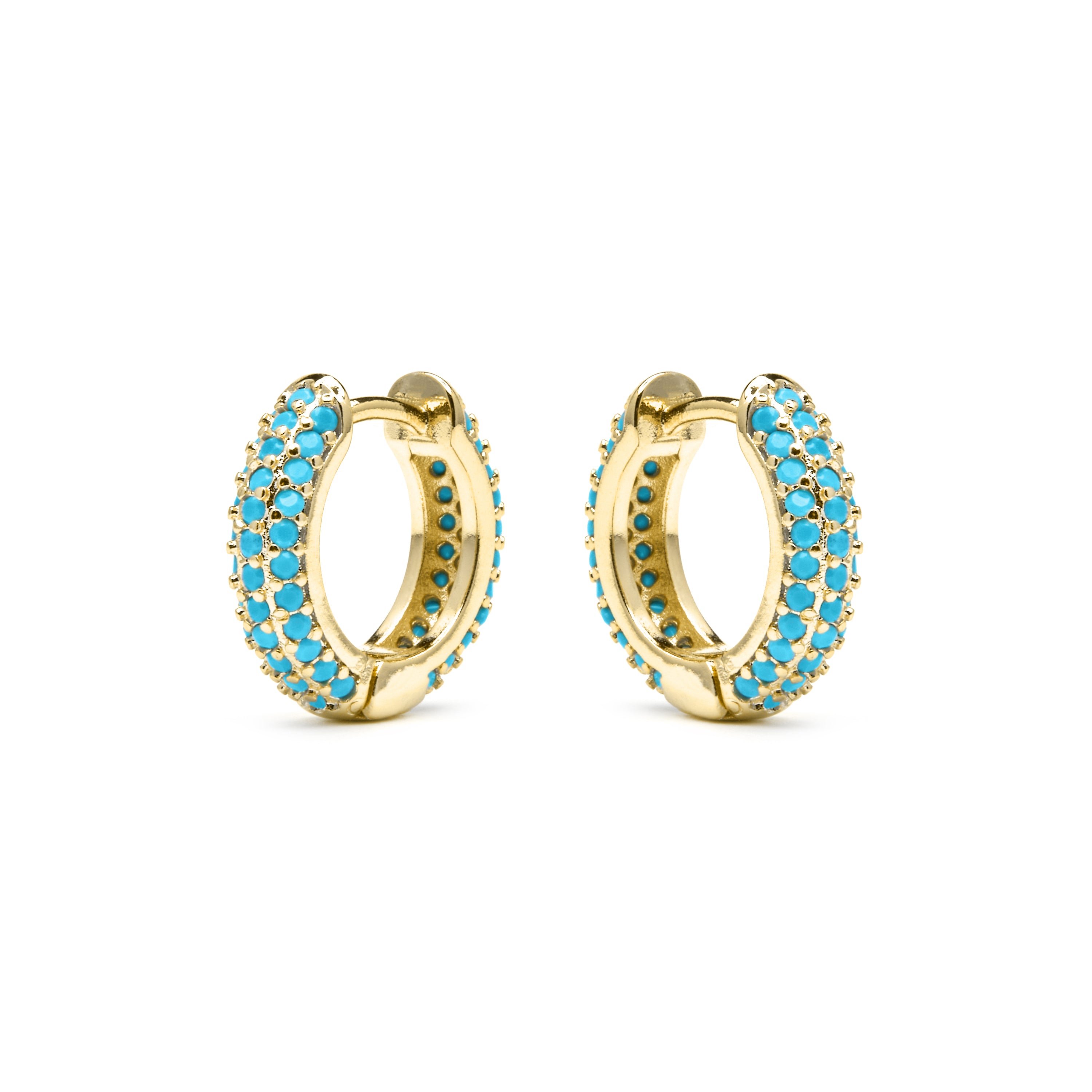Boucles d'oreilles de 9mm de diamètre finition Or Jaune 18k avec zircon Turquoise - Lesrat