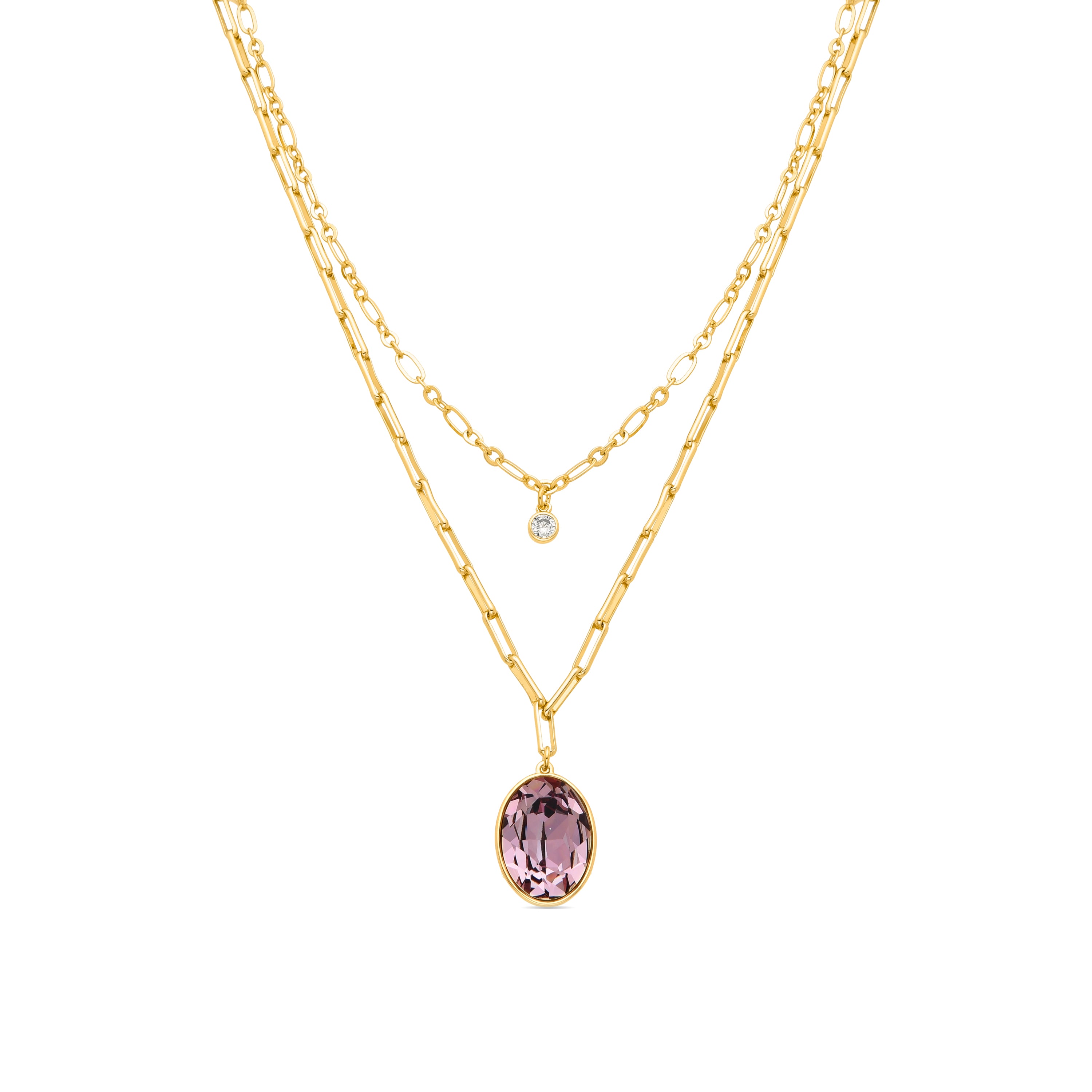 Collier Okhel en cristal violet avec finition en or jaune 18 carats.