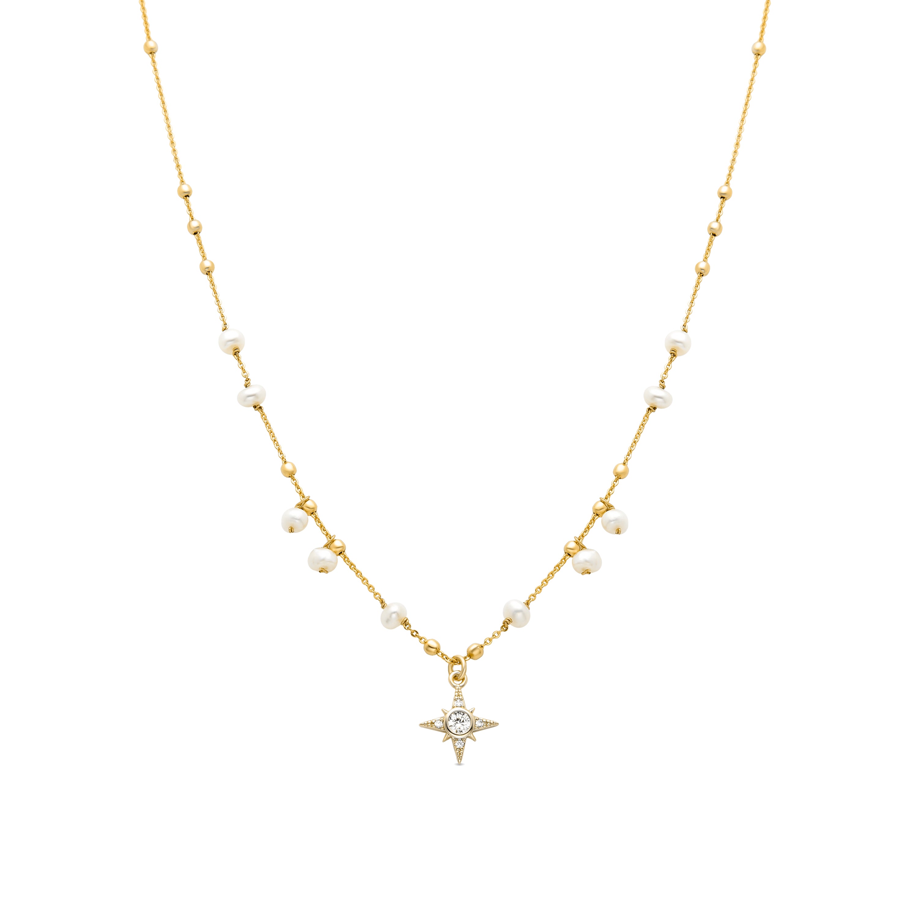 Collier de perle blanche finition en or jaune 18K - Rokrum