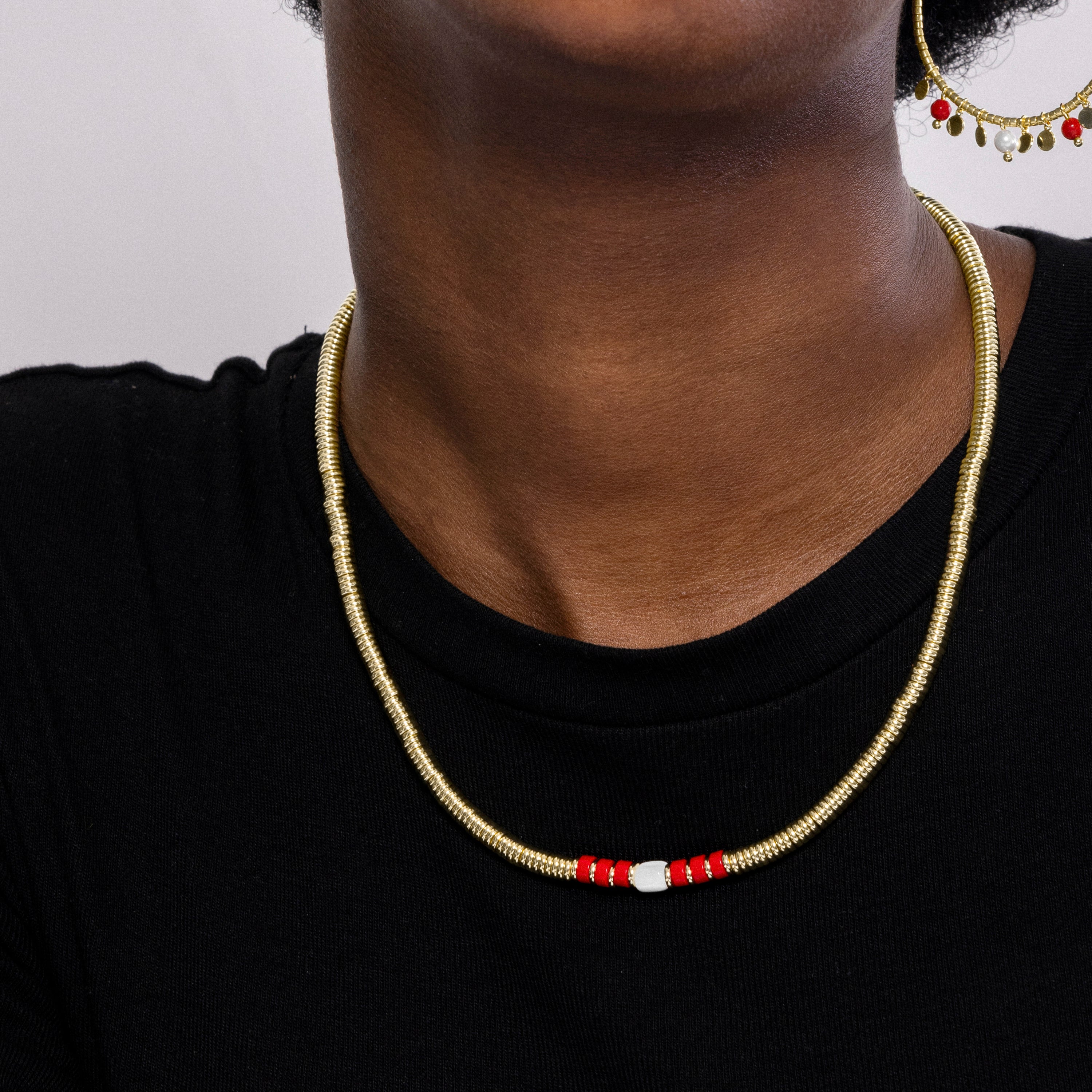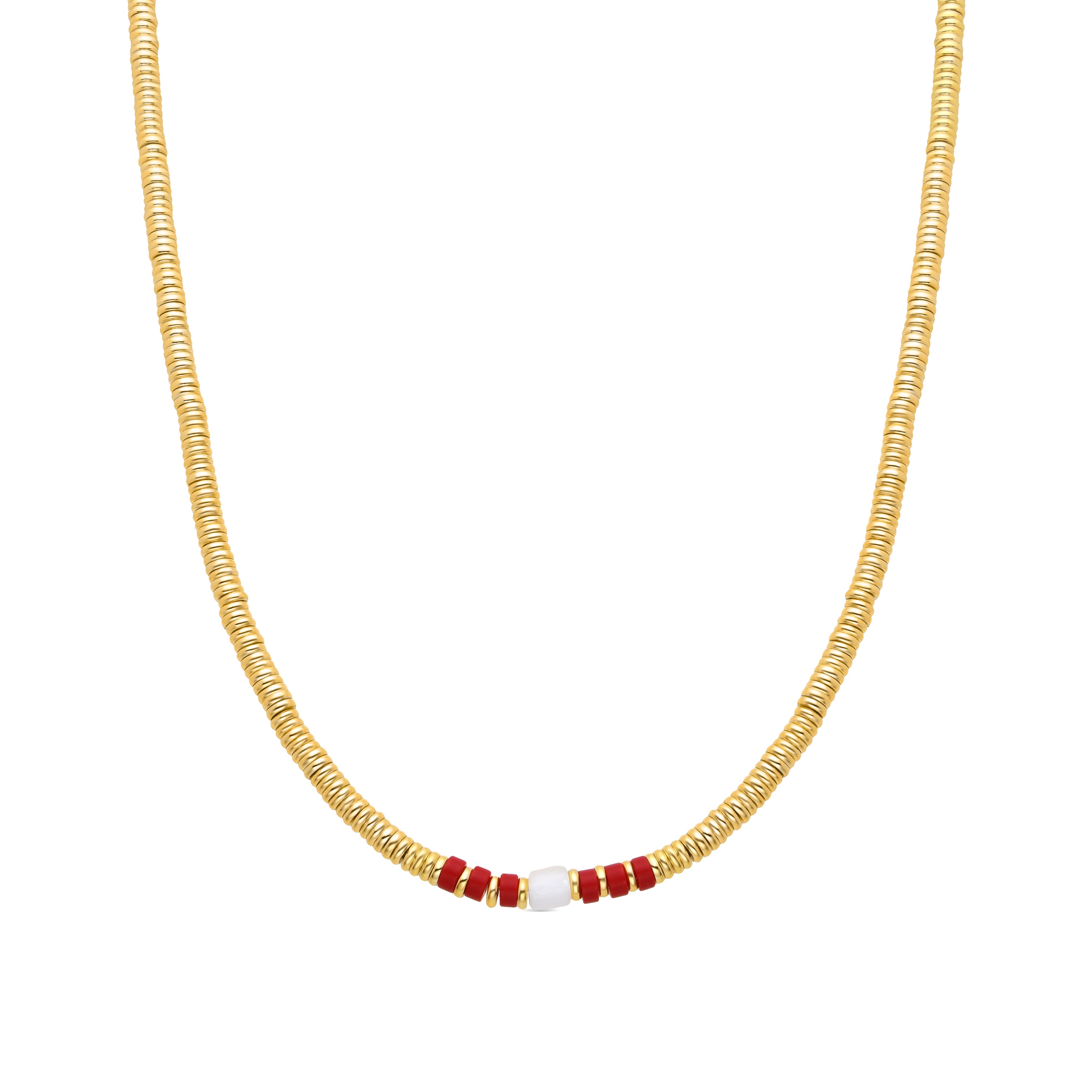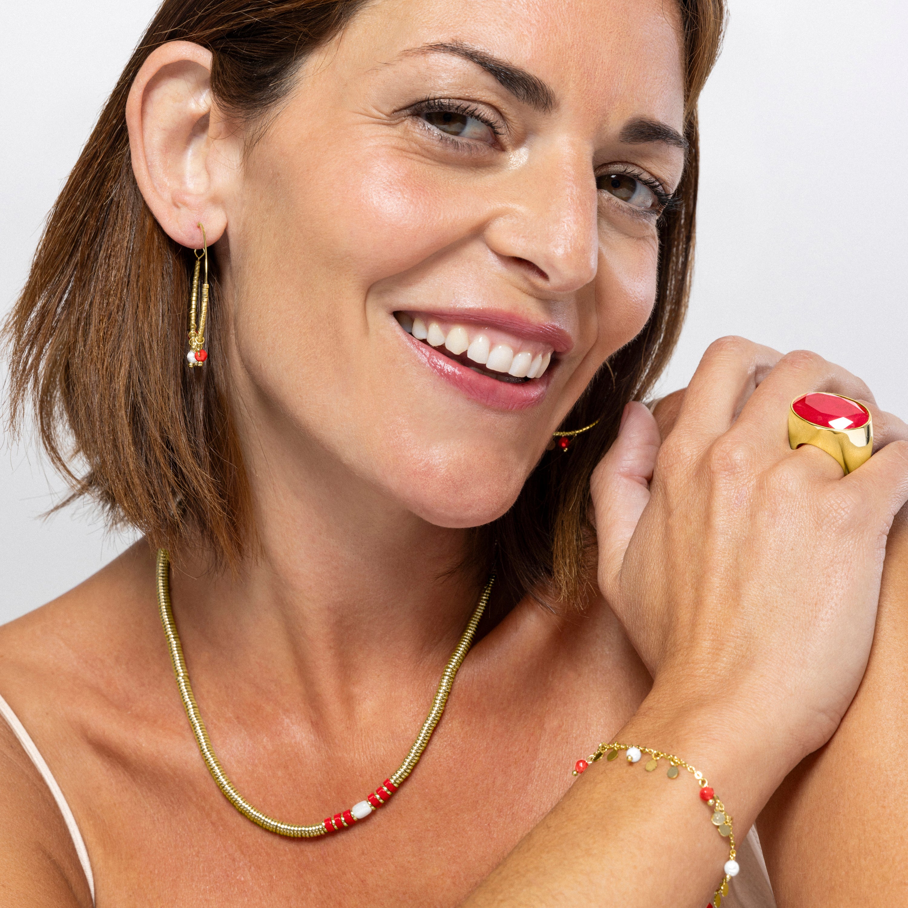 Collier en métal Sumuna en corail fini en or jaune 18 carats. Le style Boho est une esthétique d'esprit libre qui mélange différentes cultures et expressions artistiques dans un style éclectique mettant l'accent sur les éléments organiques et la nature.