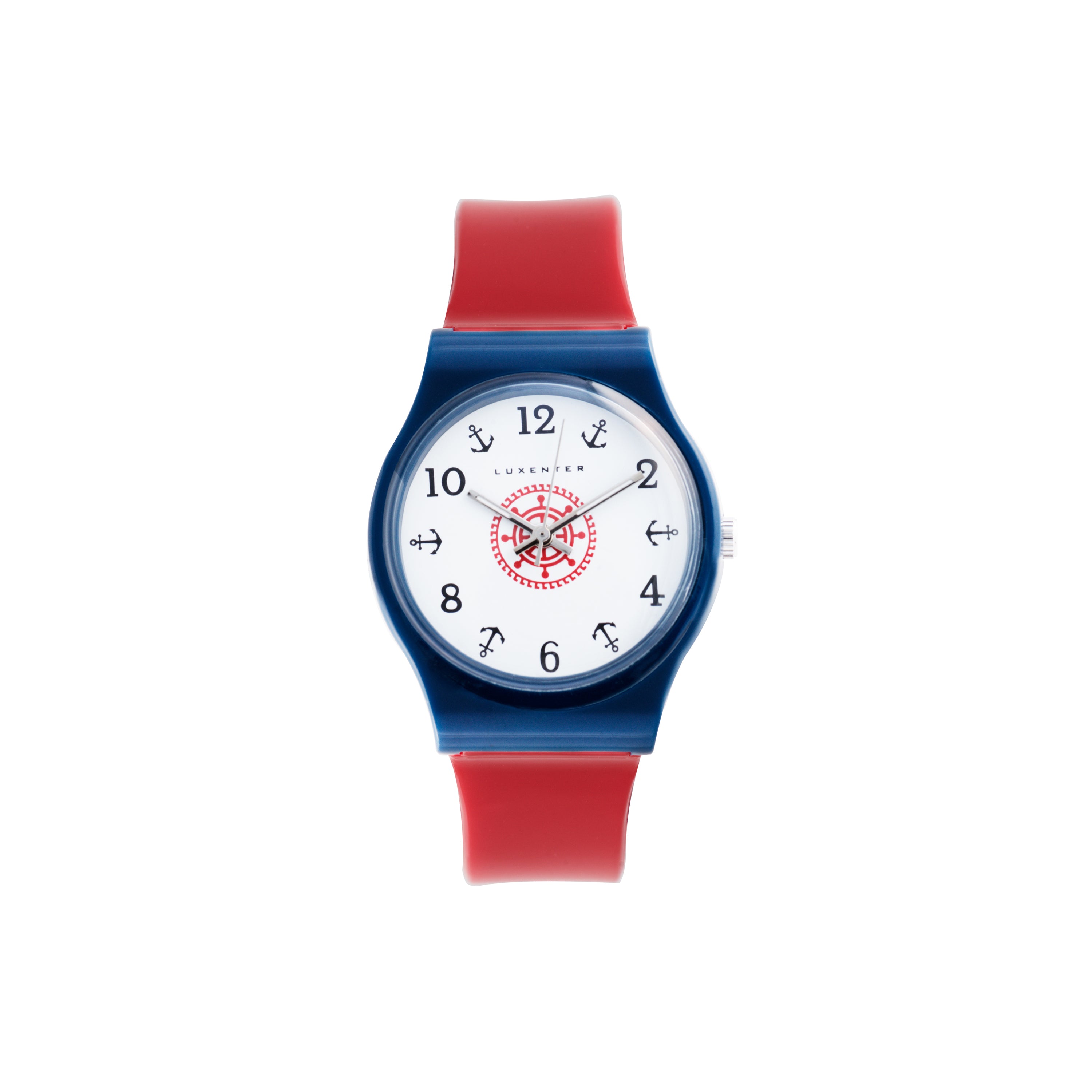 Montre khaf en plastique bleu rouge avec finition en rhodium. C'est un cadeau pour toute une vie, convenant aussi bien aux grands qu'aux petits.