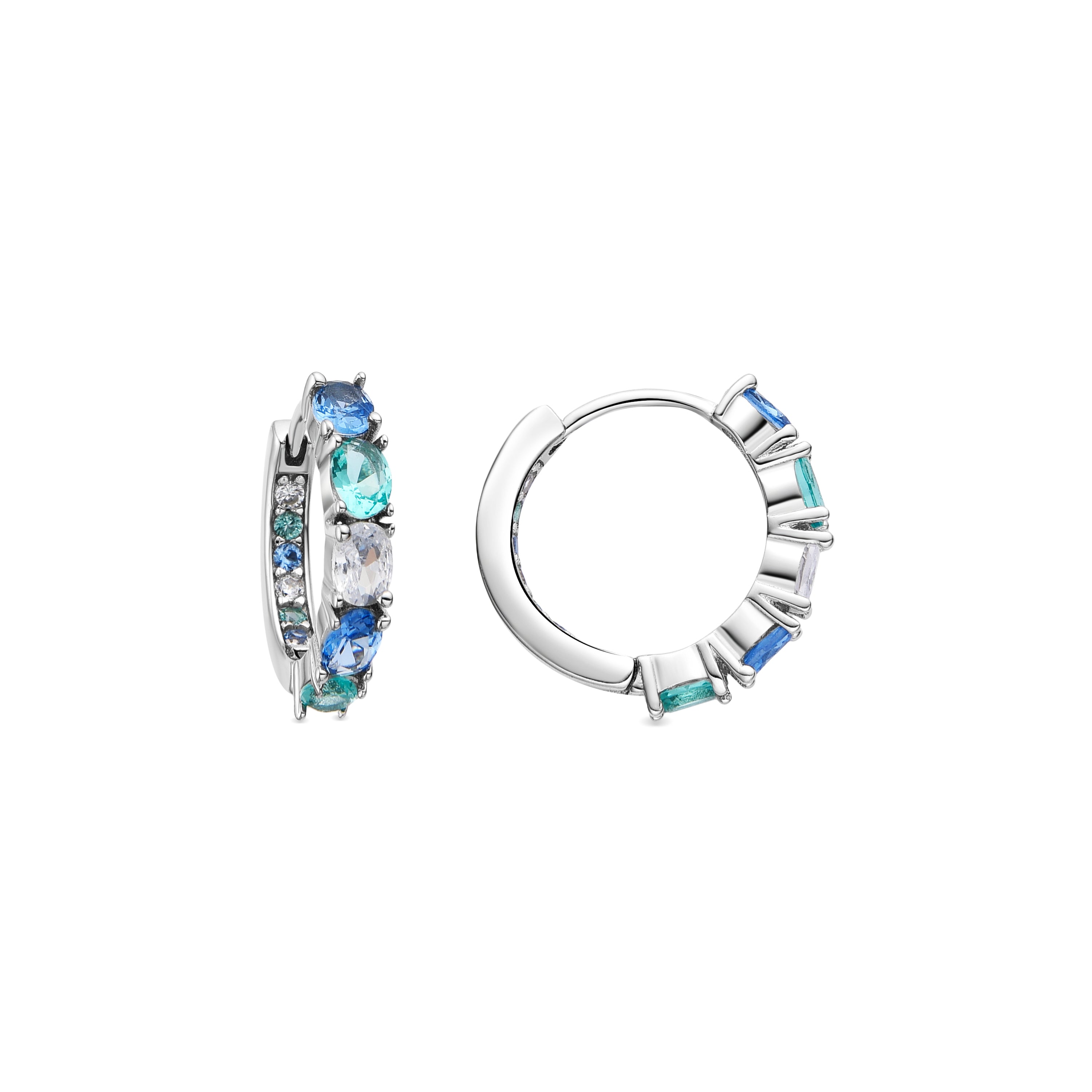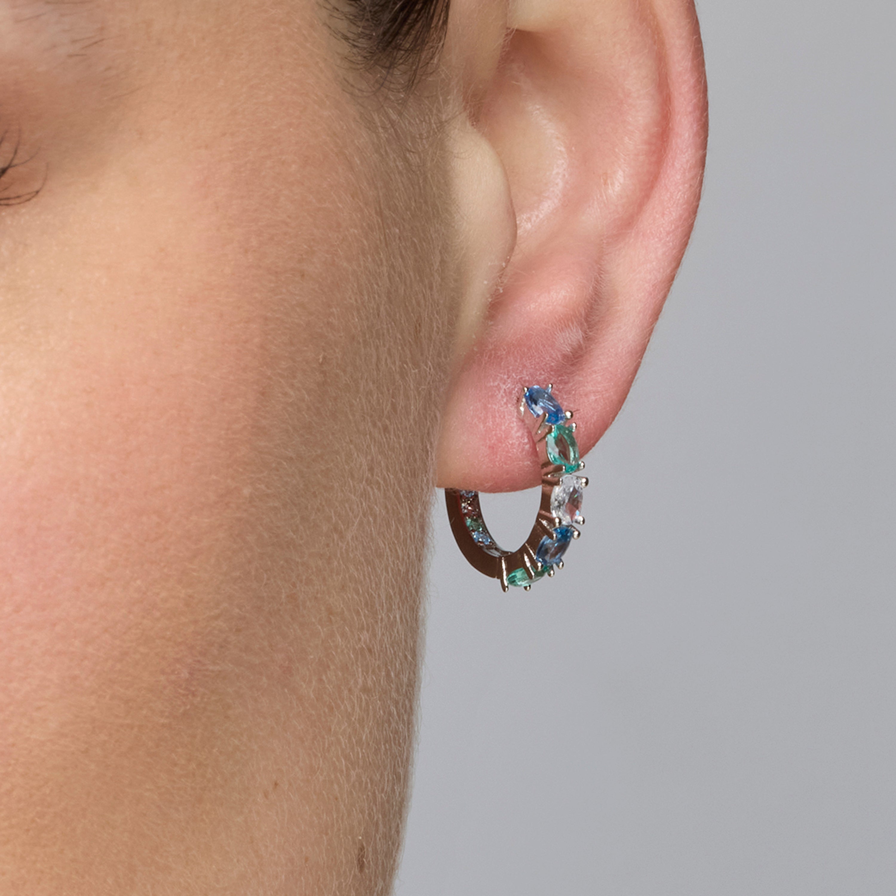 Boucles d'oreilles Naak en Argent Sterling 925 et Zircone Aigue-marine finition rhodium