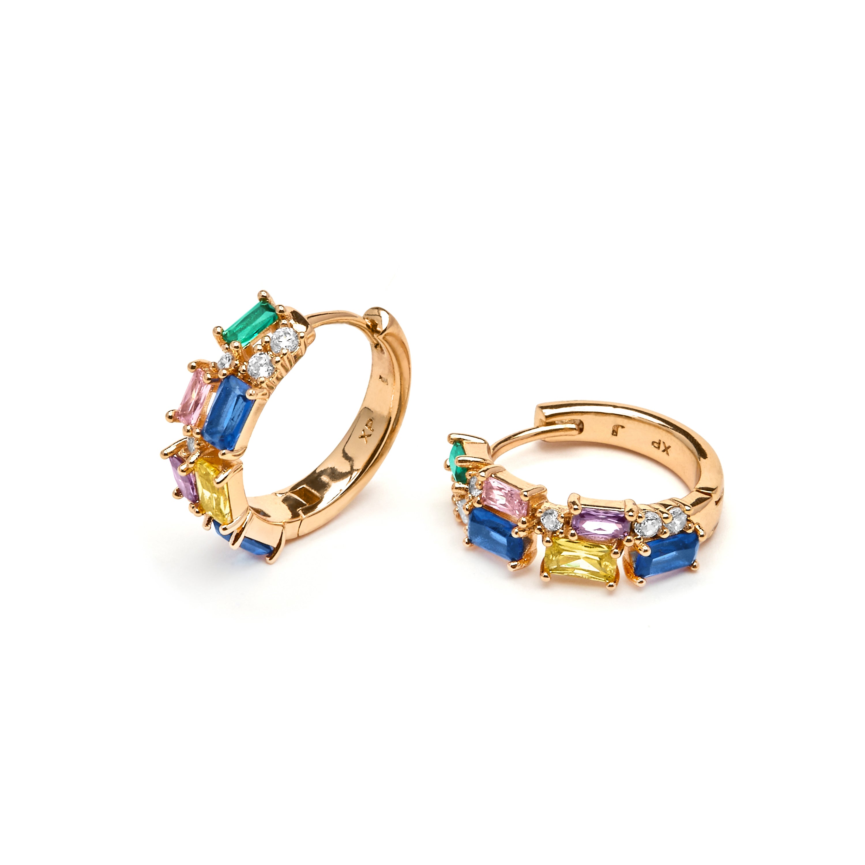 Boucles d'oreilles finition or jaune 18k et zircon multicolore - Rurik