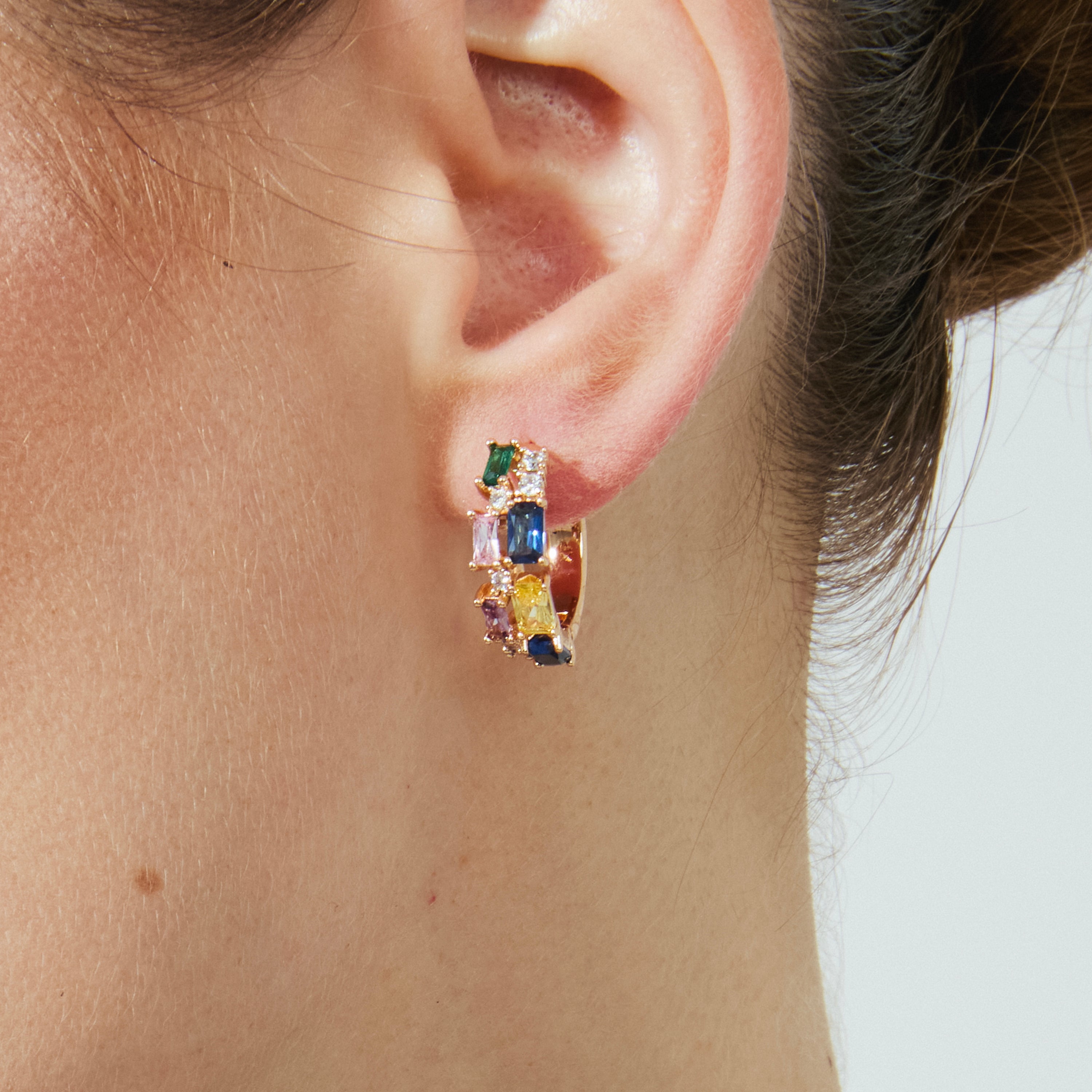 Boucles d'oreilles Rurik en zircon multicolore finition or jaune 18k