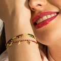 Bracciale Paila con chiusura in Argento Sterling 925, perline e pendenti in metallo e Zirconia Brillante con finitura in oro 18k. Esprimi un desiderio si caratterizza per design di carattere giovane, ricchi di significato e colore, originali ma discreti, che intendono diventare piccoli amuleti.