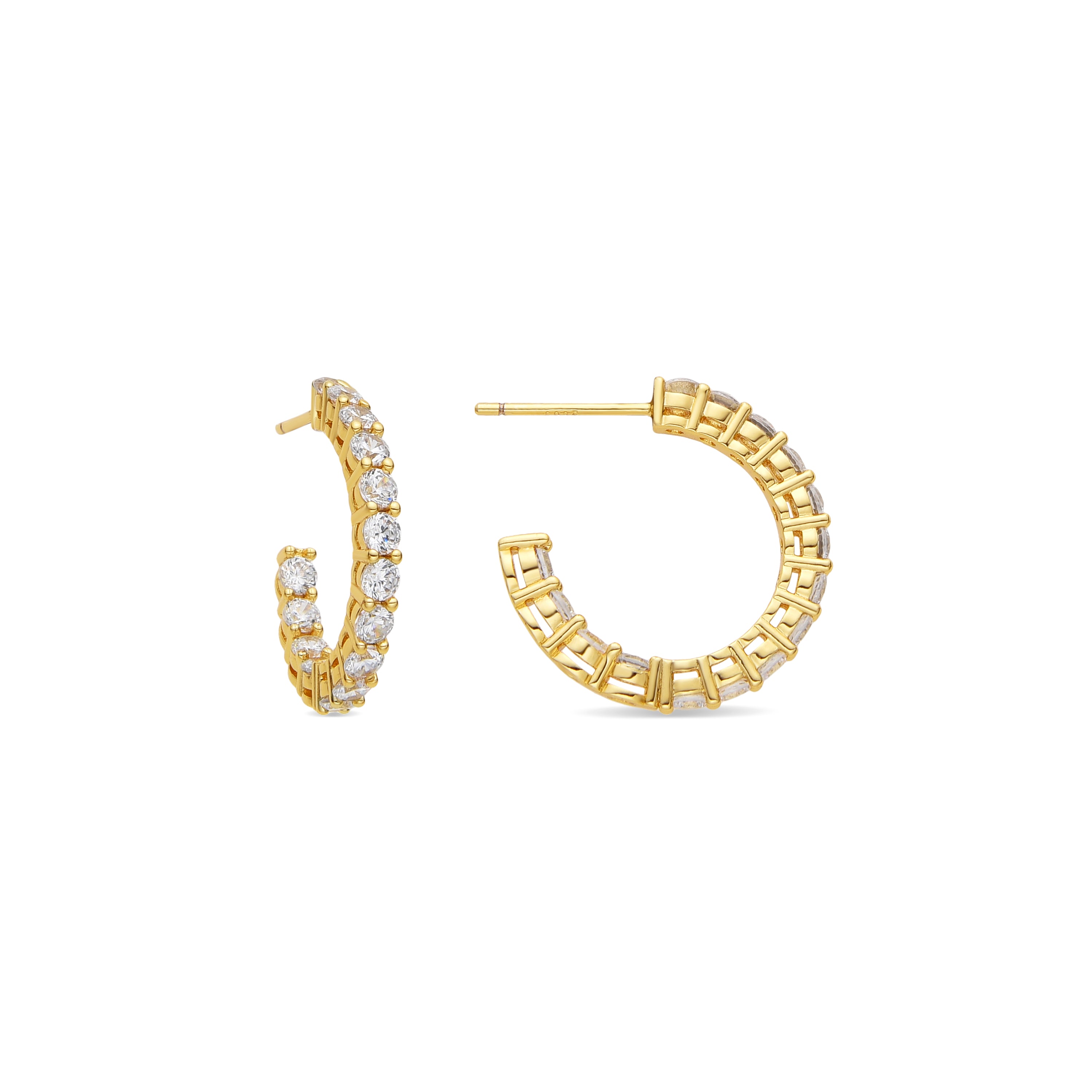 Orecchini Chenfa con Zirconia Brillante finitura oro 18k. LuxbyLux Essential incarna la semplicità raffinata, pezzi senza tempo con linee morbide e la brillantezza aggiuntiva delle zirconie. Gioielli basici senza pretese, perfetti per l'uso quotidiano, ma che possono funzionare anche in occasioni speciali.