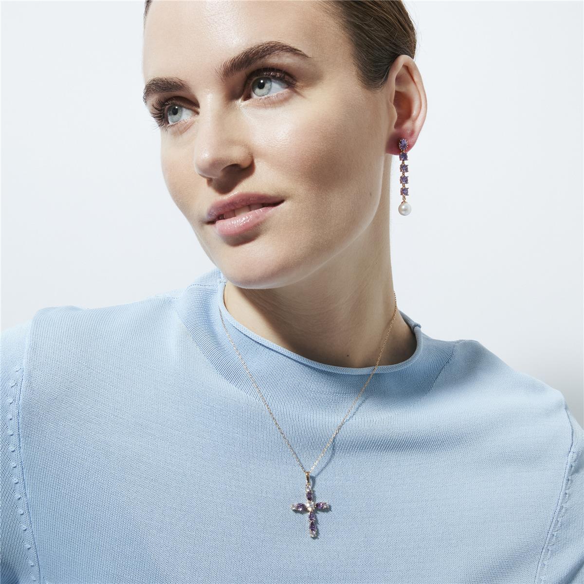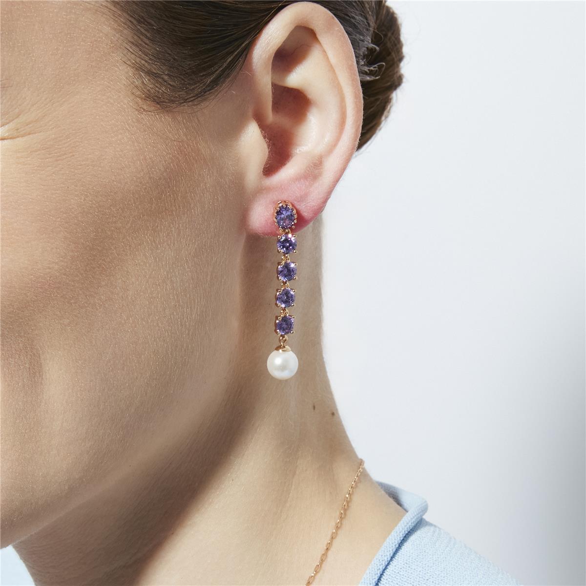 Orecchini Thagy con zircone ametista finitura in oro giallo 18k