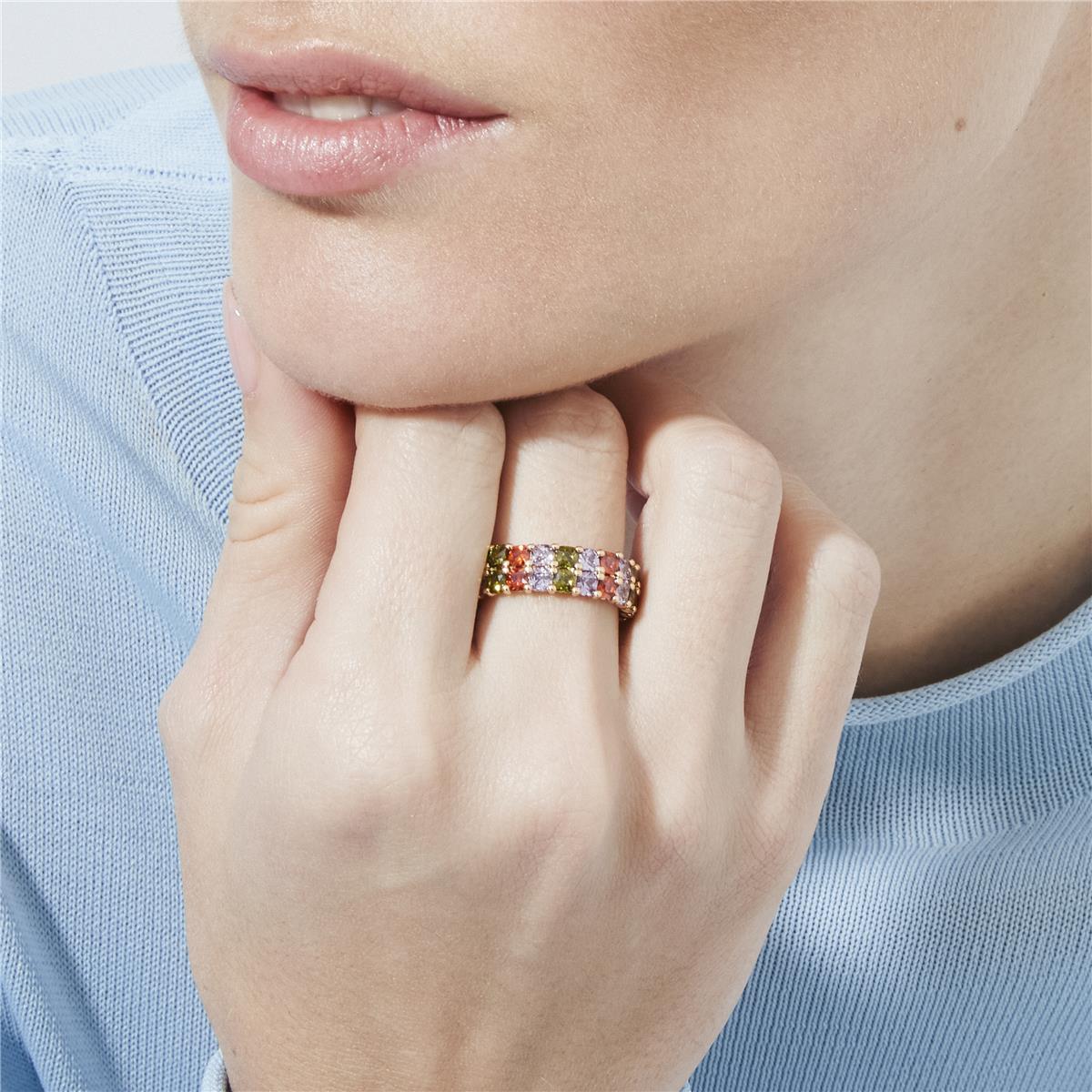 Anello con zirconi multicolore finitura in oro giallo 18k - Tomi