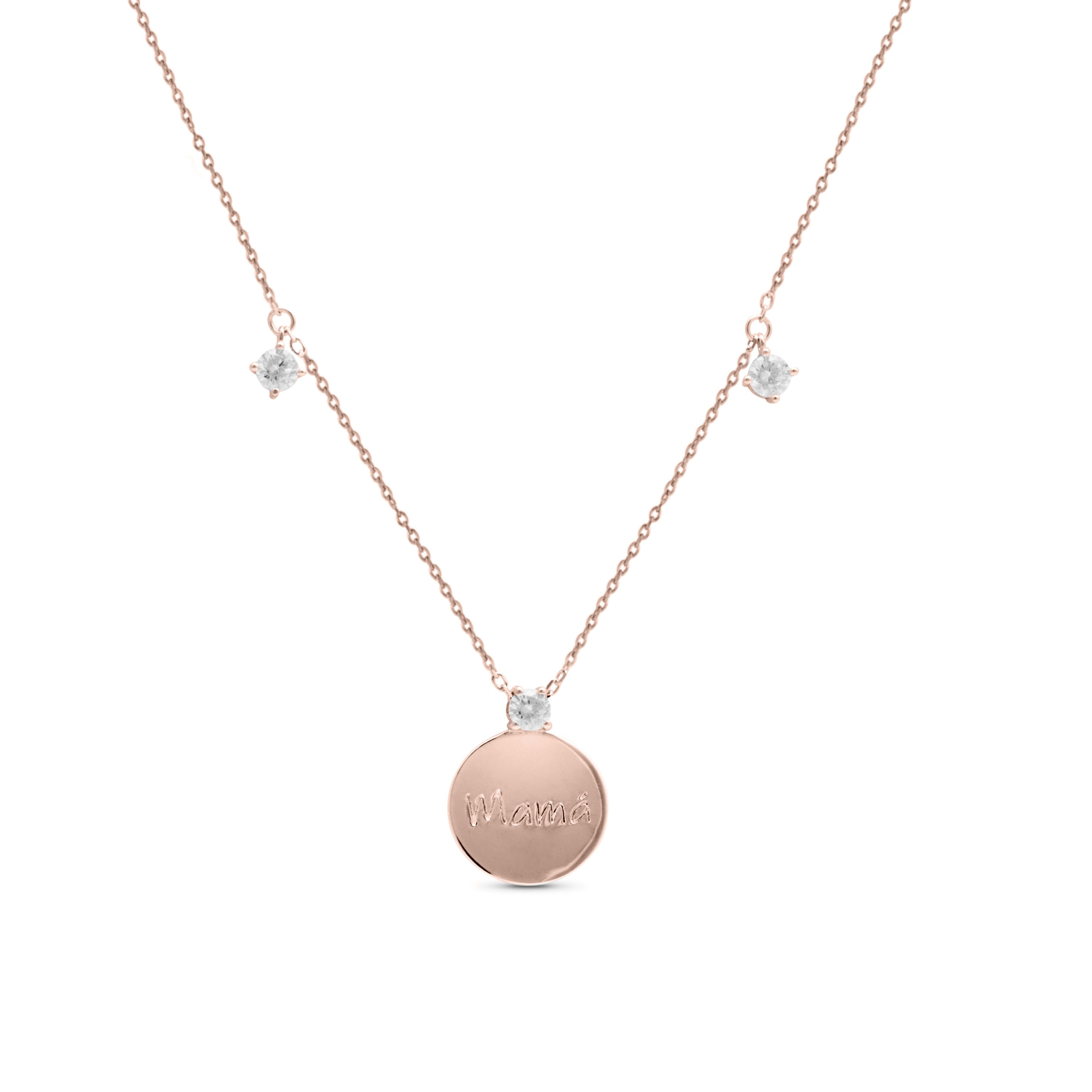 Collana in argento sterling 925 e zirconia brillante con finitura in bagno d'oro rosa 18 carati. L'amore e l'affetto trasformati in gioiello per ringraziare con il cuore le madri per tutto ciò che danno.