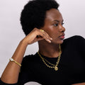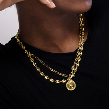 Collana in acciaio Takson finitura in oro giallo 18k. Lo stile Boho è un'estetica dallo spirito libero che mescola diverse culture ed espressioni artistiche in uno stile eclettico con enfasi sugli elementi organici e sulla natura.