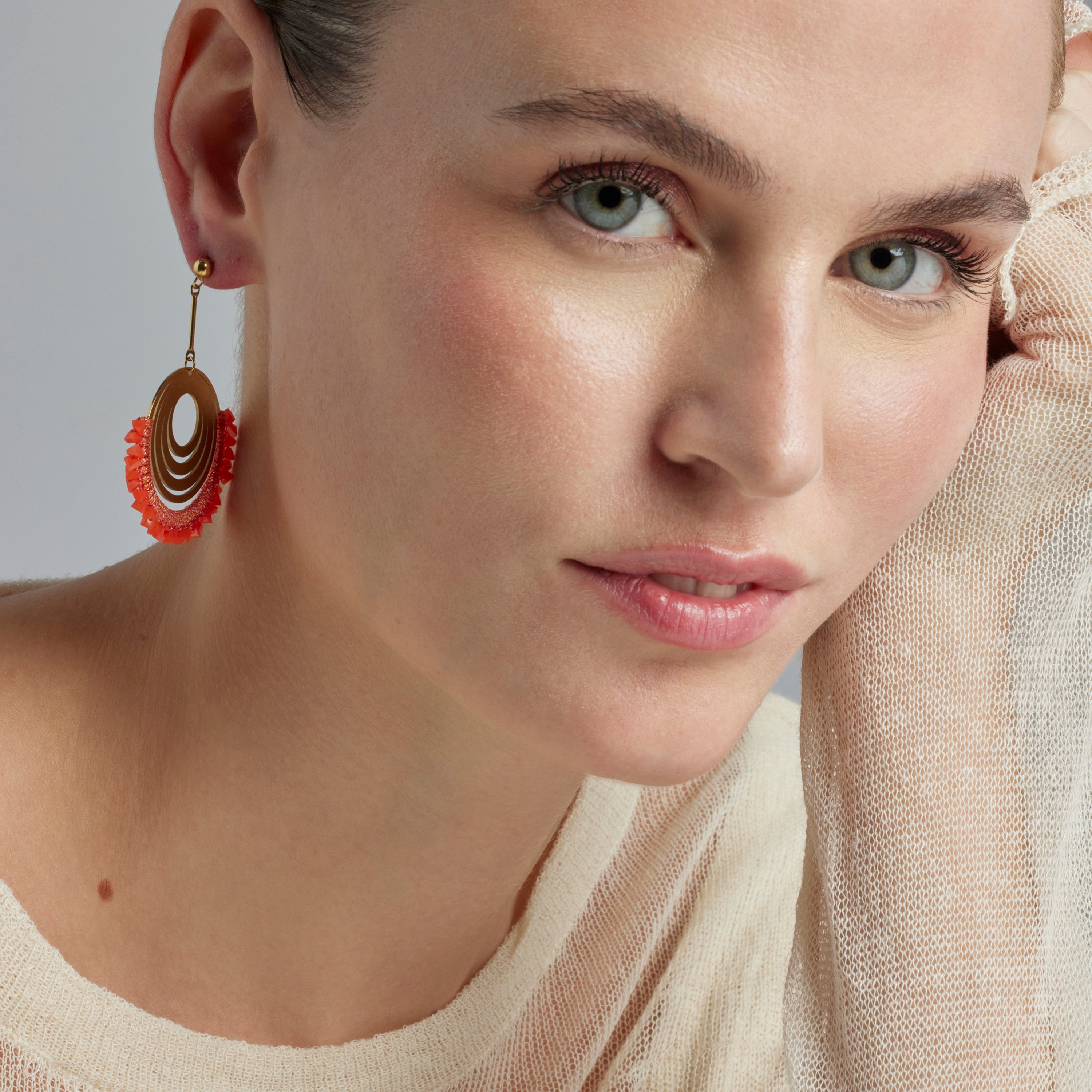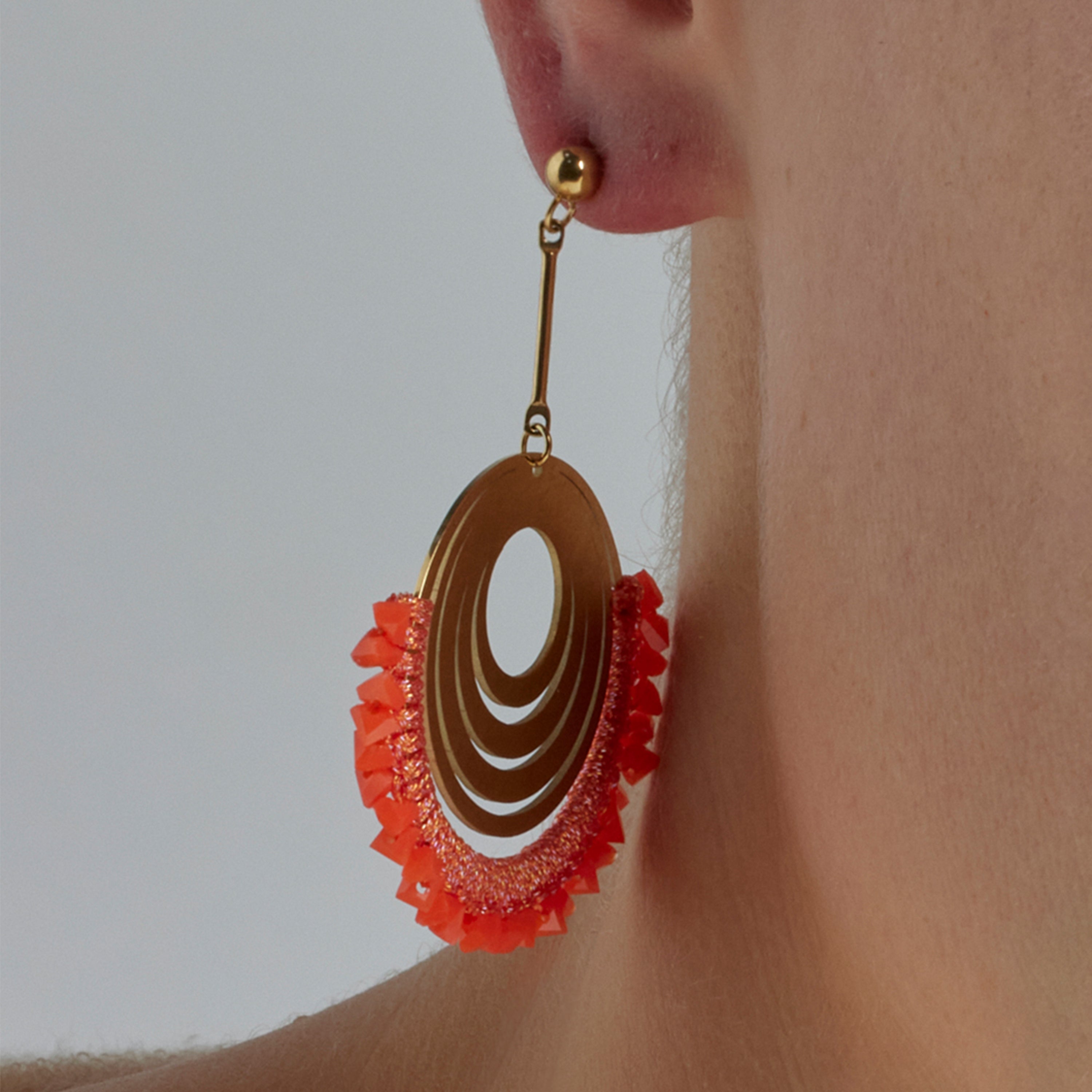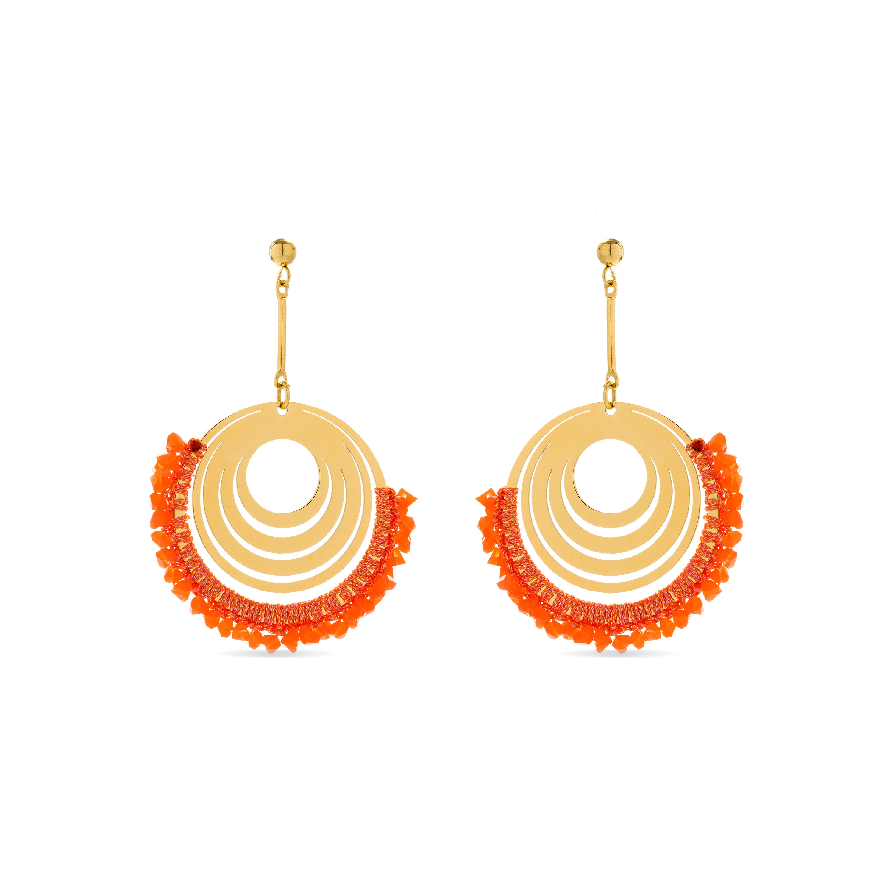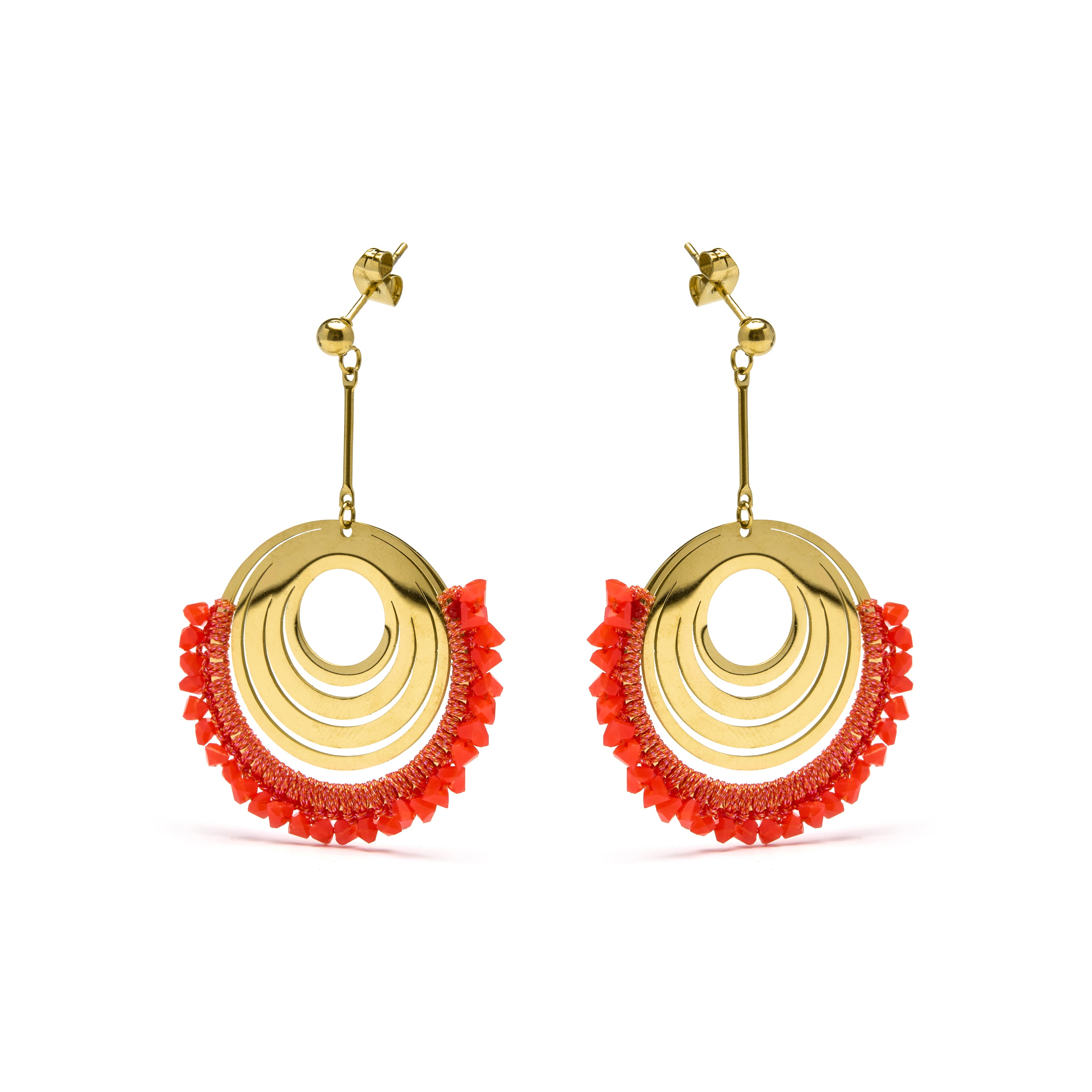 Orecchini in acciaio Ishio di Coral finiti in oro giallo 18k. Lo stile Boho è un'estetica dallo spirito libero che mescola diverse culture ed espressioni artistiche in uno stile eclettico con enfasi sugli elementi organici e sulla natura.