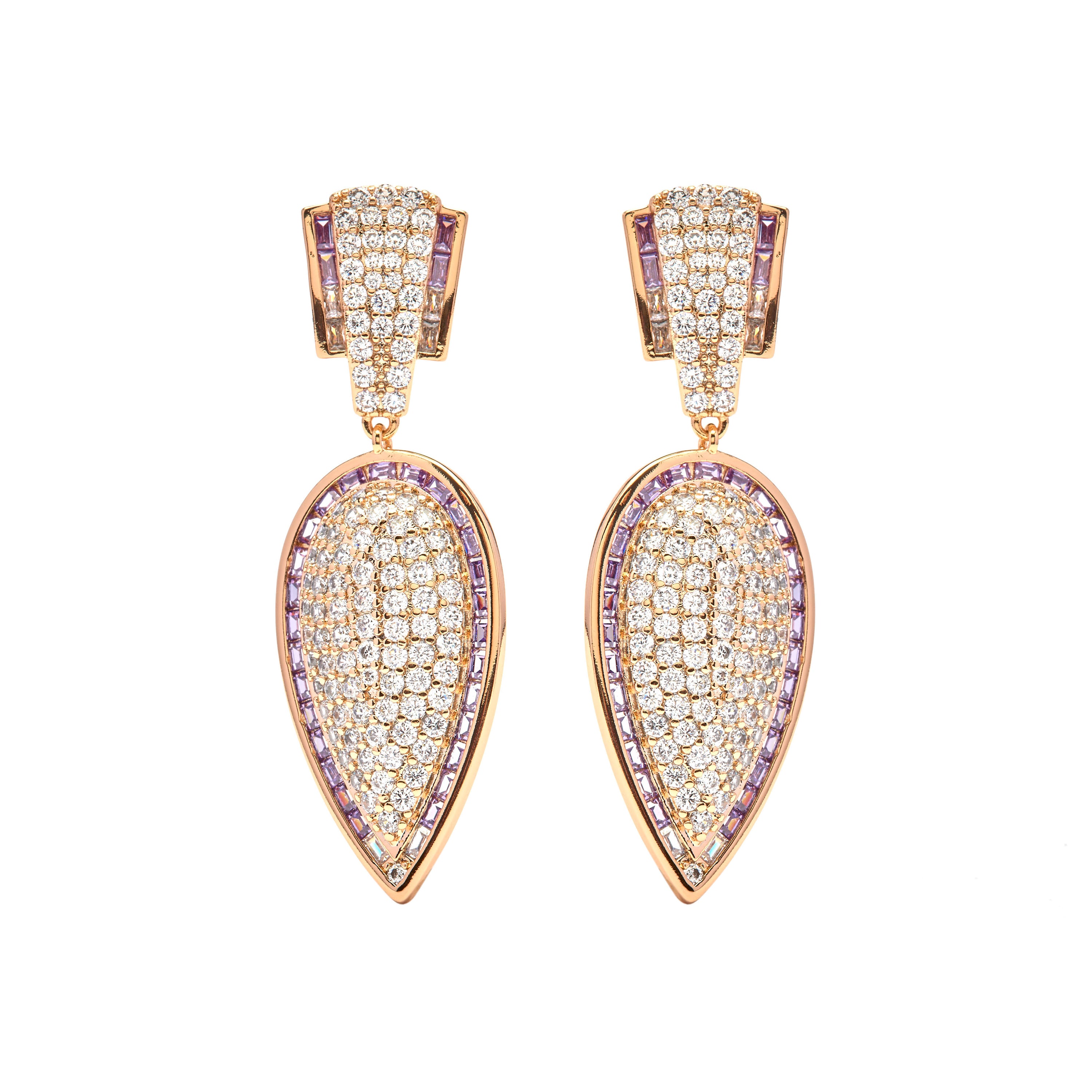 Orecchini Halek con Zirconia Ametista finitura in oro giallo 18k