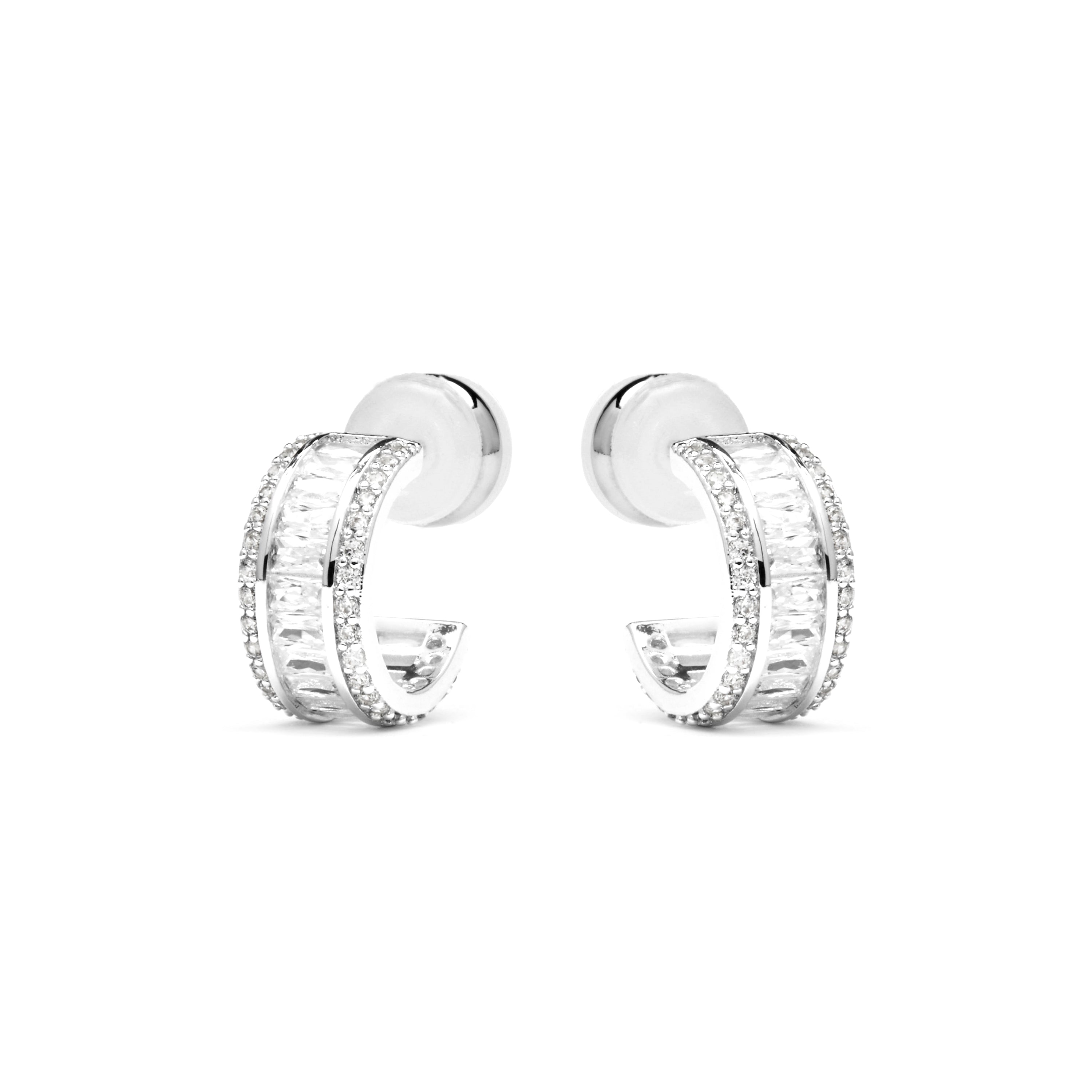 Orecchini Squil con Zirconia Brillante finitura argento. Essential incarna la semplicità raffinata, pezzi senza tempo con linee morbide e il brillante aggiuntivo delle zirconie. Gioielli di base senza pretese che sono perfetti per l'uso quotidiano, ma possono anche funzionare in occasioni speciali.