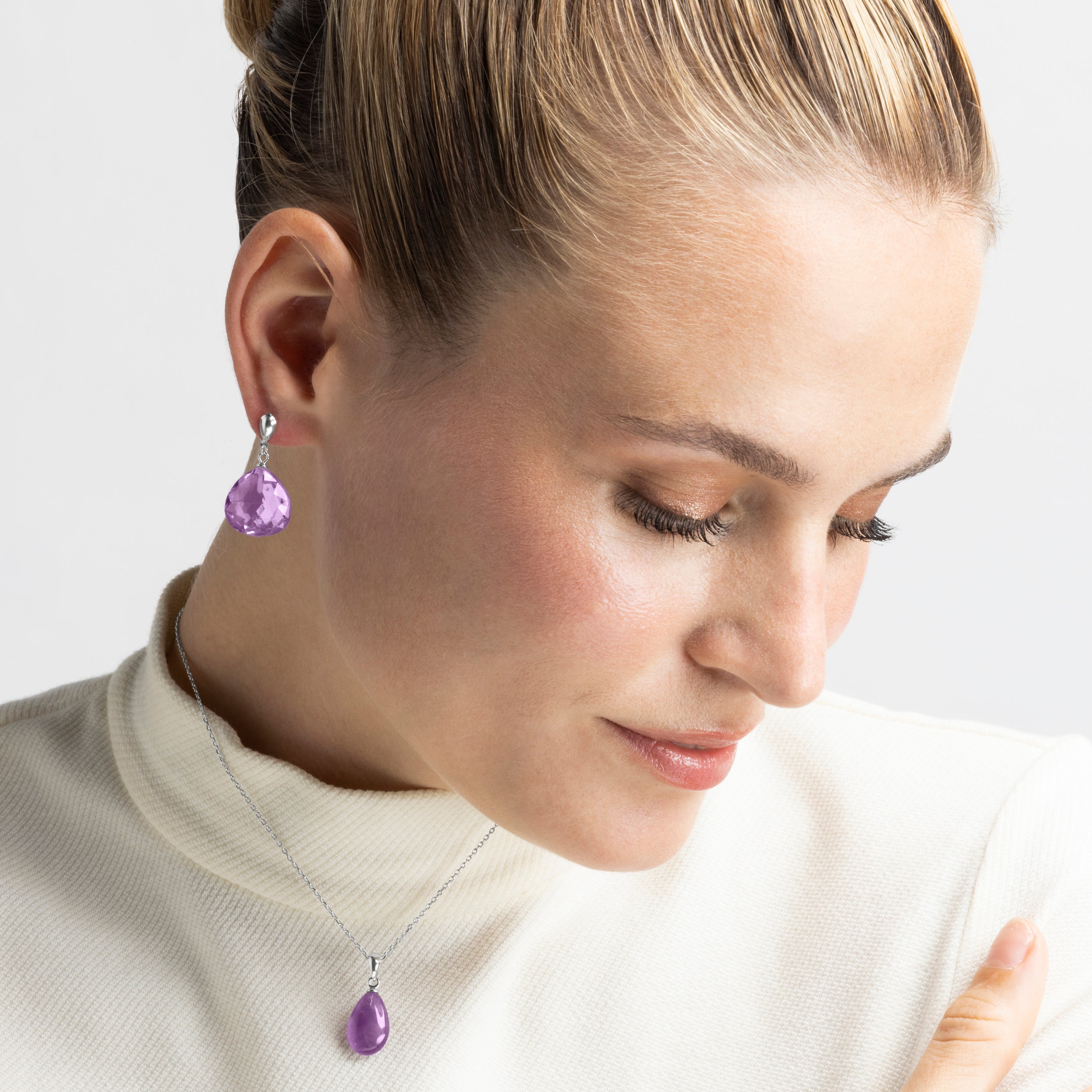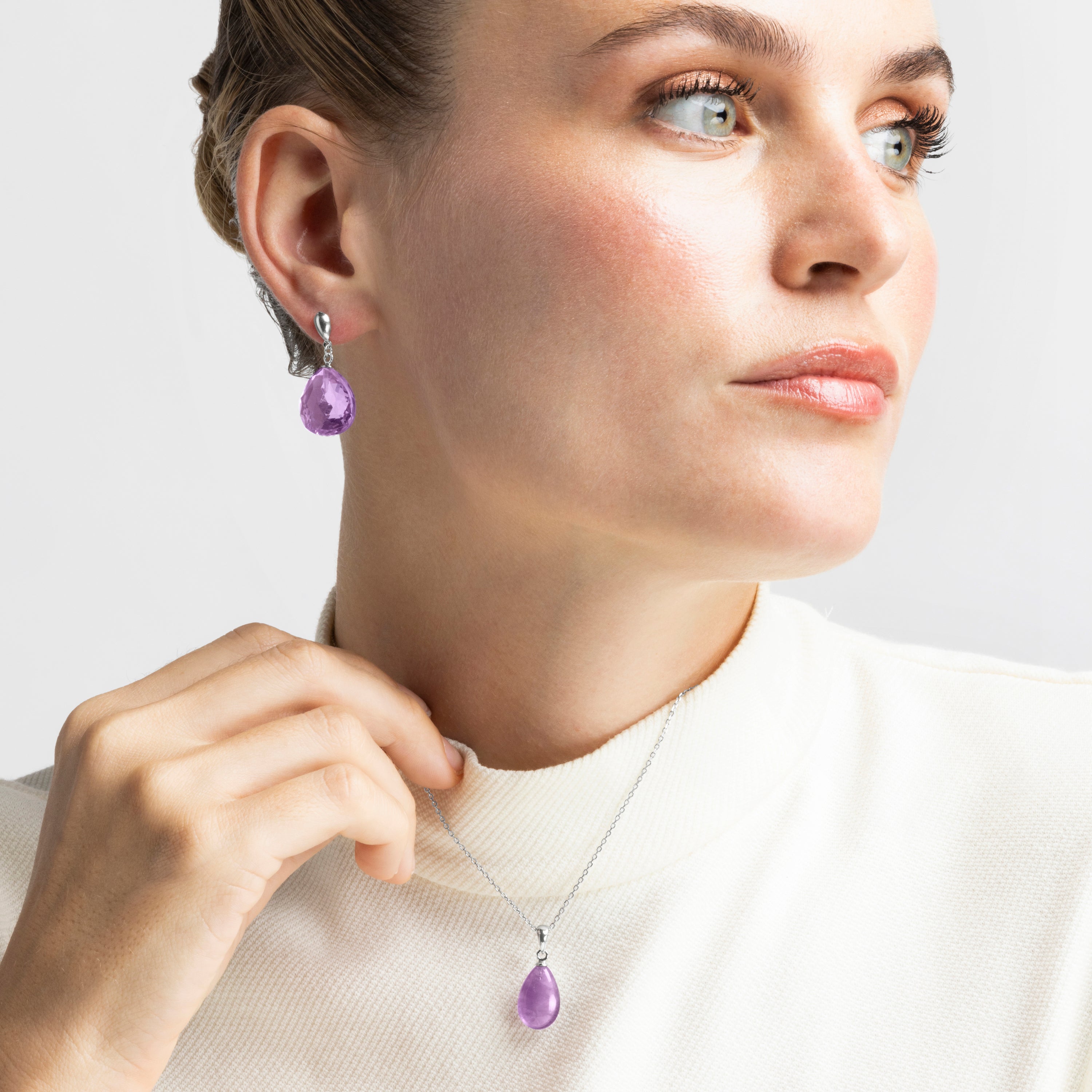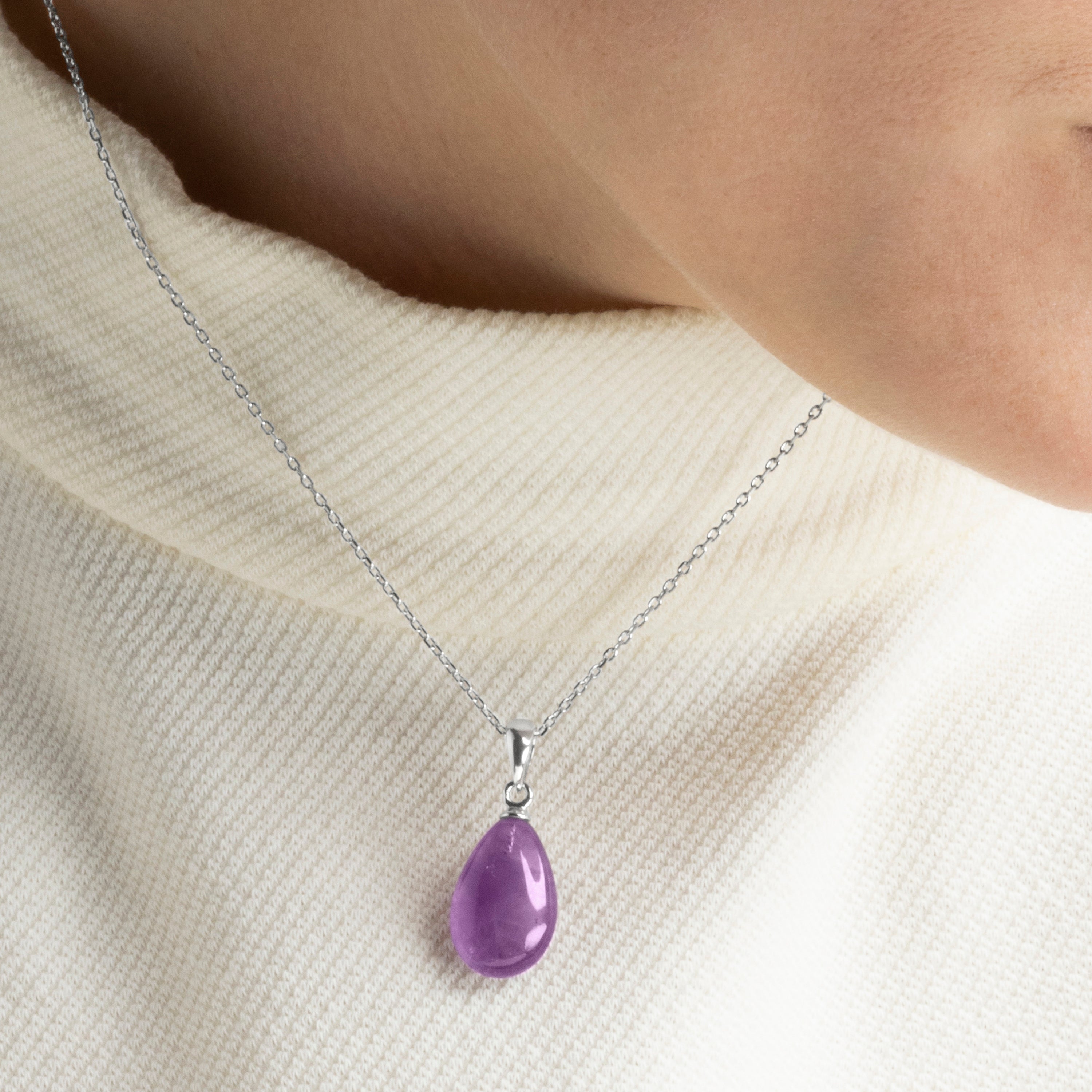 Collana in Argento Sterling 925 con Amatista Naturale finitura in rodio - Goccia