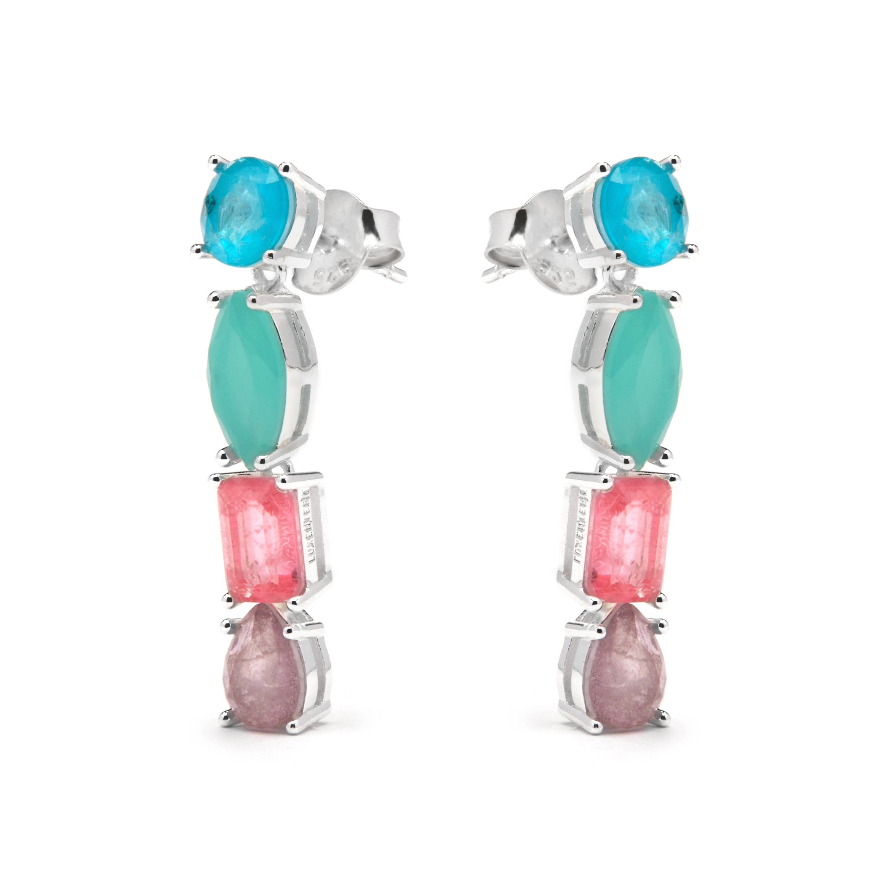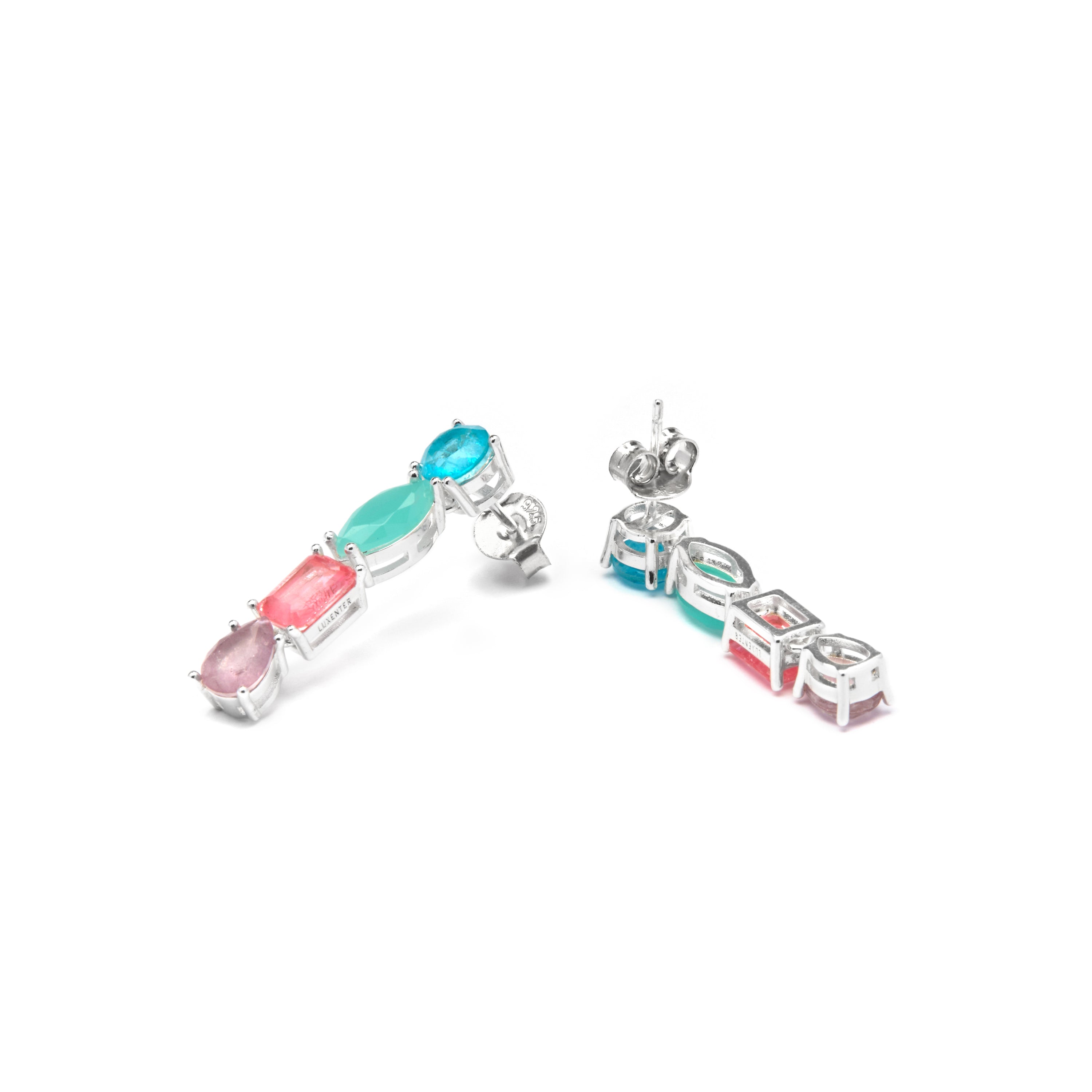 Orecchini Larec in Argento Sterling 925 e Quarzo Idrotermale Multicolore con finitura in rodio