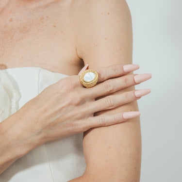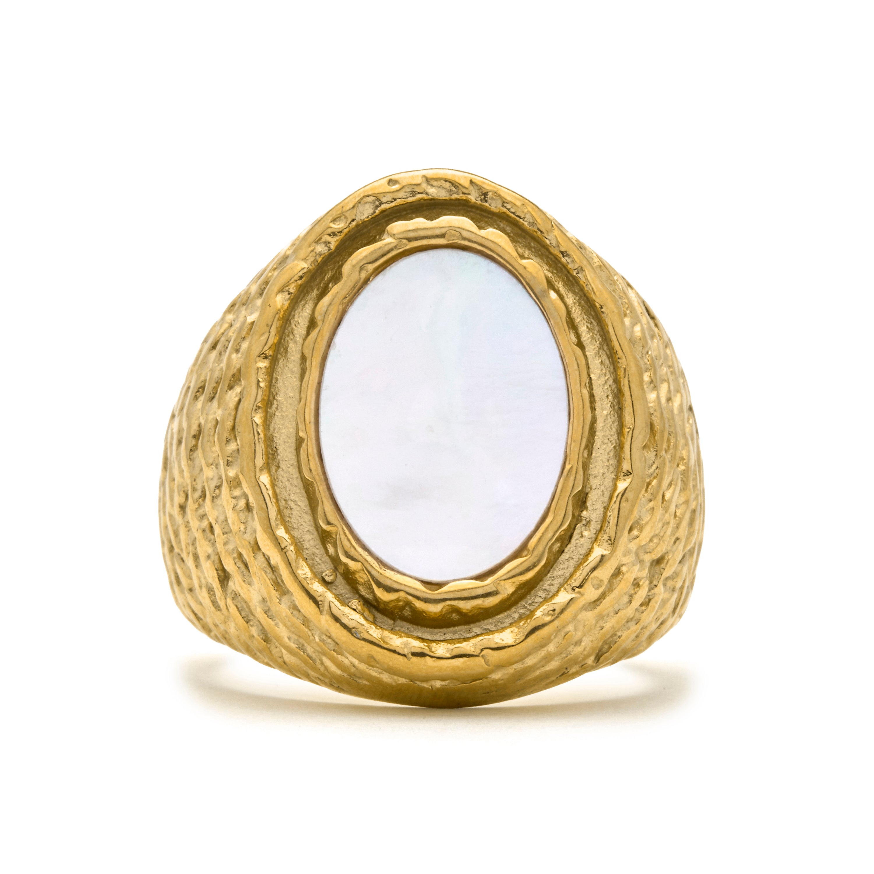 Anello di Madreperla Bianca finitura in oro giallo 18k - Mysdan