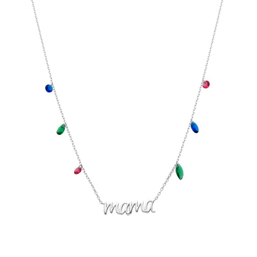 Collana in Argento Sterling 925 con Zirconia Multicolore finitura rodio - Mamma