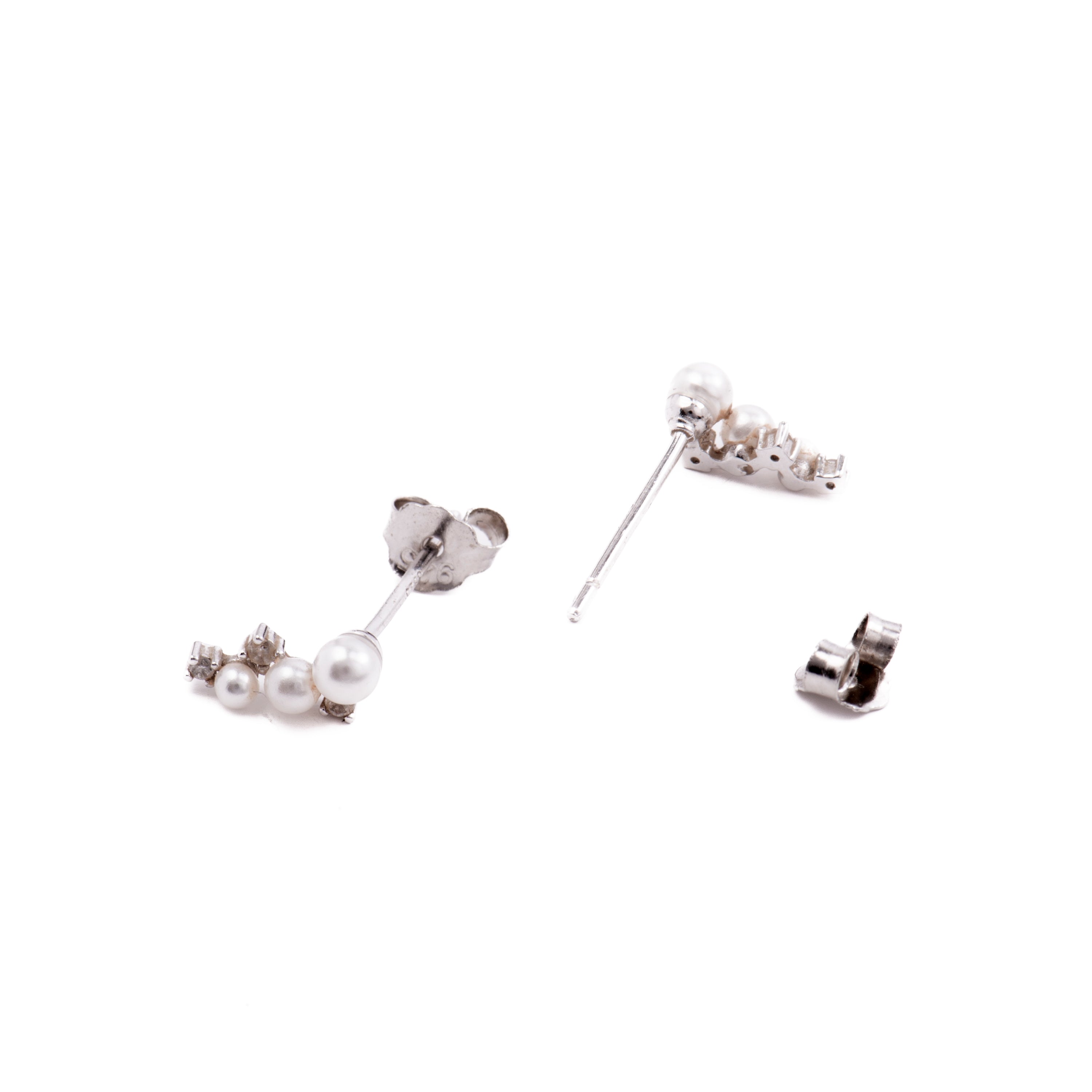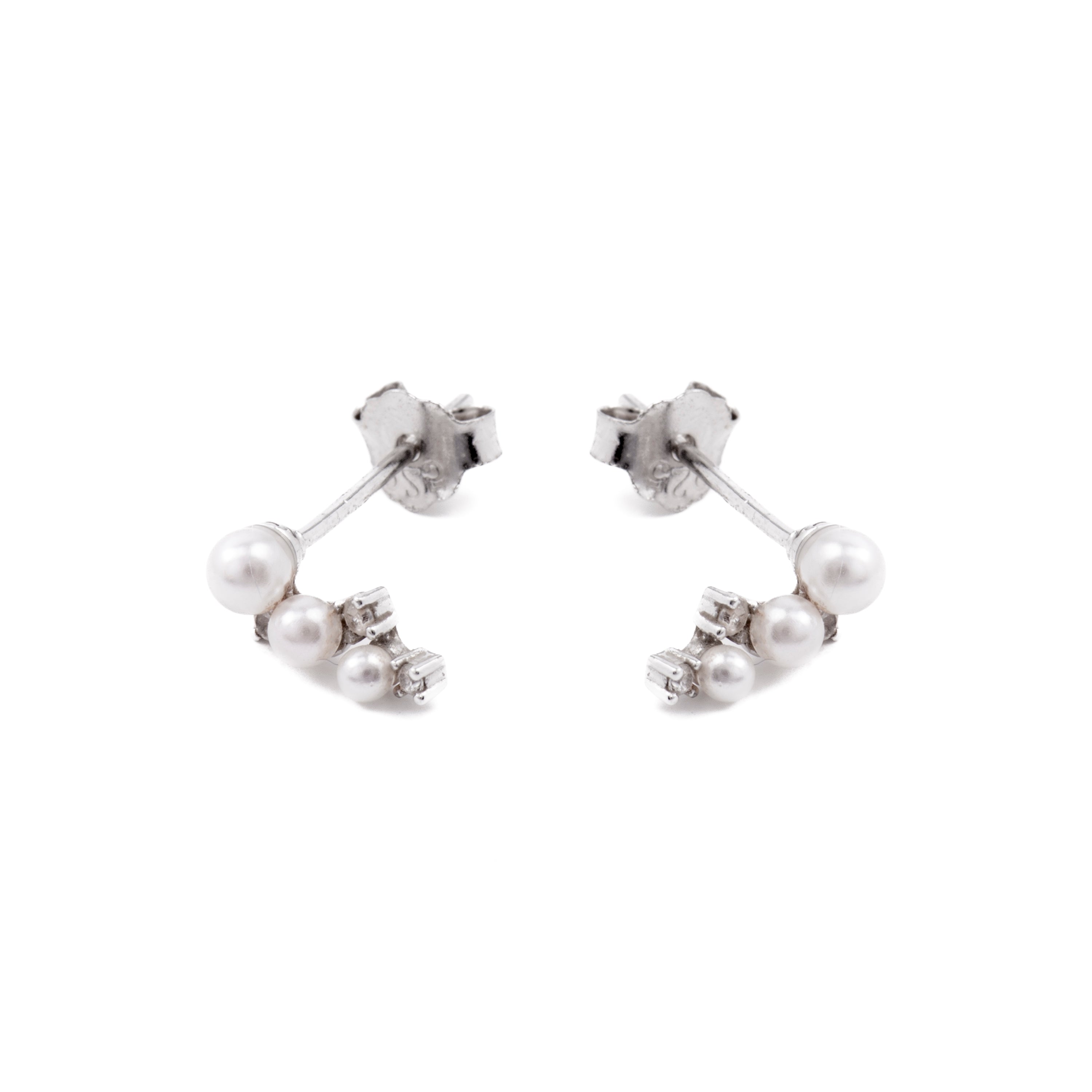 Orecchini Linpi in Argento Sterling 925 con Perla Bianca rifiniti in rodio. Essential incarna la semplicità raffinata, pezzi senza tempo con linee morbide e il brillante aggiuntivo delle zirconie. Gioielli di base senza pretese che sono perfetti per l'uso quotidiano, ma possono anche funzionare in occasioni speciali.