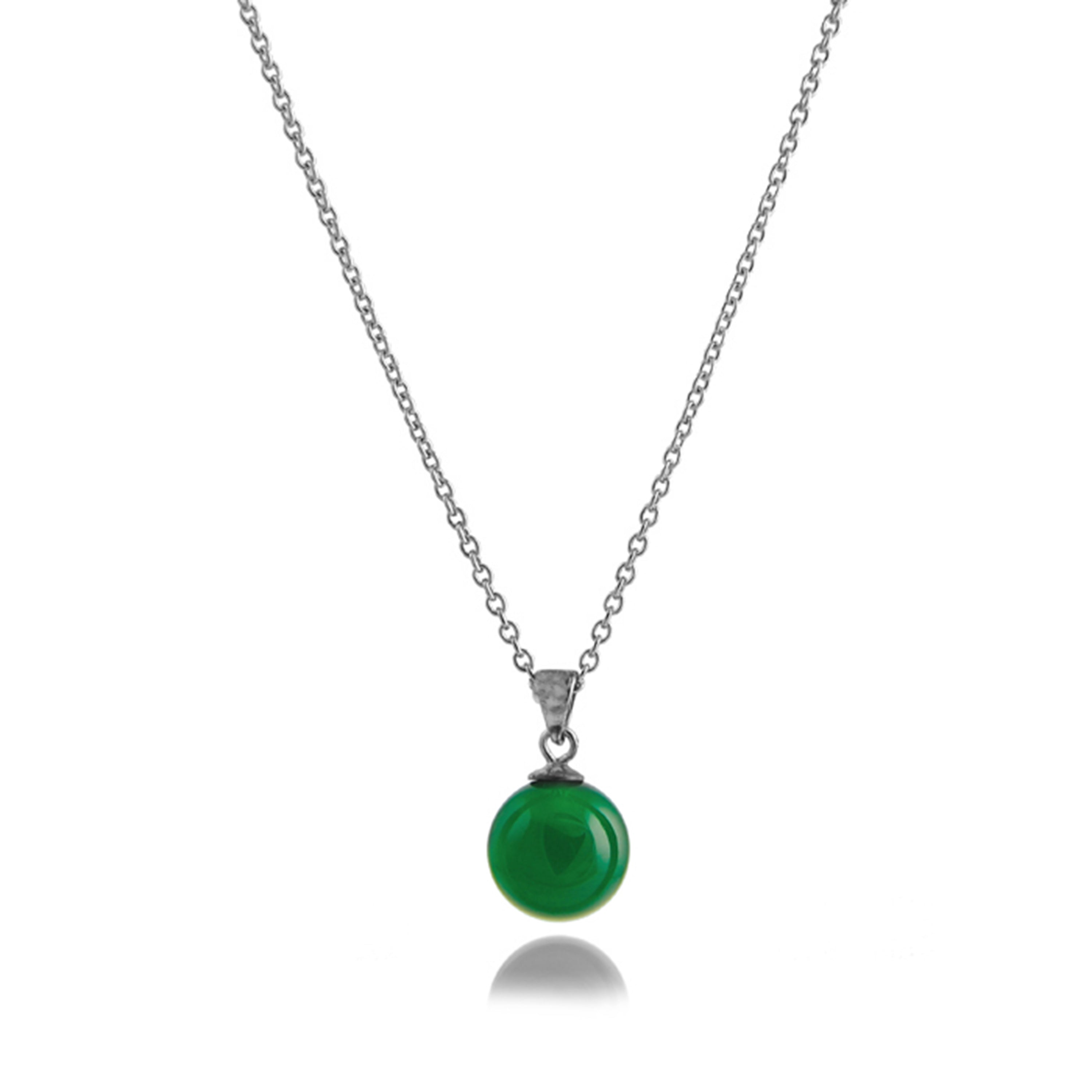 Collana in Argento Sterling 925 con Agata Verde Naturale finitura in rodio - Geel