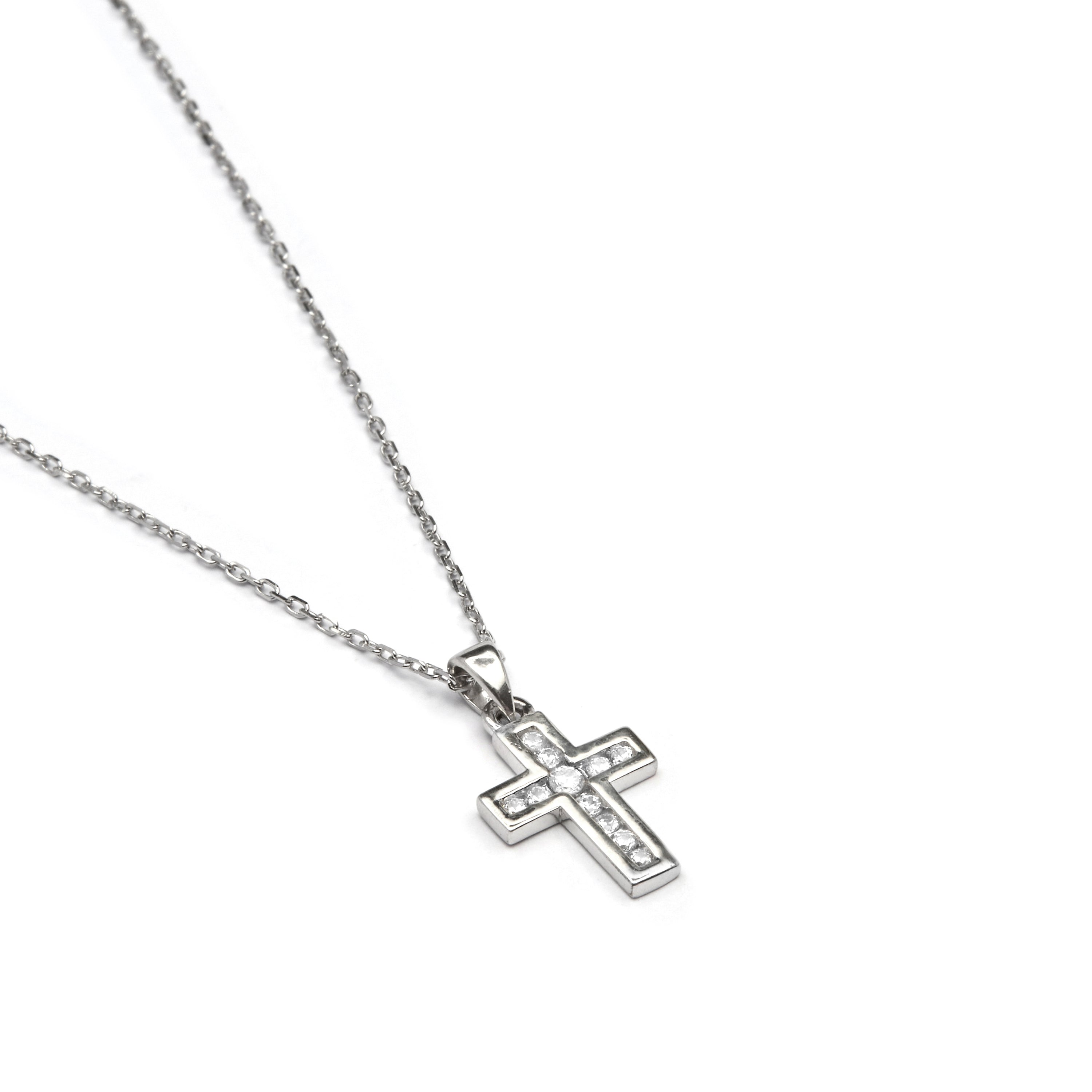 Collana in Argento Sterling 925 con Zirconia Cubica brillante finitura in rodio - Battesimo