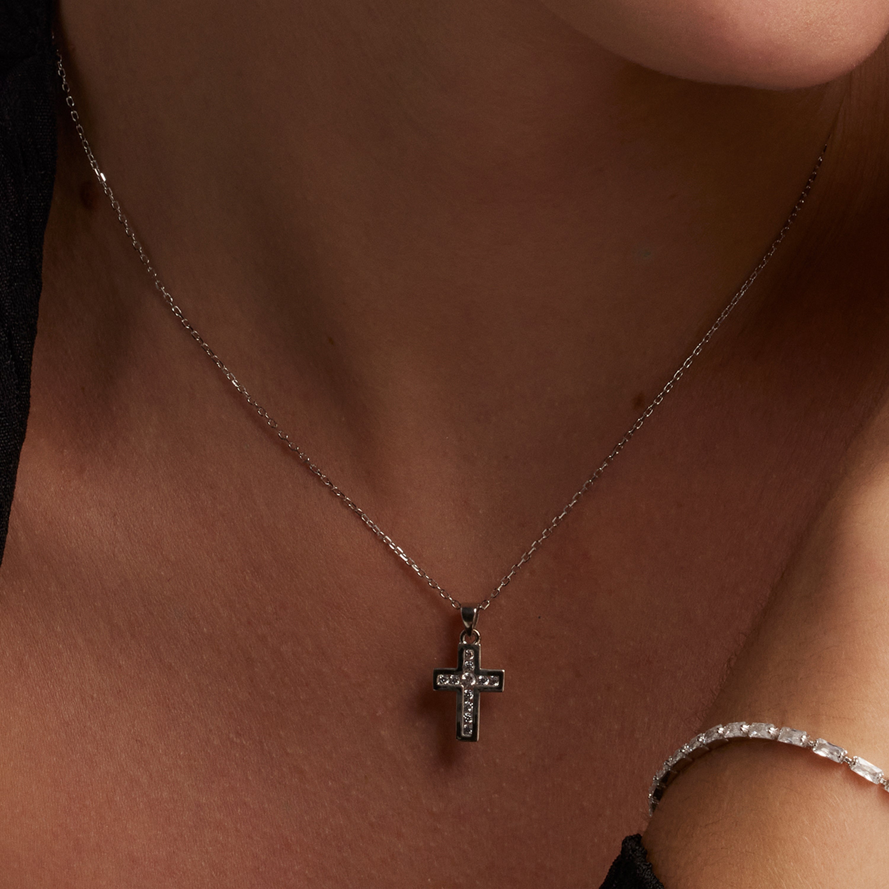 Collana battesimale in argento sterling 925 e zirconia brillante con finitura in bagno di rodio. Momenti per brillare combina perfettamente design che resistono al passare del tempo con gioielli più innovativi. Gioielli eleganti e sofisticati per brillare in occasioni speciali.
