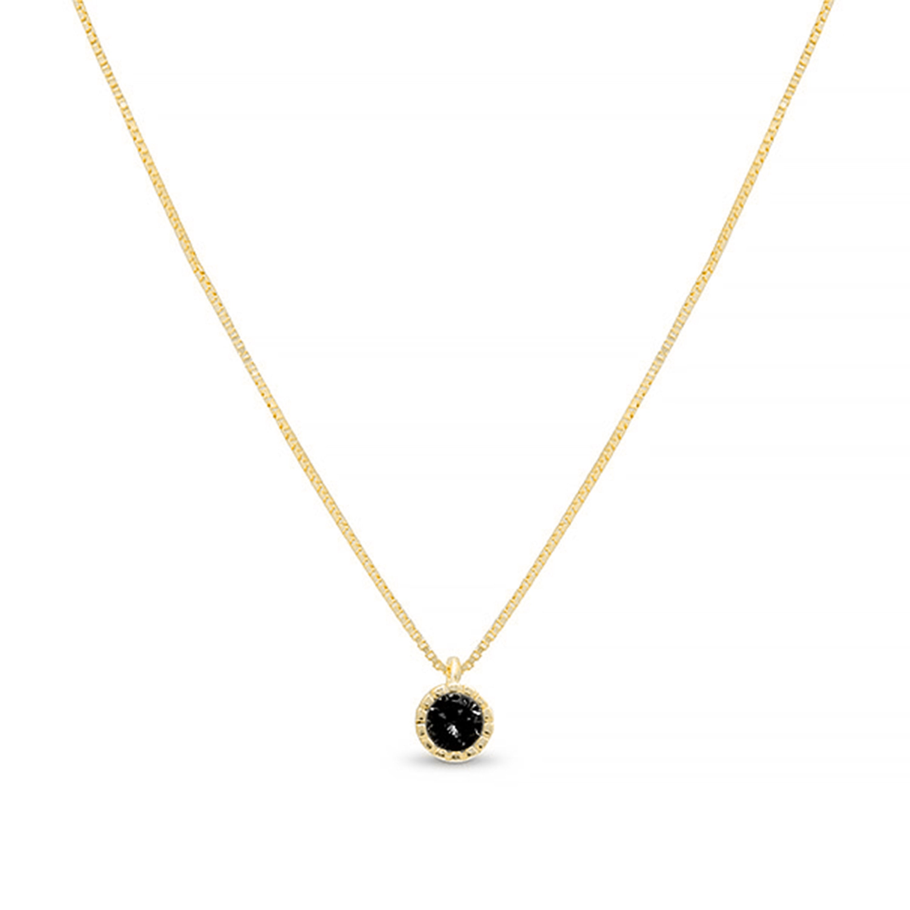 Collana in argento sterling 925 e zirconia onice con finitura in bagno d'oro giallo 18 carati. La Gemma si erge come una delle grandi rivelazioni: design realizzati con cura a mano con pietre naturali: ametista, quarzo, turchese e onice su argento sterling 925 che dettano una disposizione squisita di questa linea.