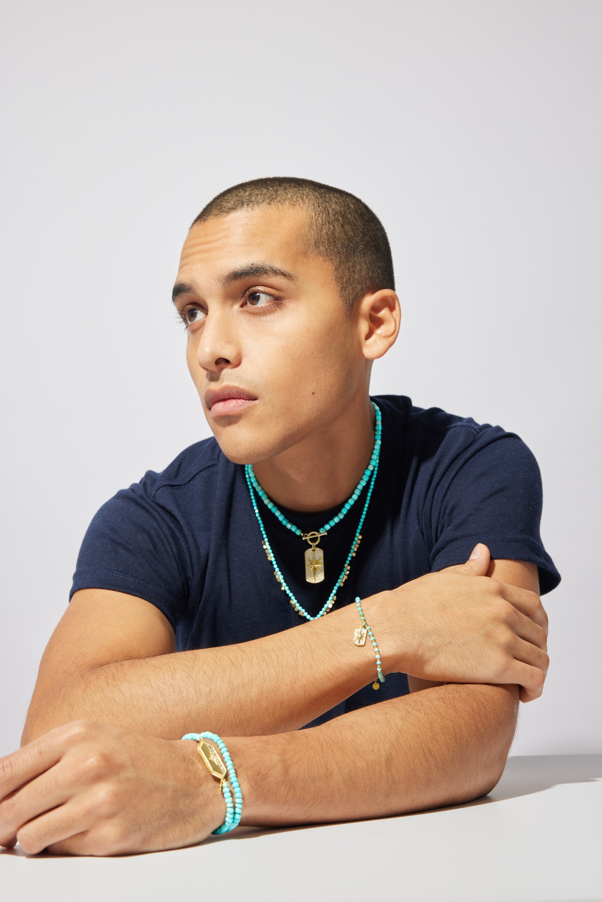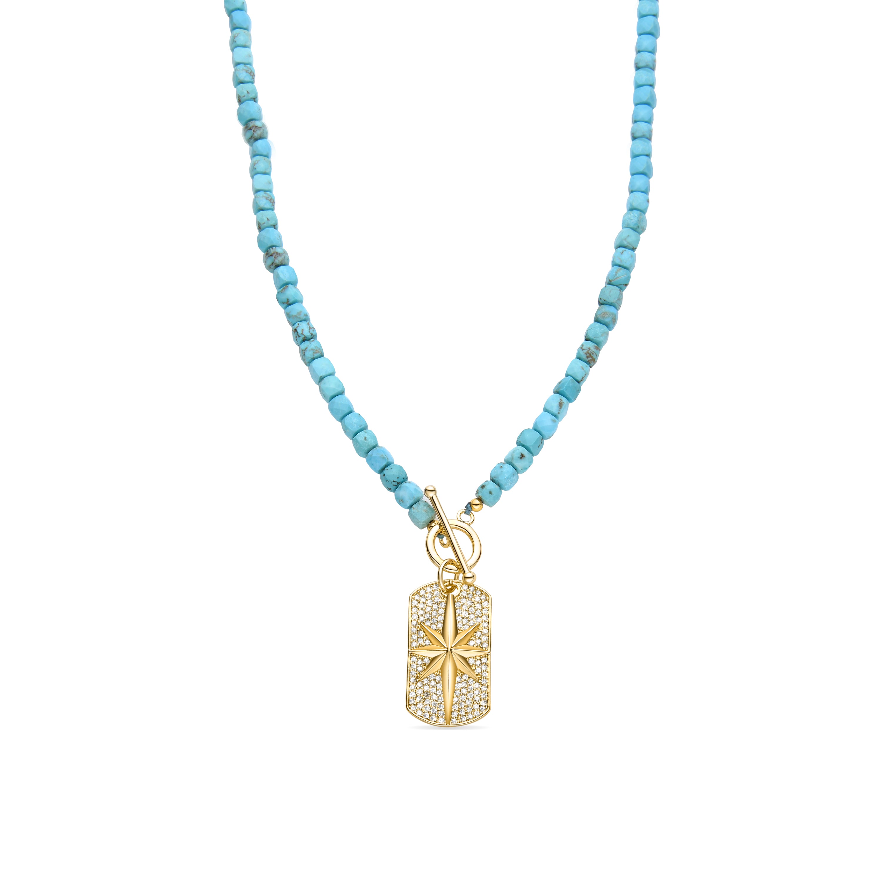 Collana Mvoga pendente in metallo, chiusura in Argento Sterling 925 e Turchese finitura in oro giallo 18 carati. Trendy rappresenta le tendenze chiave nel mondo della moda. La nostra linea più spontanea, con un forte carattere boho e spirito moderno che si concentra in gioielli ricchi di colore tra cui spicca l'uso di pietre naturali e design a forma di amuleti e talismani.