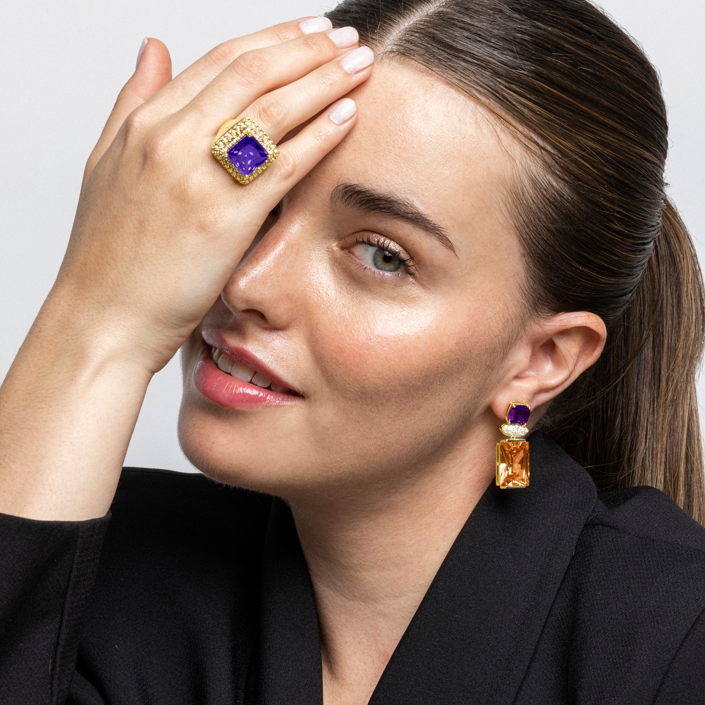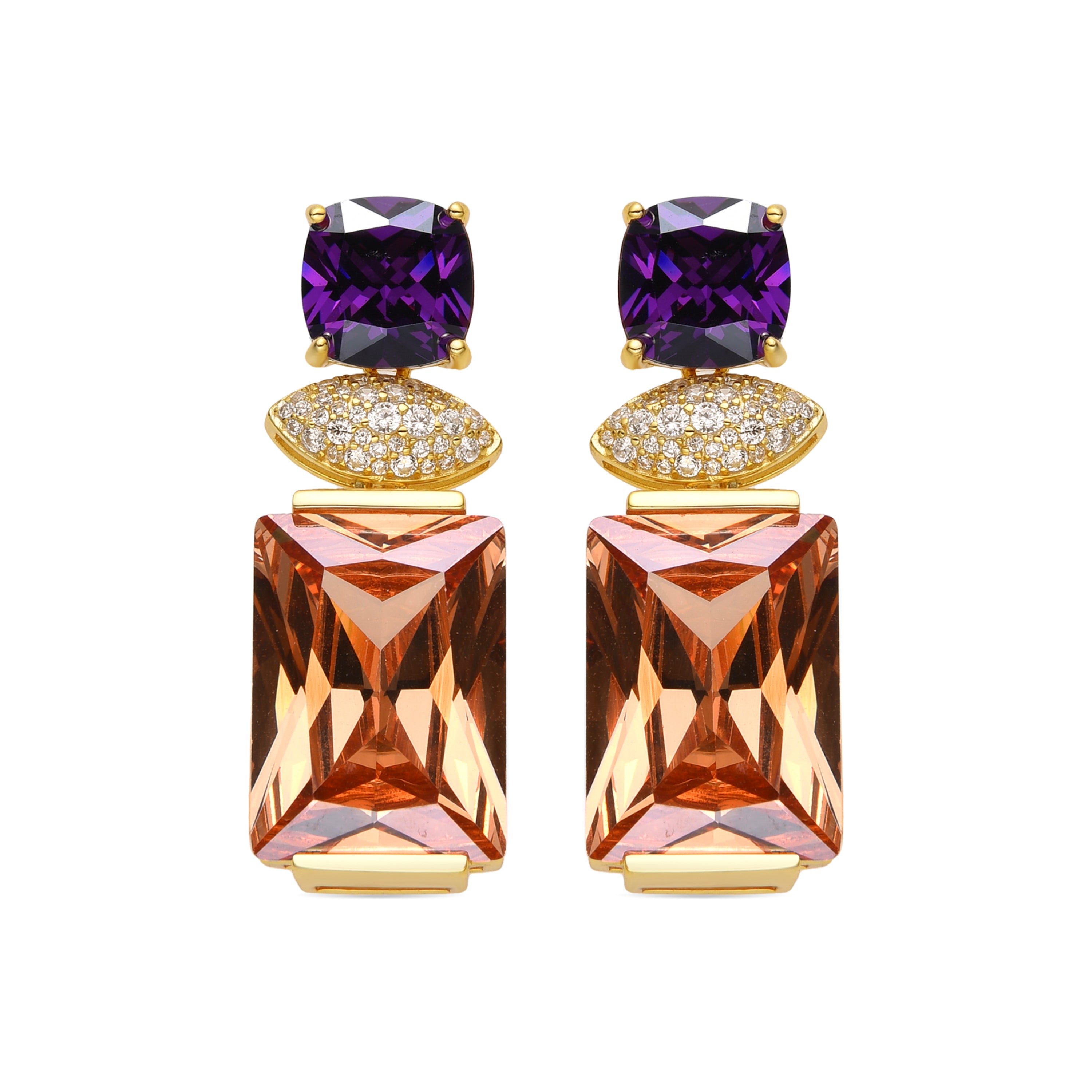Orecchini Khay in Argento Sterling 925 e Zirconia Champagne con finitura in oro giallo 18k. Atelier trasmette tendenza in ogni gioiello, con design che si sono adattati all'evoluzione della moda e della donna. È la linea perfetta per donne uniche che vogliono aggiungere un tocco di colore alla loro quotidianità.