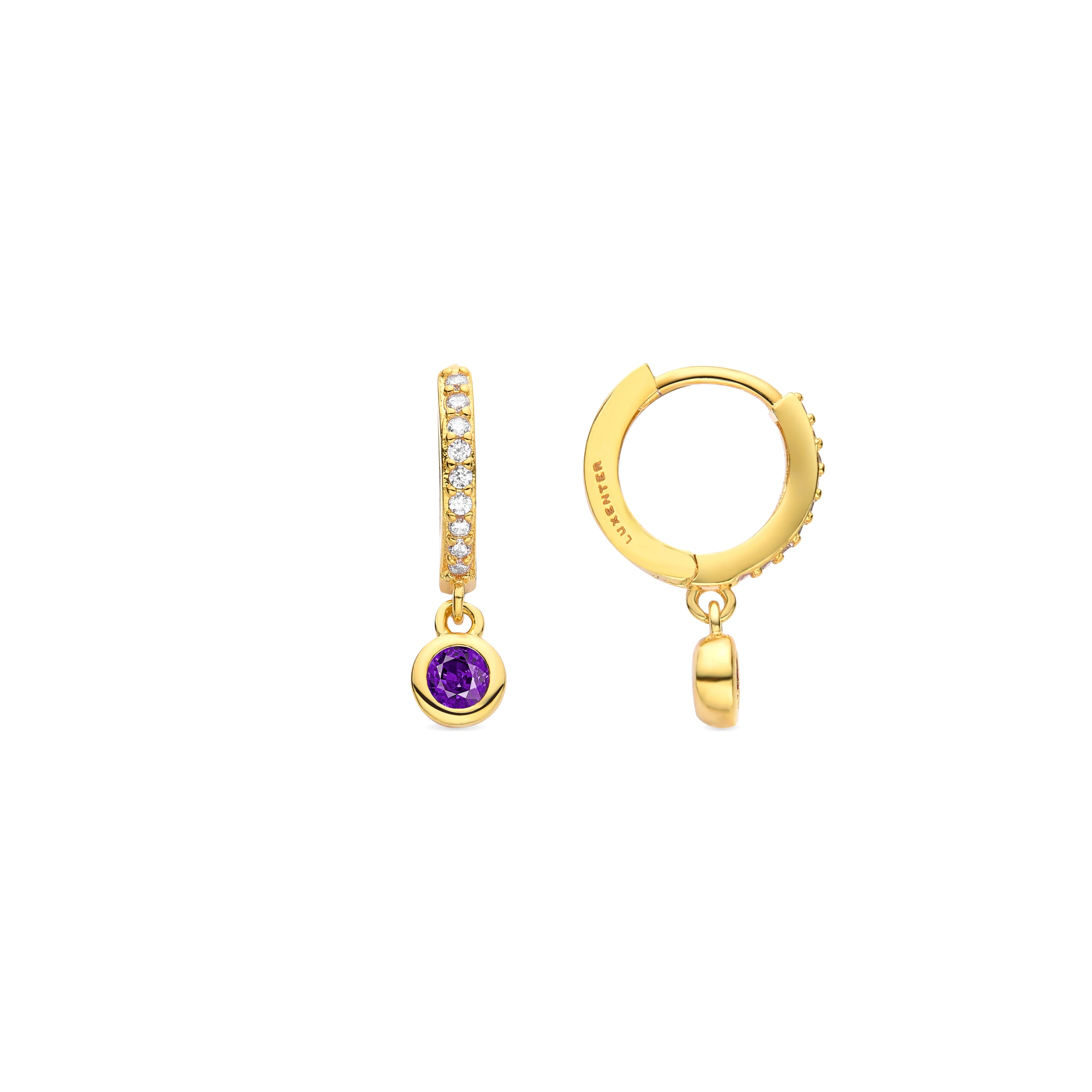 Orecchini Warlah in Zirconia Amatista finiti in bagno d'oro giallo 18 carati. Africa Basic incarna la semplicità raffinata, pezzi senza tempo con linee morbide e il brillante aggiuntivo delle zirconie. Gioielli basic senza pretese che sono perfetti per l'uso quotidiano, ma possono anche funzionare in occasioni speciali.