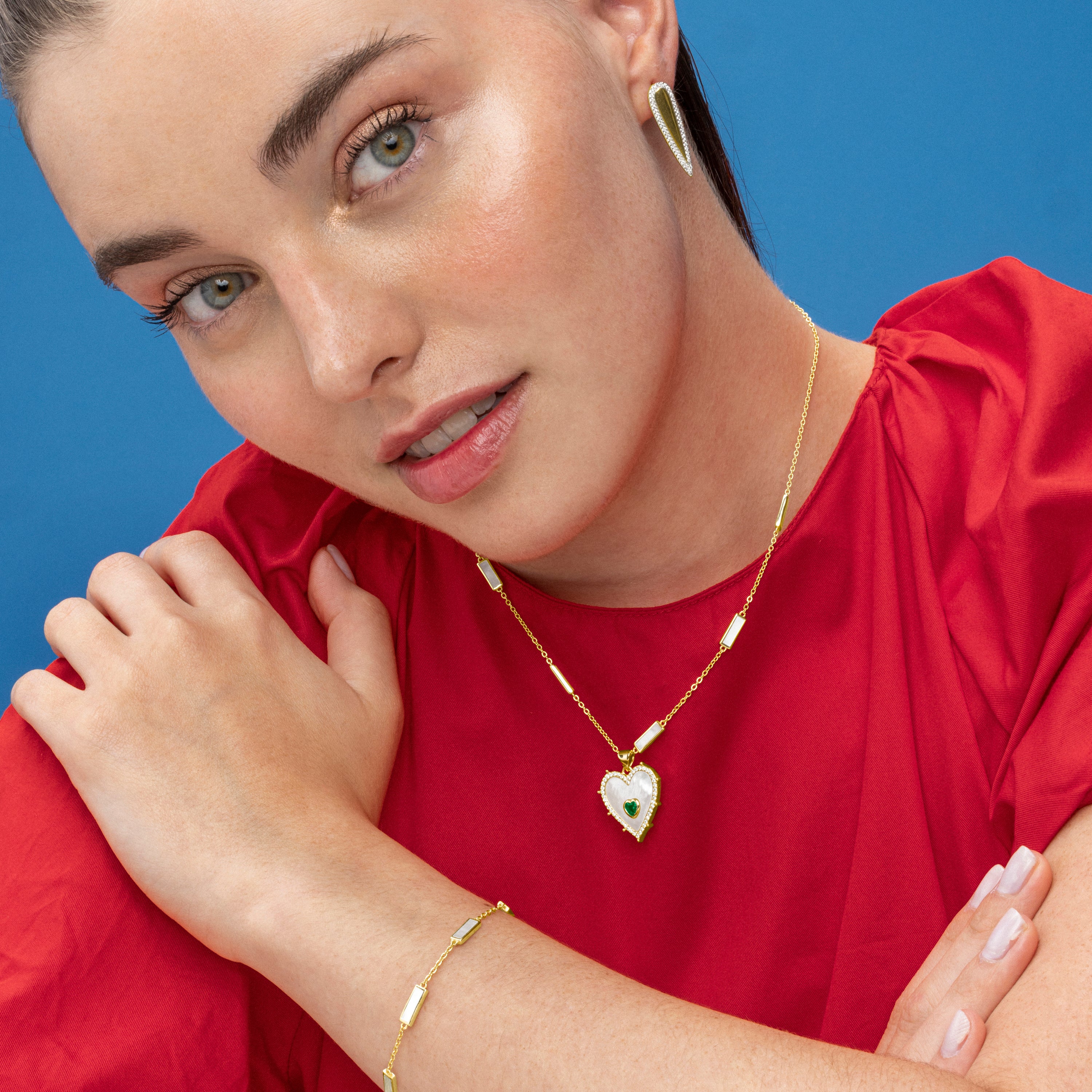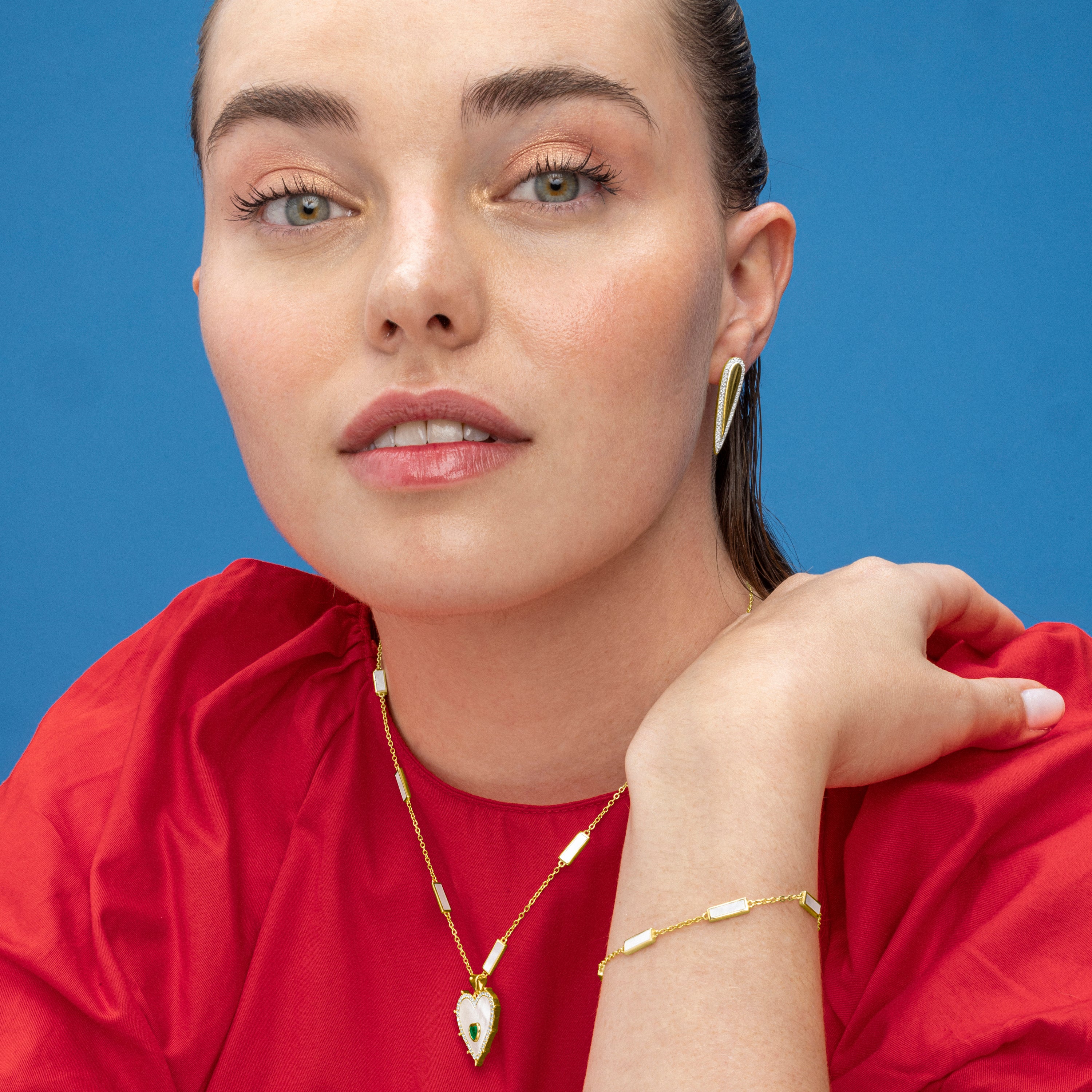 Vi presentiamo "Malachite Beats", una collezione di gioielli che unisce l'eleganza del design contemporaneo alla magia delle pietre naturali. Ispirata alla forza e alla serenità del cuore, questa linea si distingue per l'uso della malachite e della madreperla, due pietre preziose che aggiungono un tocco di distinzione e bellezza a ogni pezzo. Ogni gioiello della collezione "Malachite Beats" è un capolavoro disegnato con i simboli del cuore, che cattura l'essenza dell'amore e del legame emotivo. La malachite, con le sue sfumature verdi e le sue venature uniche, simboleggia la trasformazione e l'equilibrio, mentre la madreperla, con la sua lucentezza perlacea, aggiunge un tocco di raffinatezza e purezza.Dagli anelli e le collane ai bracciali e agli orecchini, questa collezione offre una varietà di pezzi adatti a ogni occasione, da quelle quotidiane a quelle speciali. Ogni gioiello è realizzato meticolosamente per mettere in risalto la bellezza naturale delle gemme e per completare lo stile moderno di chi lo indossa. "Malachite Beats" è più di una collezione di gioielli: è una dichiarazione di stile e un riflesso delle vostre emozioni. Con questi pezzi, non portate con voi solo un accessorio, ma anche un simbolo di amore, equilibrio e bellezza senza tempo. Lasciate che il battito del vostro cuore si sincronizzi con l'eleganza della malachite e della madreperla e osate brillare con una raffinatezza unica.
