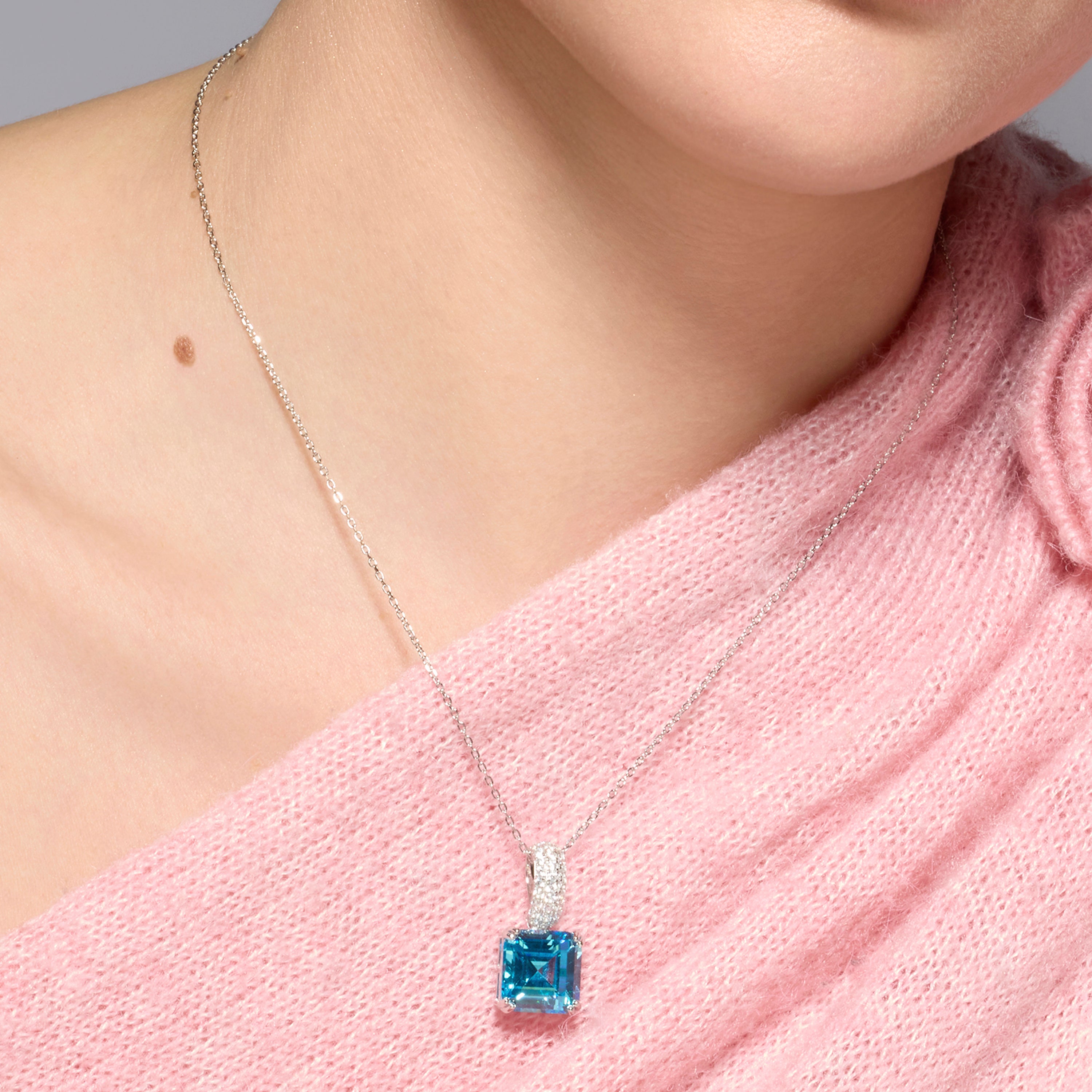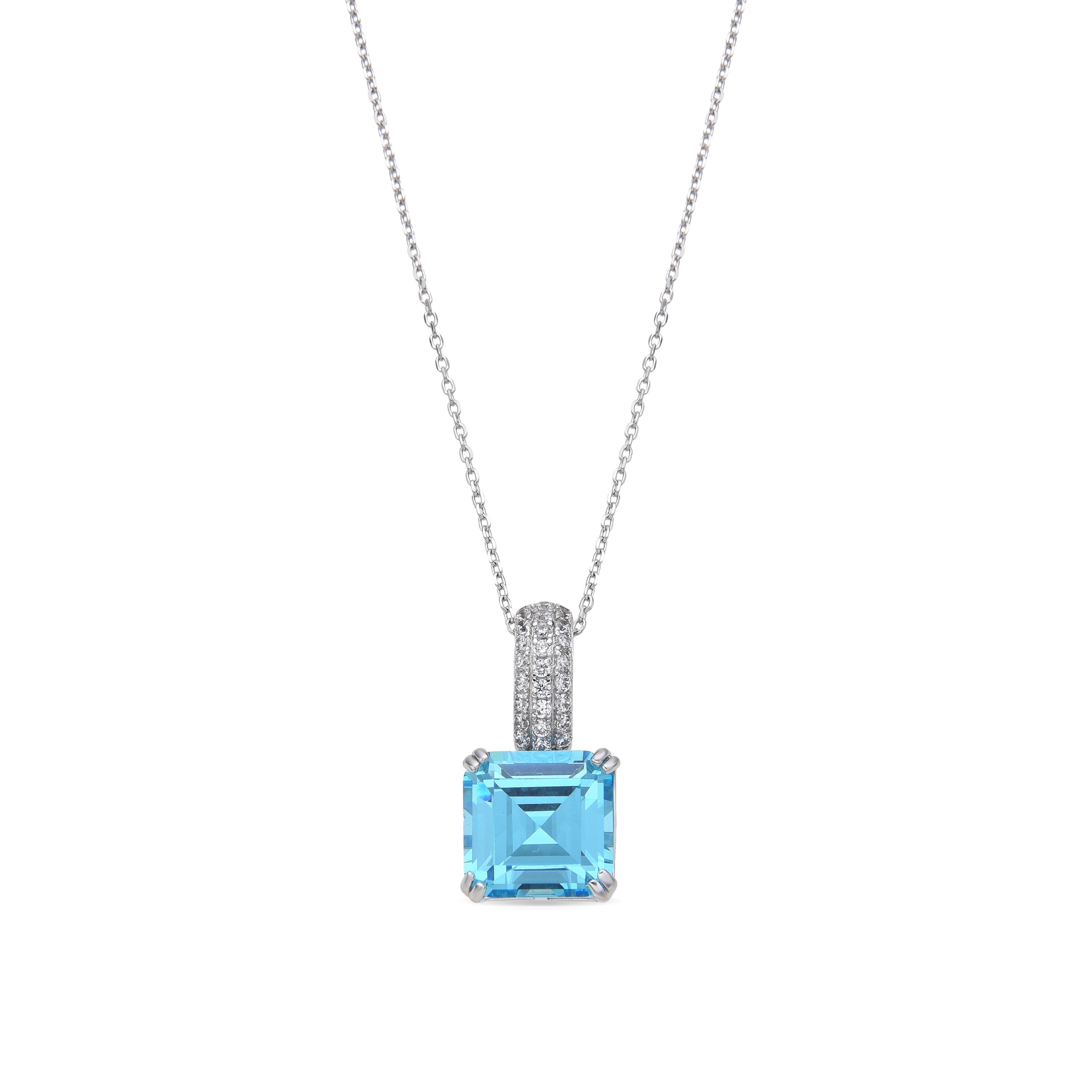 Collana in Argento Sterling 925 e Zirconia Acquamarina finitura rodio - Balcay