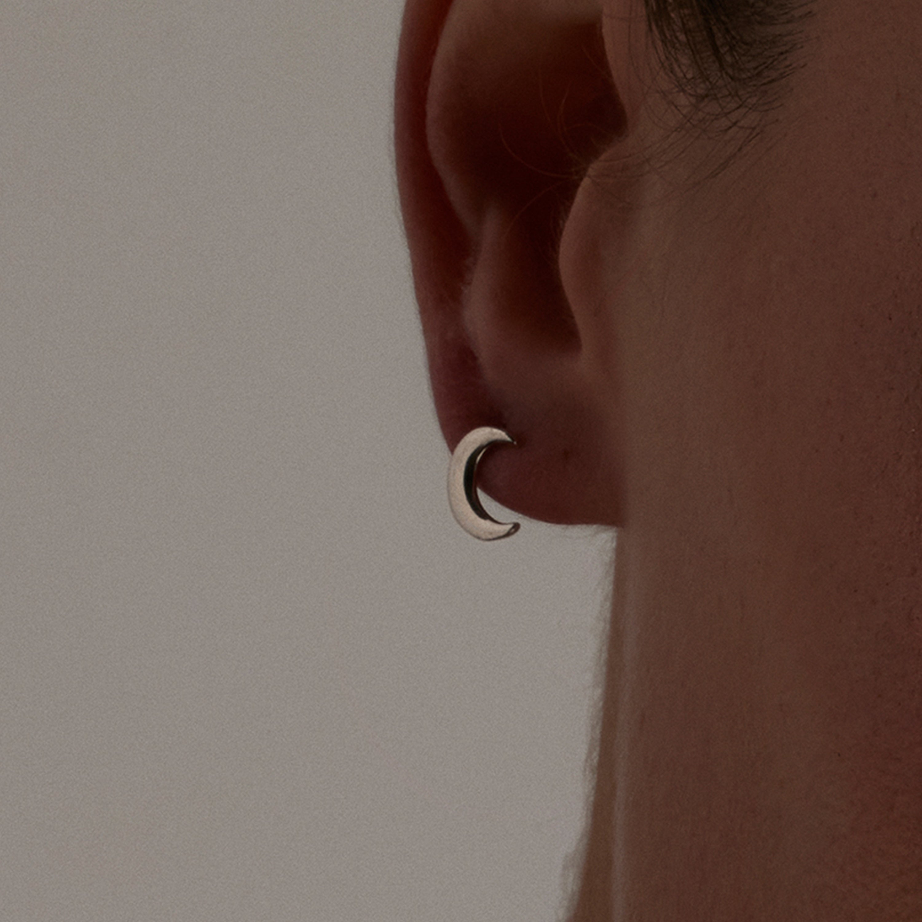 Orecchini a mezzaluna in argento sterling 925 con finitura in bagno di rodio. Trendy rappresenta le tendenze chiave nel mondo della moda. La nostra linea più spontanea, con un carattere boho marcato e uno spirito moderno che si concentra in gioielli ricchi di colore tra cui spicca l'uso di pietre naturali e design a forma di amuleti e talismani.