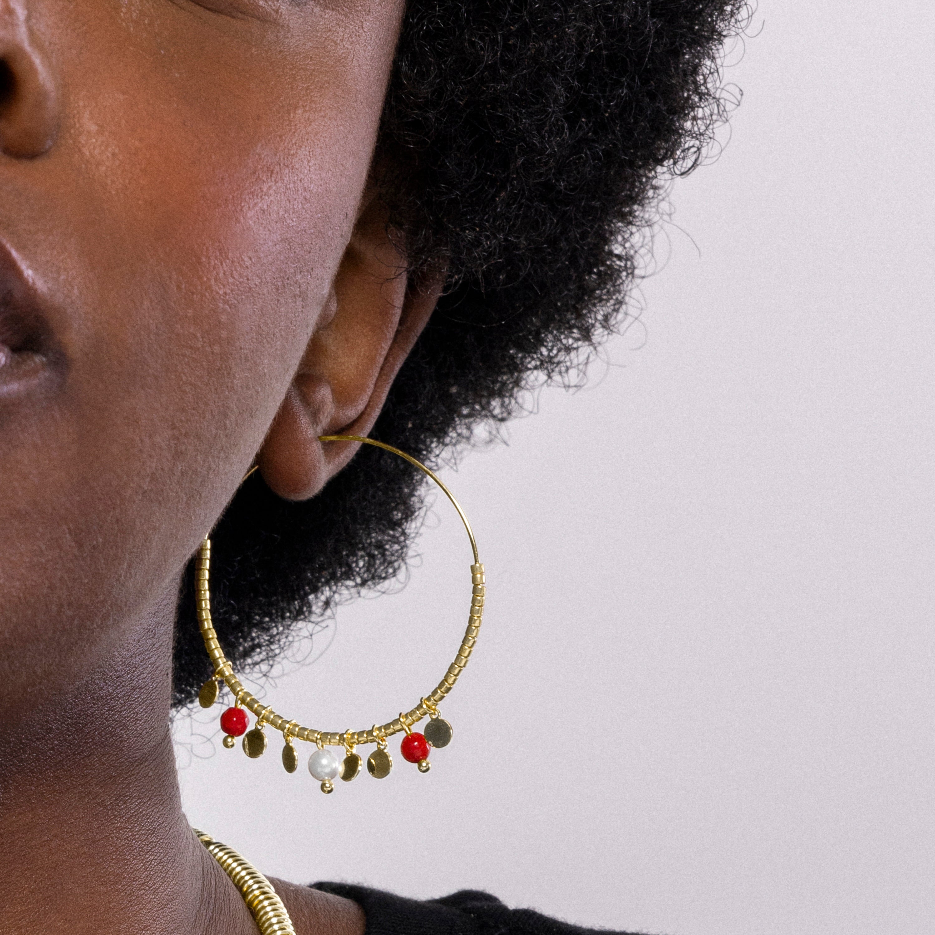 Orecchini in metallo Dilna di Coral finiti in oro giallo 18k. Lo stile Boho è un'estetica dallo spirito libero che mescola diverse culture ed espressioni artistiche in uno stile eclettico con enfasi sugli elementi organici e sulla natura.