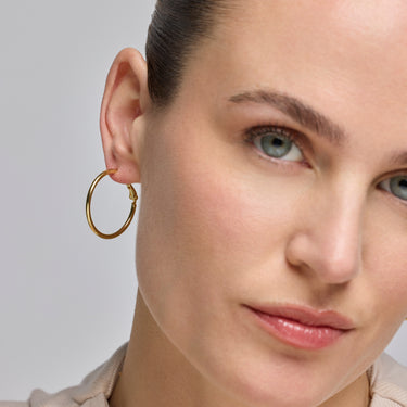 Orecchini Nianres finitura oro 18k. Essential incarna la semplicità raffinata, pezzi senza tempo con linee morbide e il brillante aggiuntivo delle zirconie. Gioielli di base senza pretese che sono perfetti per l'uso quotidiano, ma possono anche funzionare in occasioni speciali.