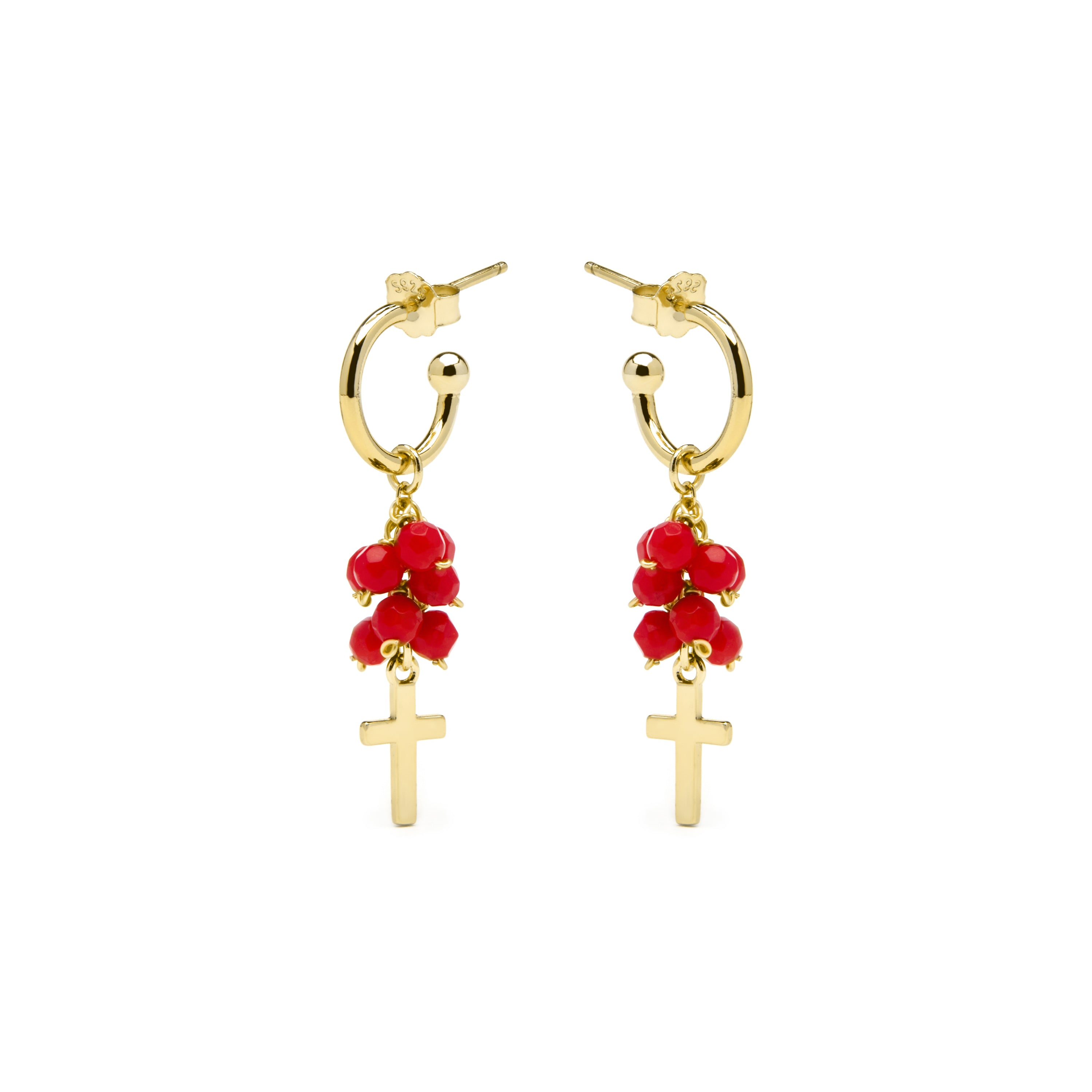 Orecchini Kyus in Argento Sterling 925 e Agata Rossa con finitura in oro giallo 18k
