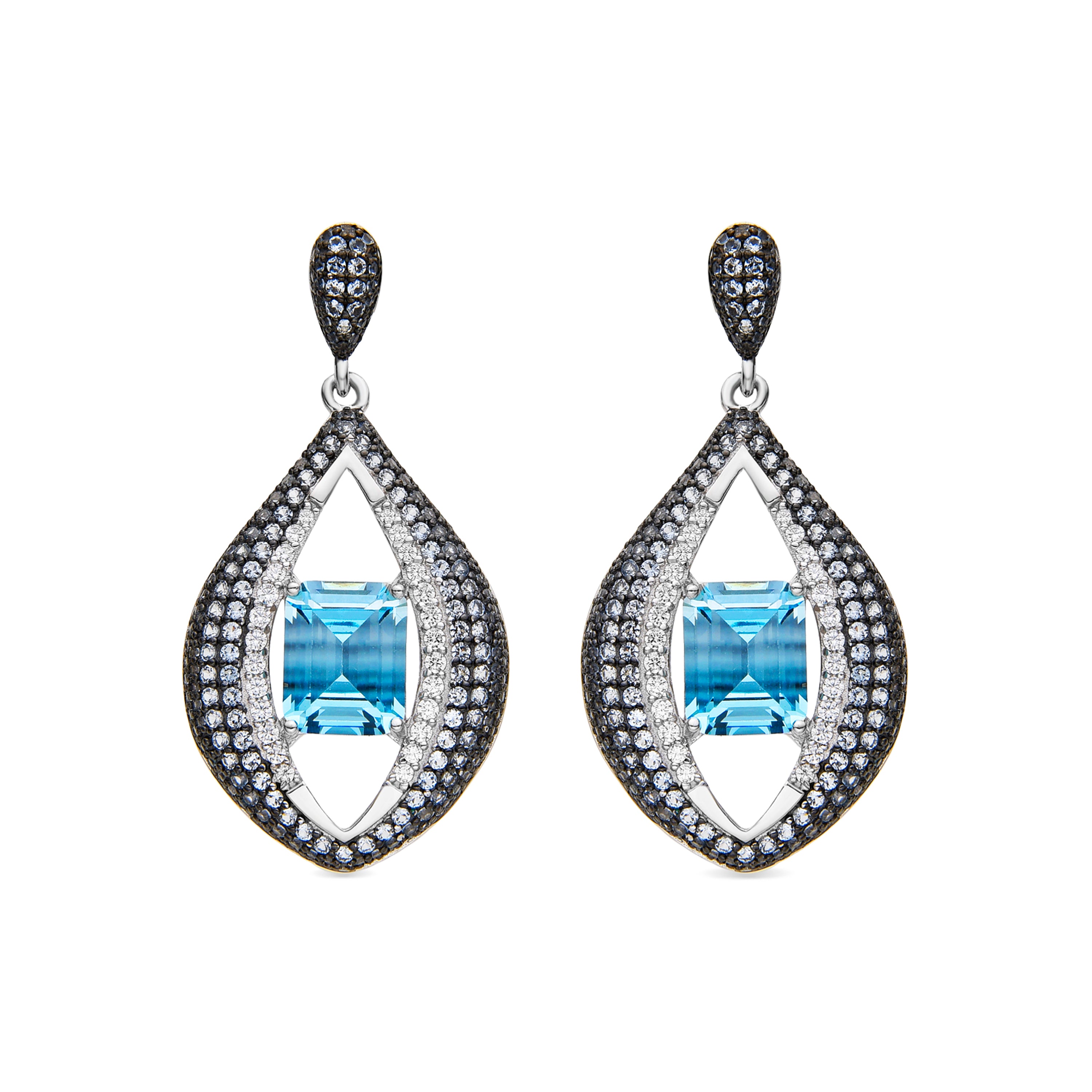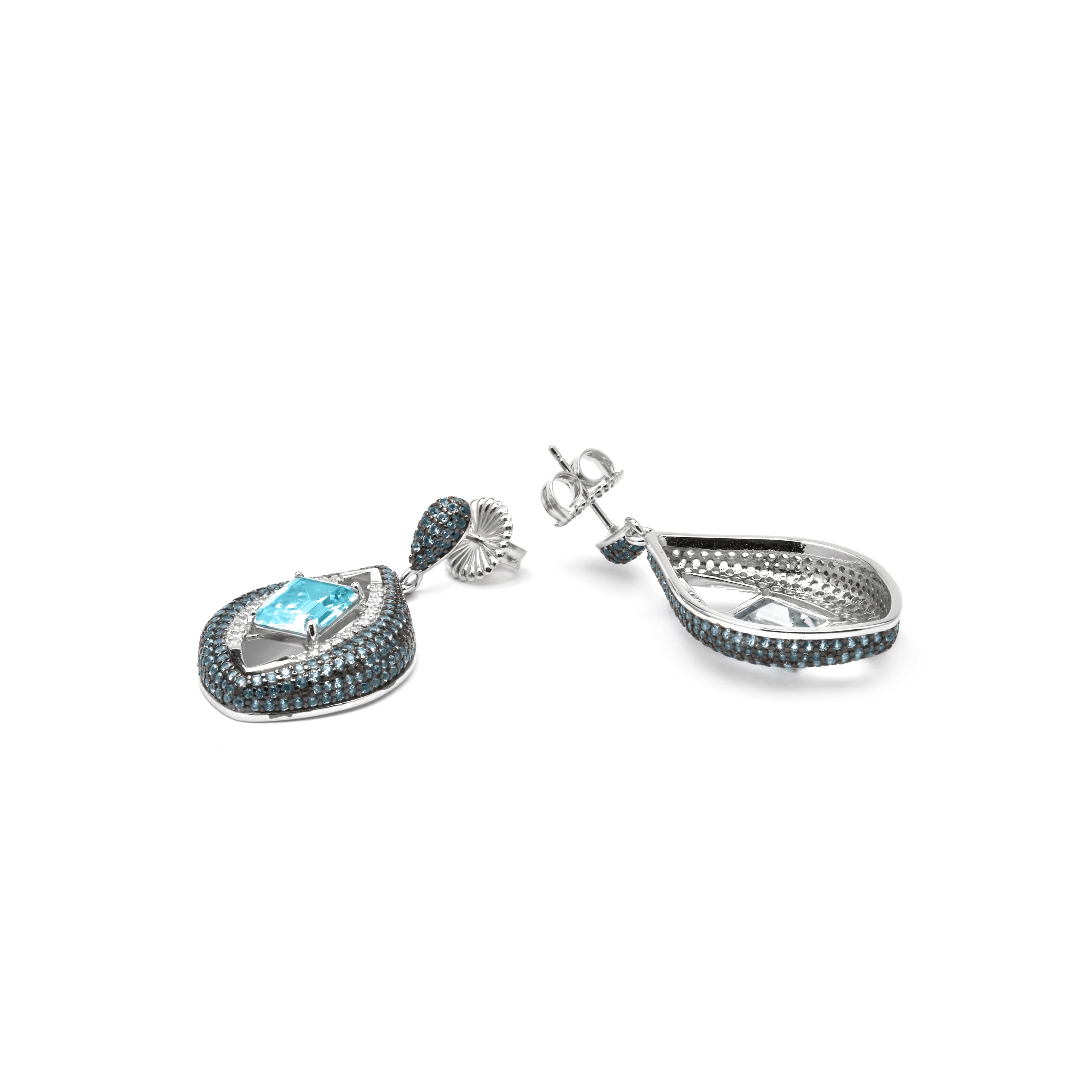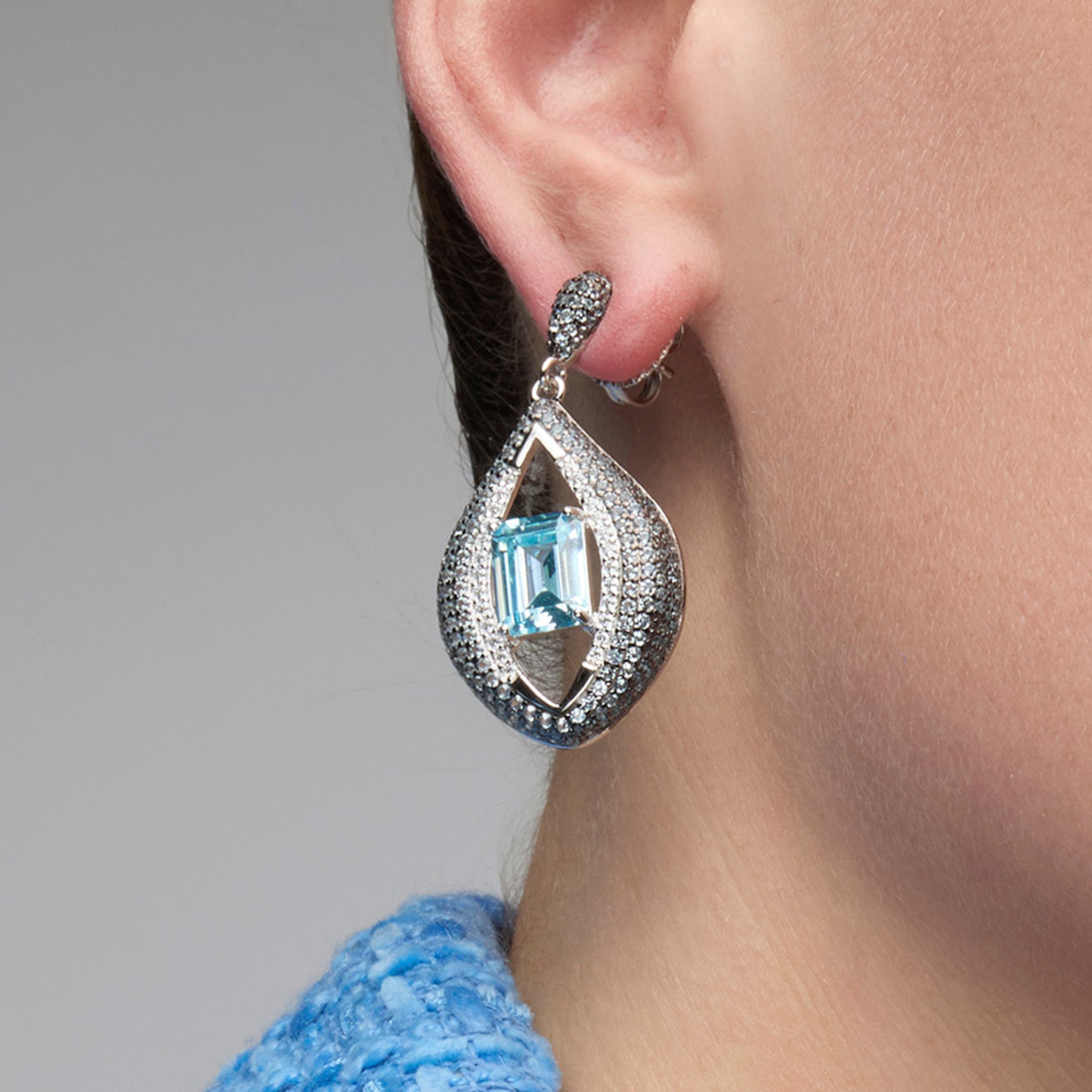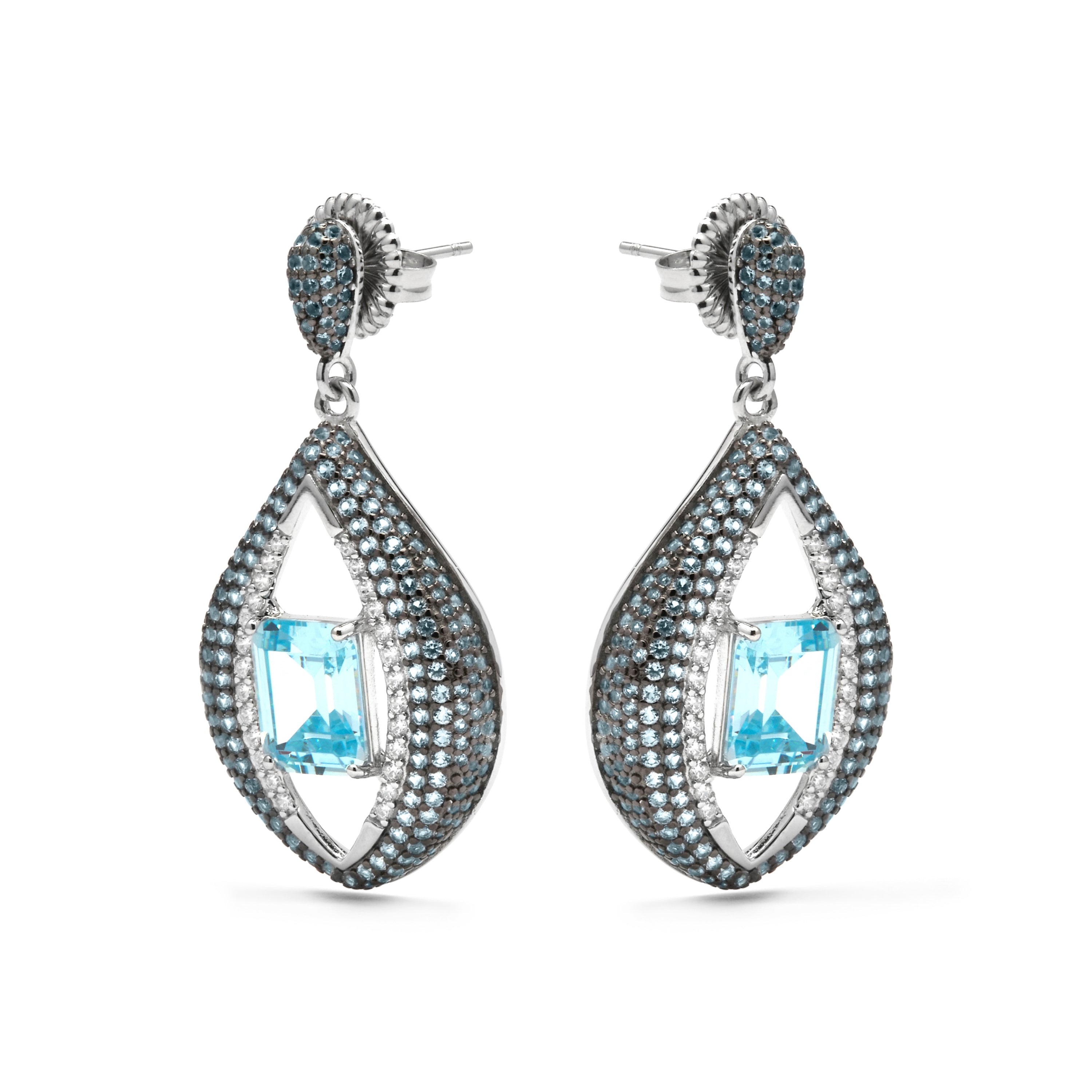 Orecchini Nyasain in Argento Sterling 925 e Zirconia Acquamarina con finitura in rodio