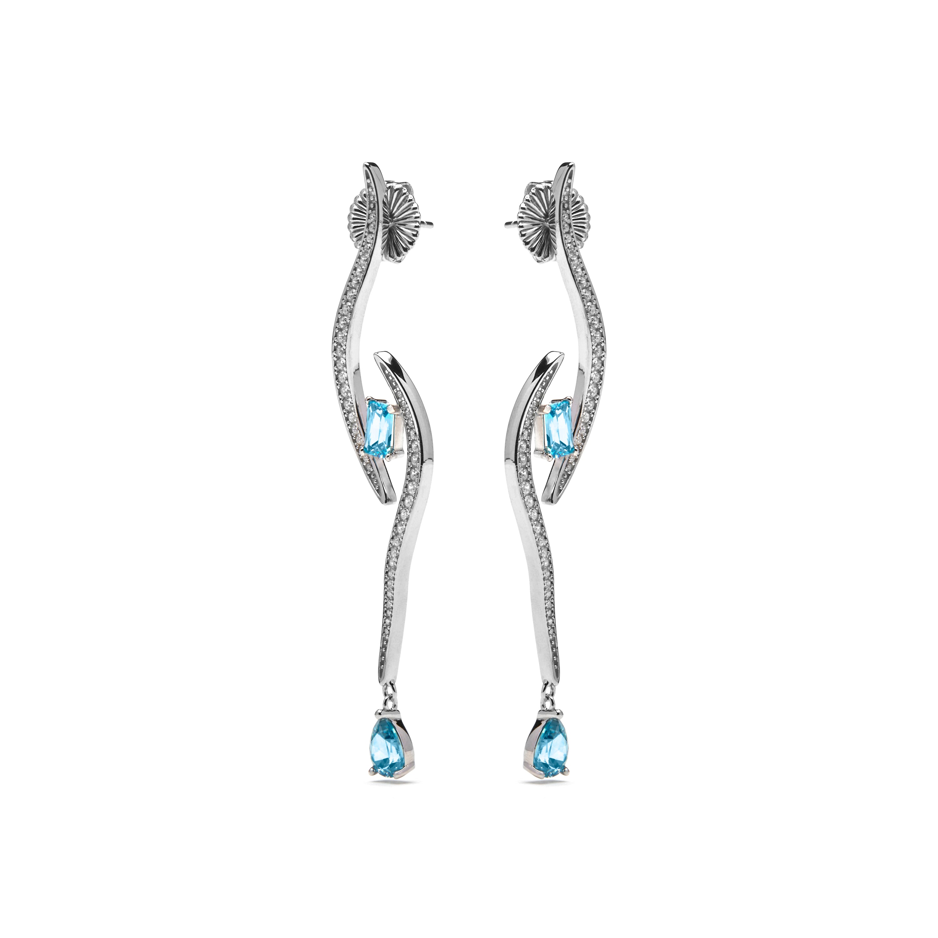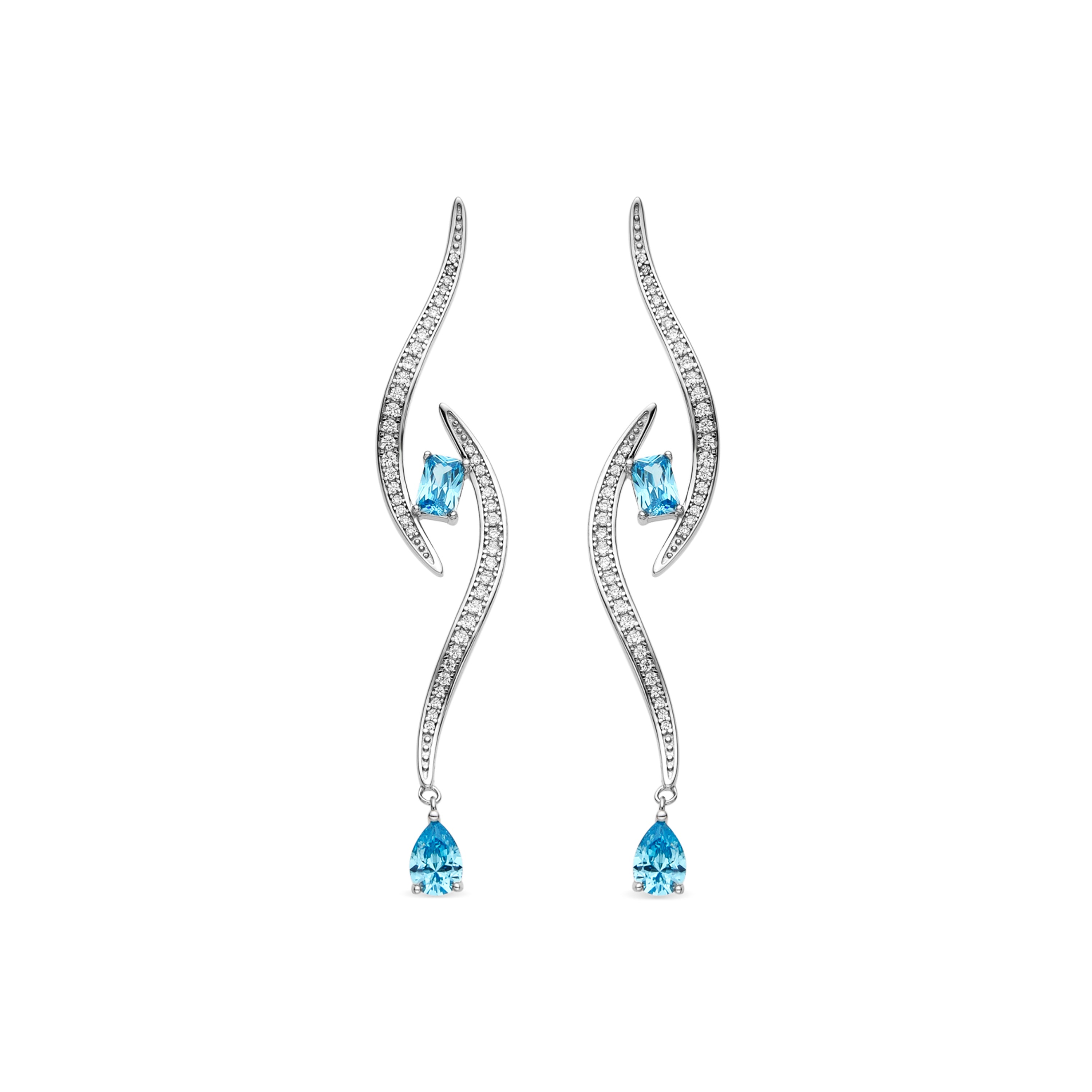 Orecchini Thyrod in Argento Sterling 925 e Zirconia Acquamarina con finitura in rodio