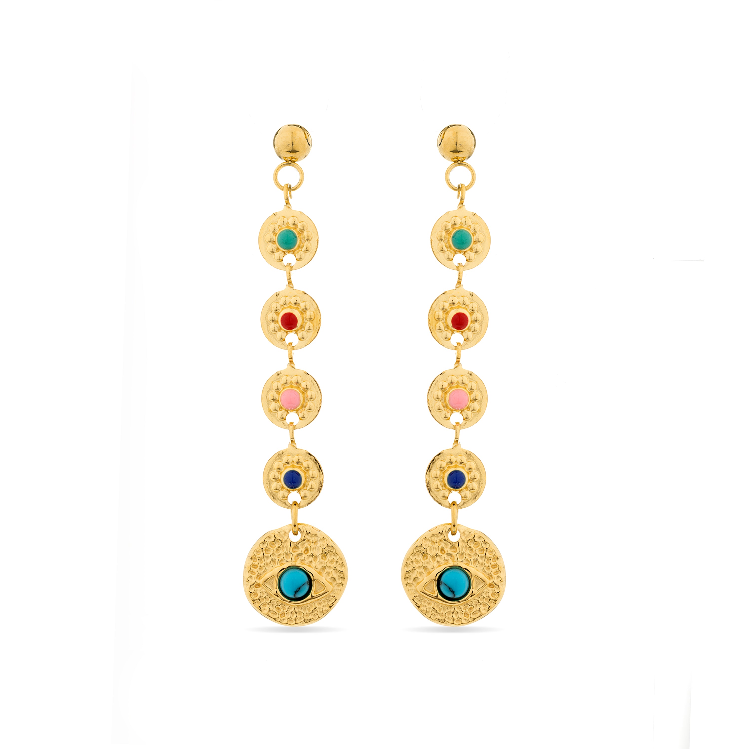 Orecchini in acciaio Elbi di Turchese finiti in oro giallo 18K. Africa diventa la linea perfetta per donne con personalità, che non temono di osare e indossare pezzi dal carattere unico.