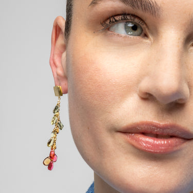 Orecchini Kimon in Argento Sterling 925 e Quarzo Idrotermale Multicolore con finitura in oro giallo 18k