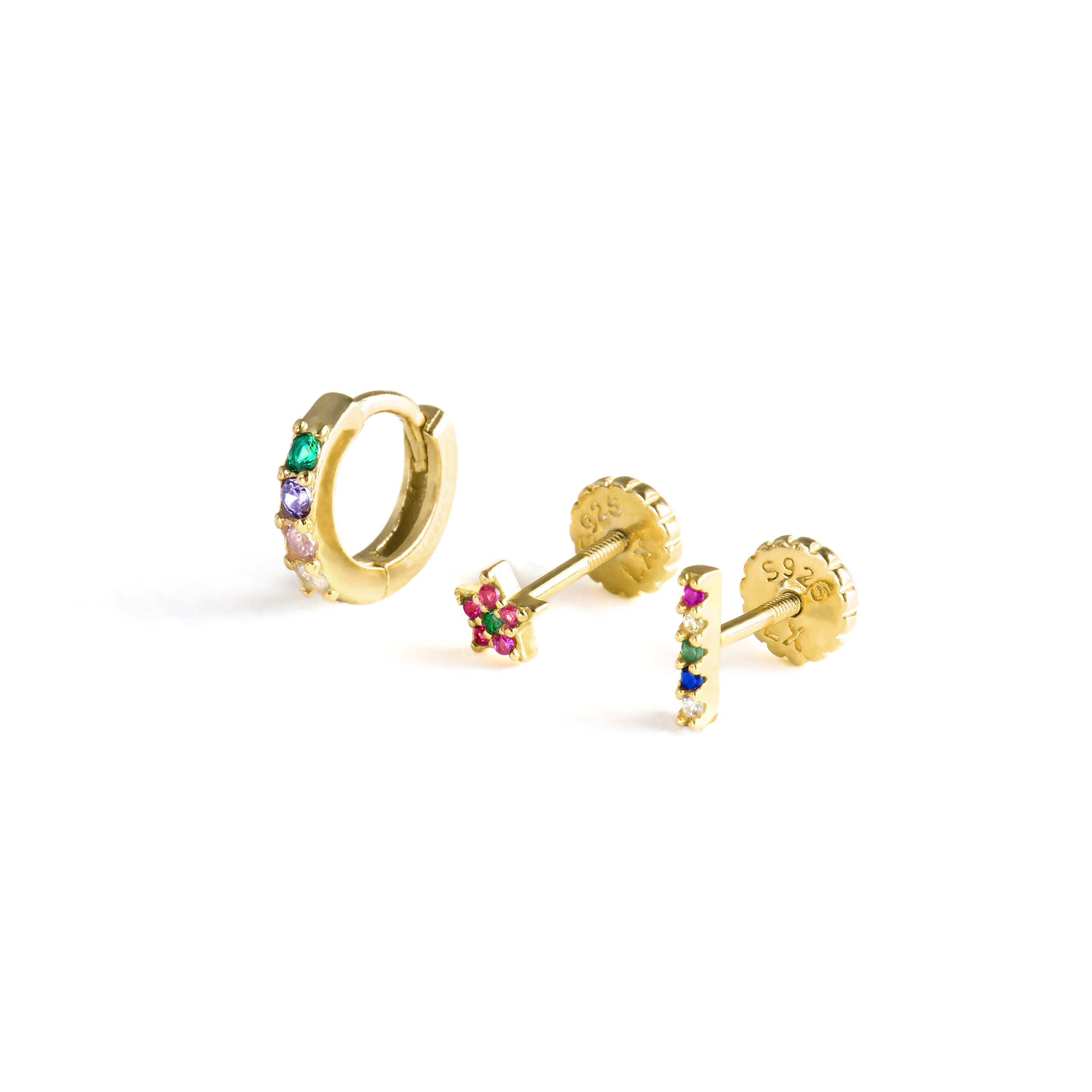 Set di Piercing Tyulu, Ansung e Sonlow in Argento Sterling 925, zirconia multicolore con finitura in bagno d'Oro giallo 18 carati.