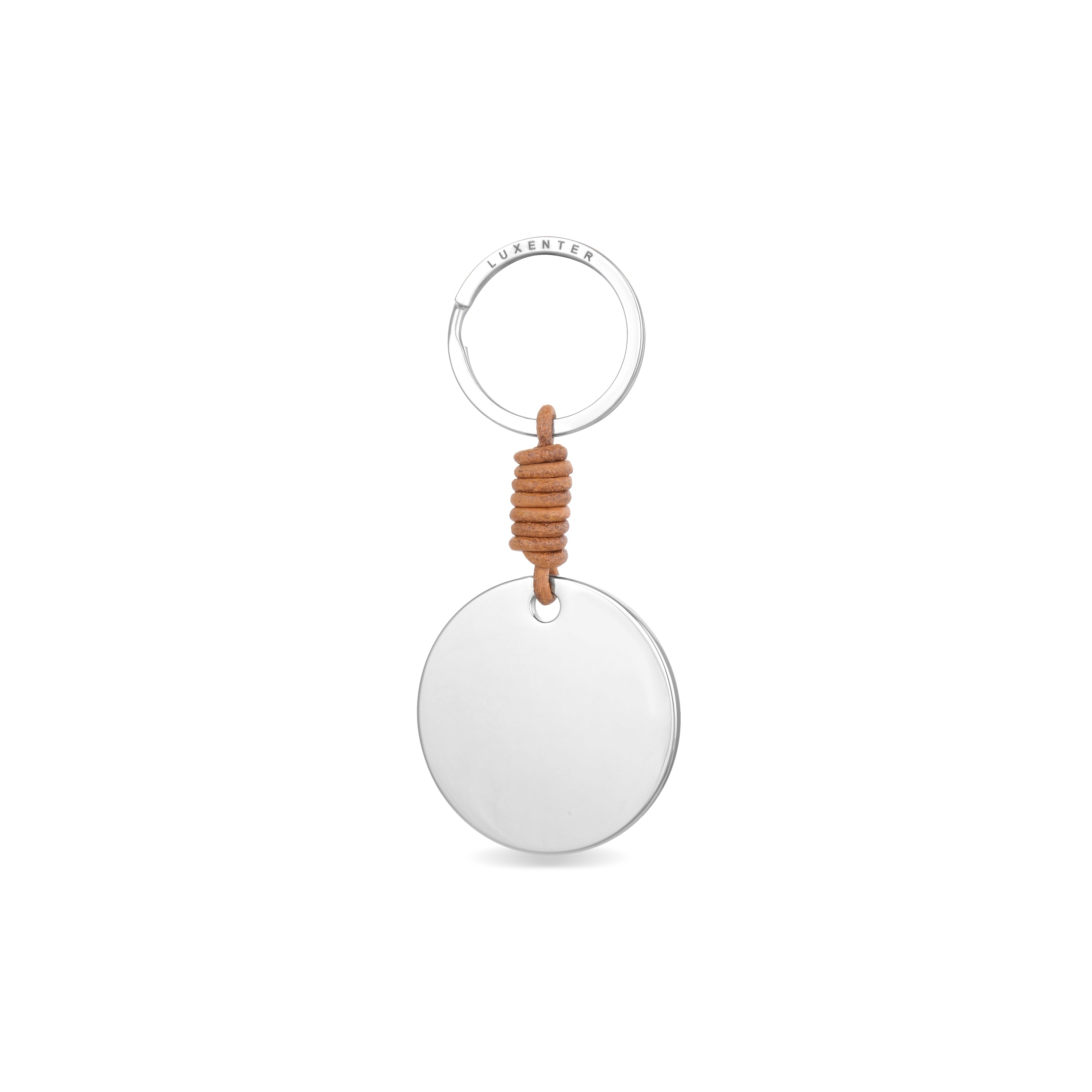 Portachiavi in pelle marrone chiaro finito in rodio - Senakon