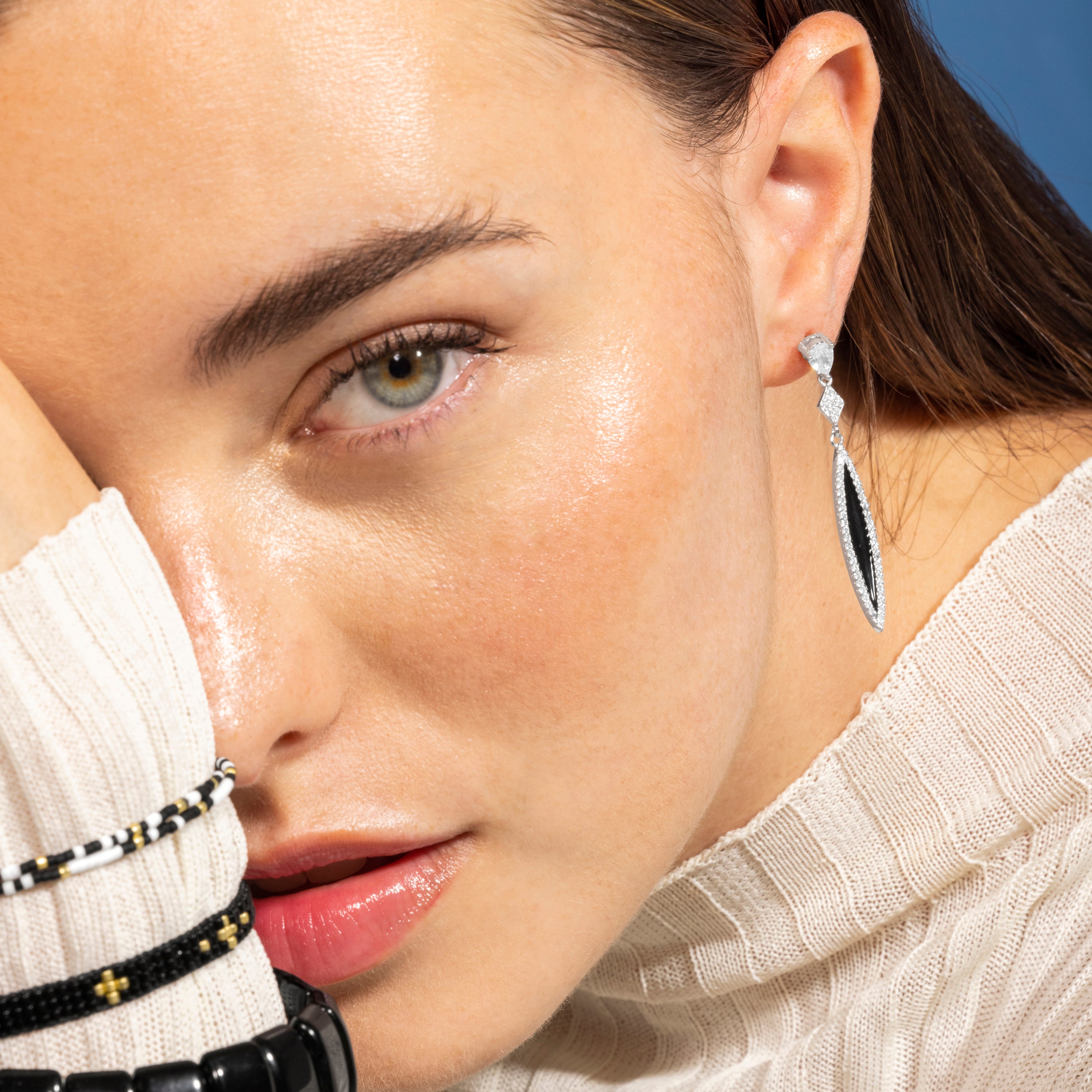 Orecchini in Argento Sterling 925 e Onice con finitura in rodio - Latop